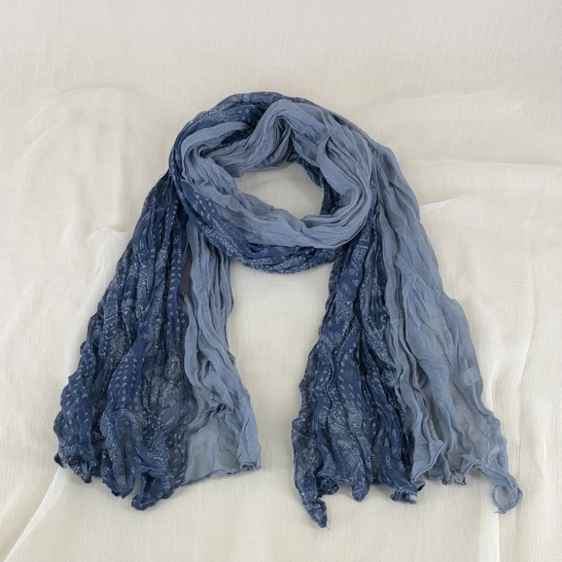 대외 무역 봄과 가을 모리 예술적 스카프 여자 올매치 주름 단색 캐슈 꽃 바느질 얇은 구겨진 면화와 리넨 스카프스토어 가기