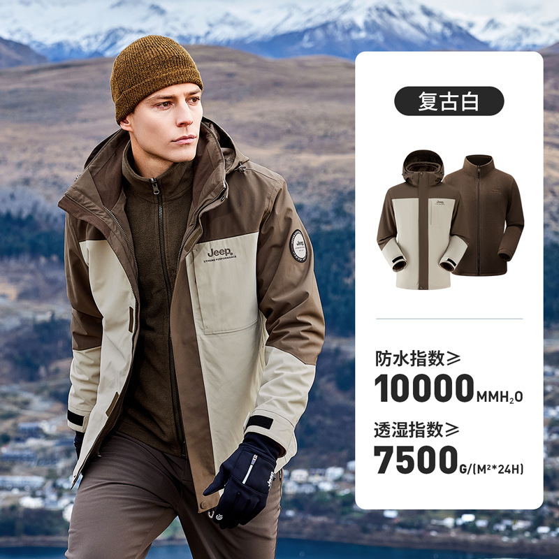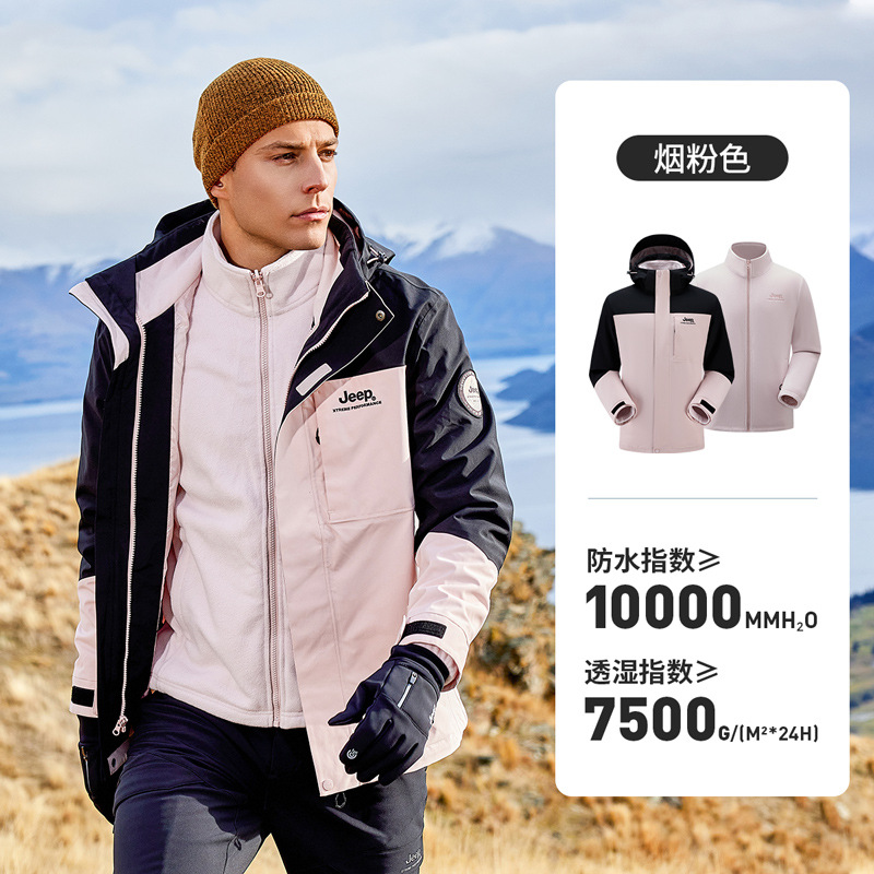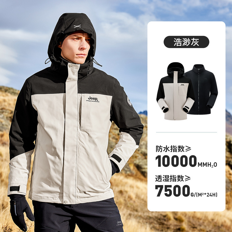지프 지프 가을과 겨울 새로운 남자 3 대 1 충전 야외 방풍 방수 재킷 하이킹 등반가 세트스토어 가기