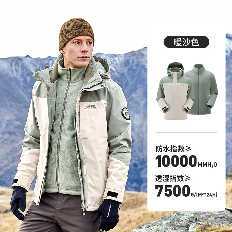 지프 지프 가을과 겨울 새로운 남자 3 대 1 충전 야외 방풍 방수 재킷 하이킹 등반가 세트