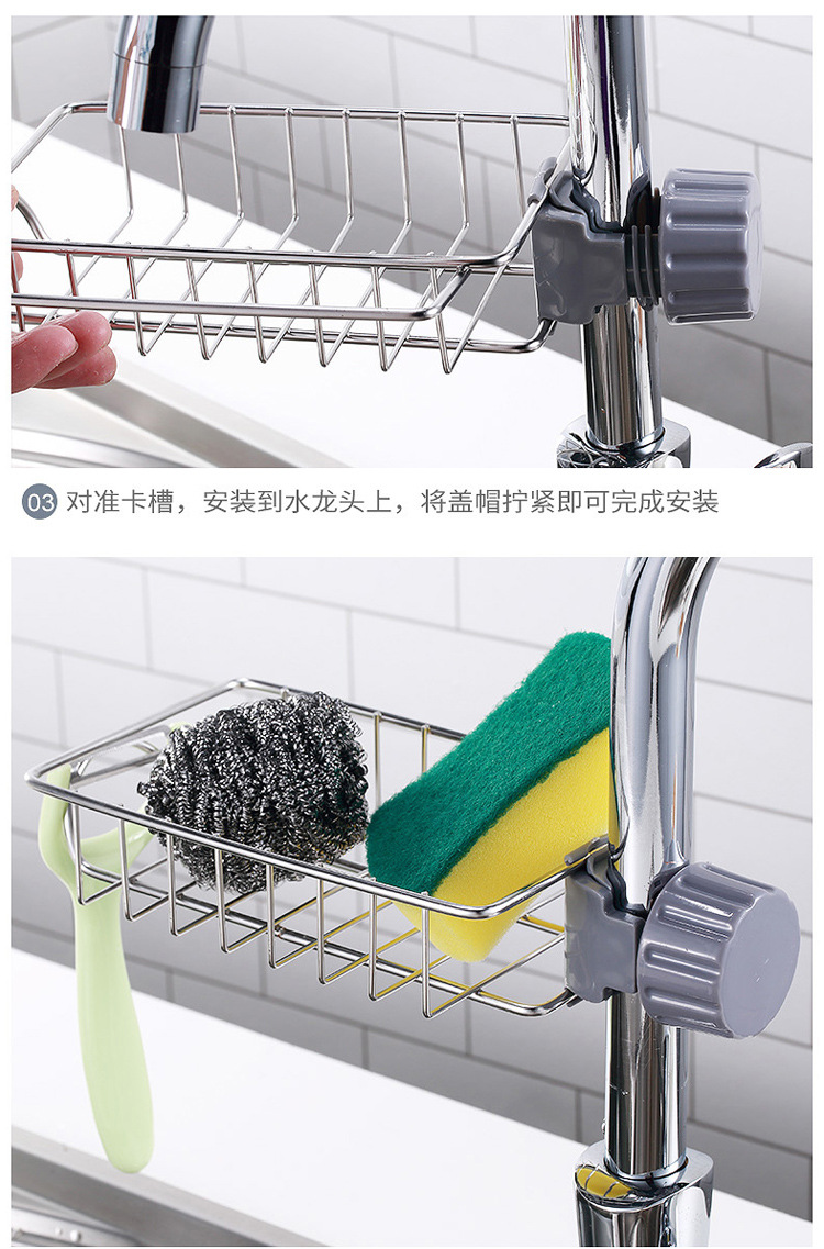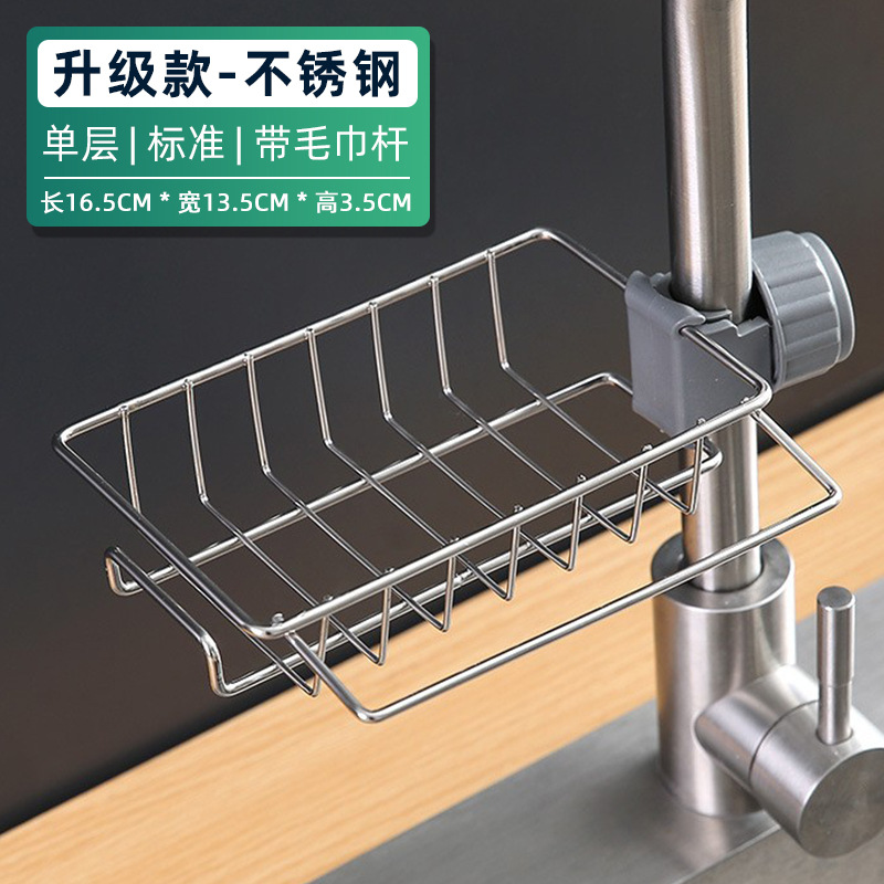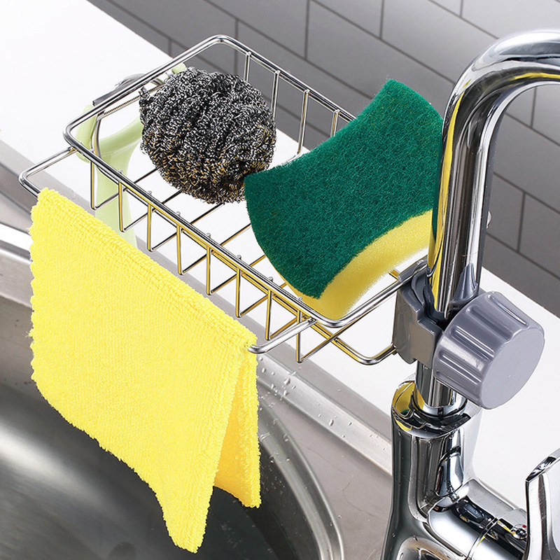 수도꼭지 저장 랙 주방 스테인레스 스틸 싱크 저장 랙 가정용 스폰지 천 세척 배수 랙 교수형 바구니