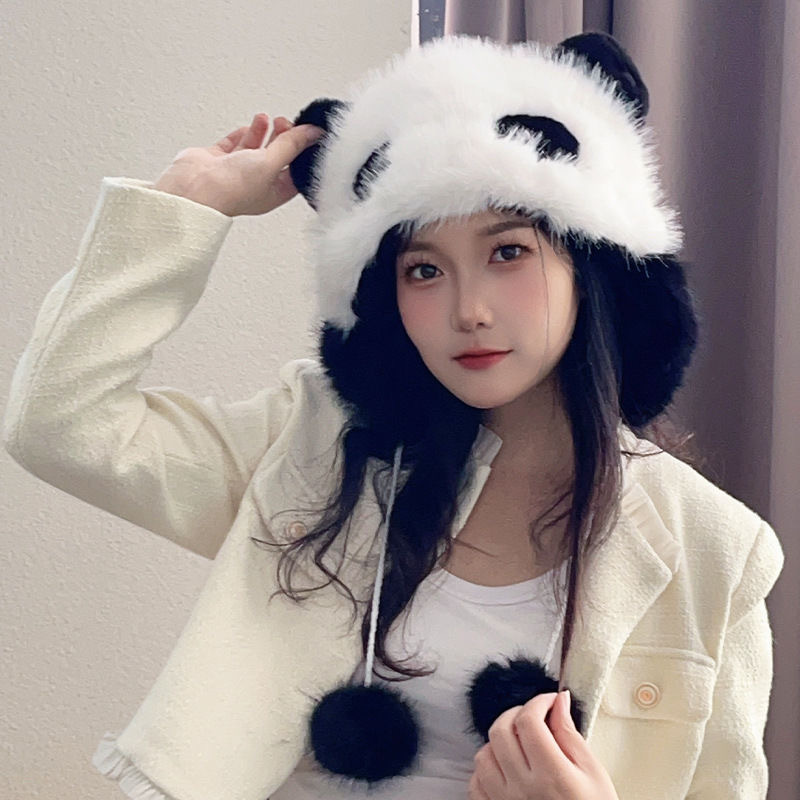 모자 겨울 여성의 2024 새로운 귀여운 곰 봉제 두꺼운 따뜻한 귀 보호 모자 방한 라이딩 레이 펑 모자 트렌디스토어 가기