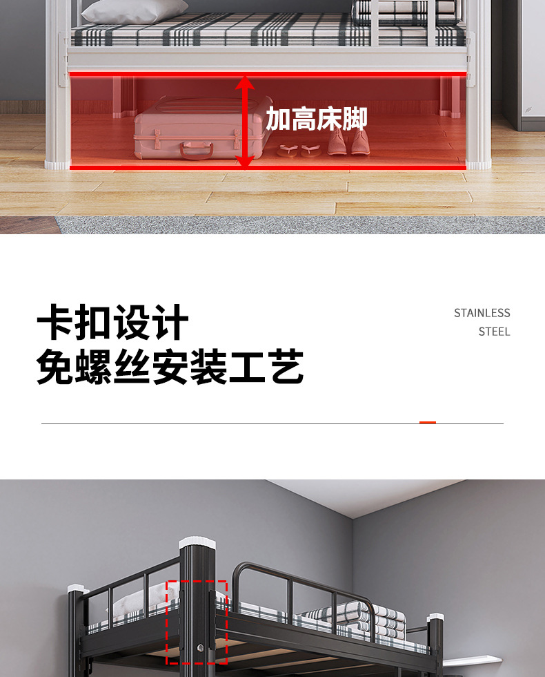 두꺼운 상하 이층 침대 어린이 가정 학생 더블 아이언 프레임 침대 성인 직원 기숙사 아파트 높고 낮은 이층 침대스토어 가기