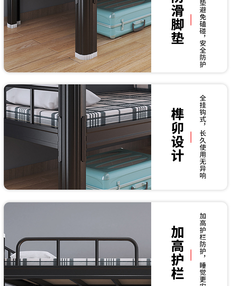 두꺼운 상하 이층 침대 어린이 가정 학생 더블 아이언 프레임 침대 성인 직원 기숙사 아파트 높고 낮은 이층 침대