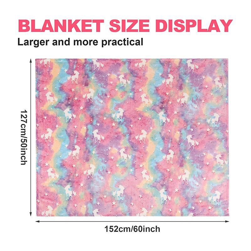 대외 무역 국경 도매 빛나는 무지개 말 유니콘 발광 담요 형광 양면 플란넬 어린이 인쇄 담요