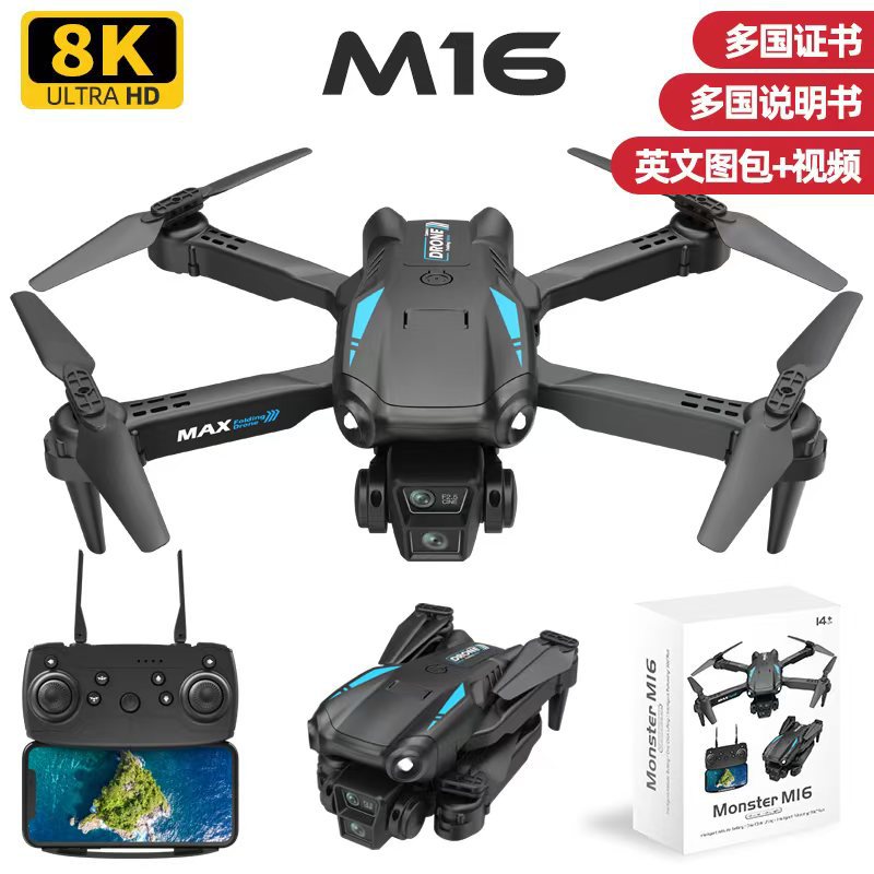 2026년 신형 M16 드론 항공 촬영 8k 고화질 초장시간 배터리 어린이용 비행기 원격 조종 장난감 DIY