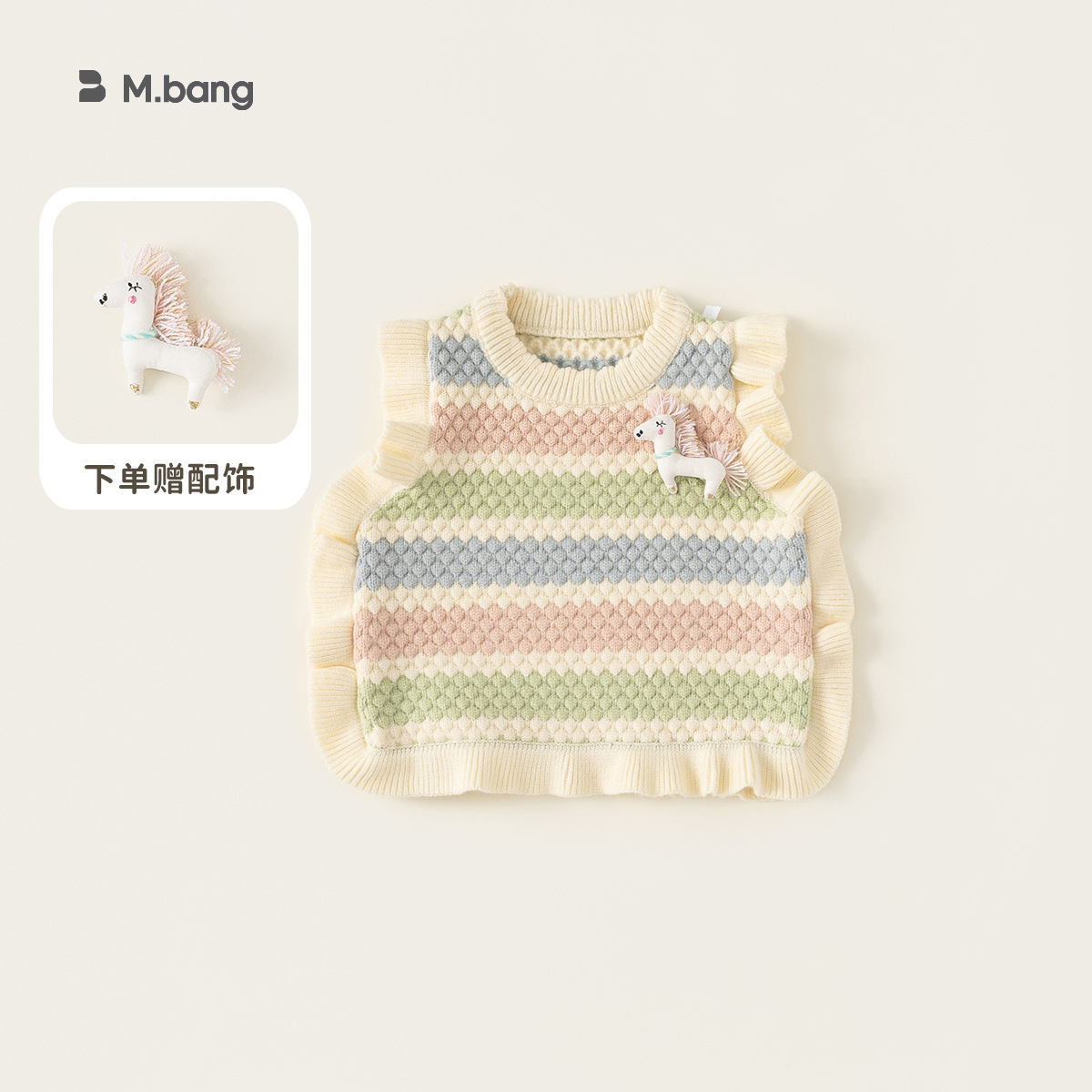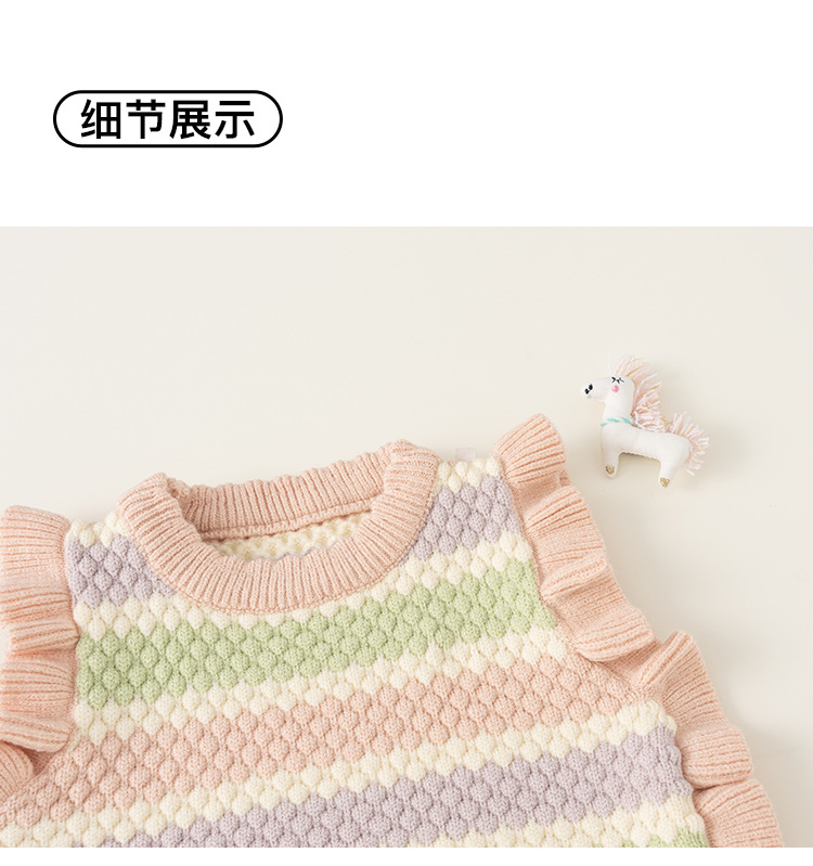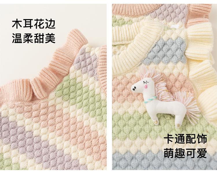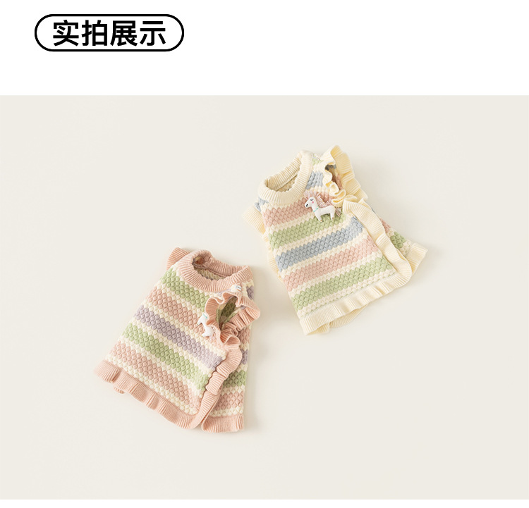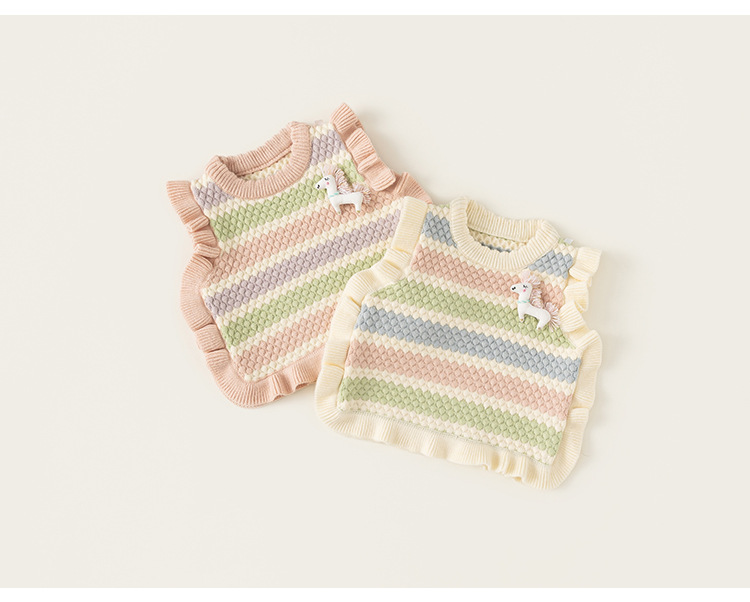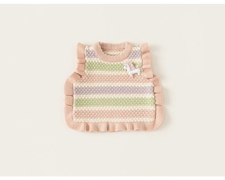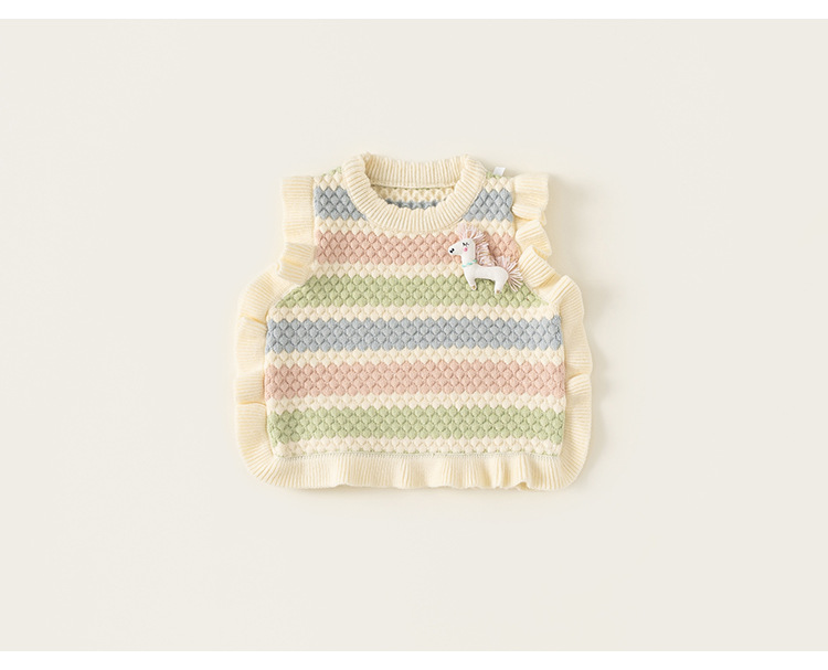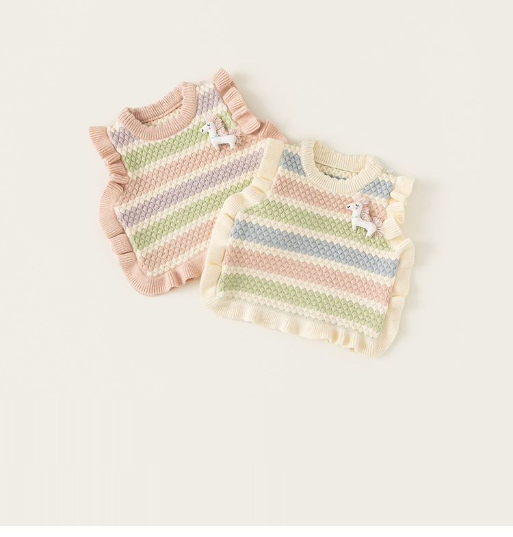 봉 선정한 여자 귀여운 유니콘 봄 · 가을 조끼 마카롱 줄무늬 어린이 스웨터 새 니트 조끼스토어 가기
