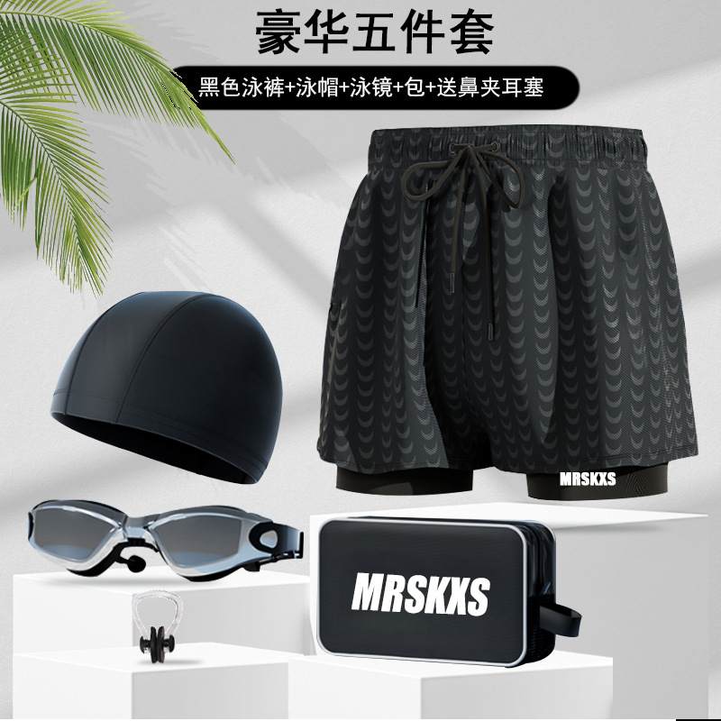 2024 년 새로운 수영 트렁크 남자의 느슨한 방황 해변 트렁크 수영 캡 도금 학위 수영 고글 장비 세트스토어 가기