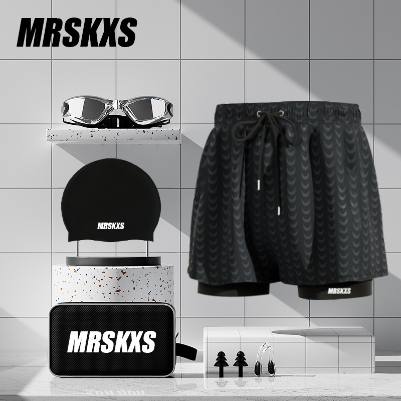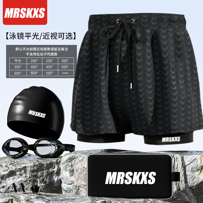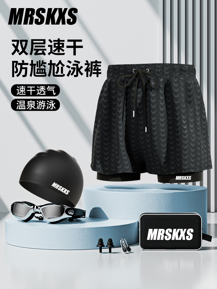 2024 년 새로운 수영 트렁크 남자의 느슨한 방황 해변 트렁크 수영 캡 도금 학위 수영 고글 장비 세트
