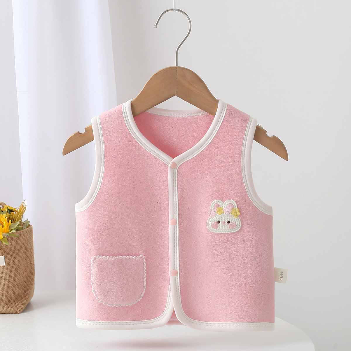 가을 겨울 신상 유아용 양면 양털 조끼, 남녀 아기 외출용 만화 무봉제 조끼, 외부 착용 가능스토어 가기