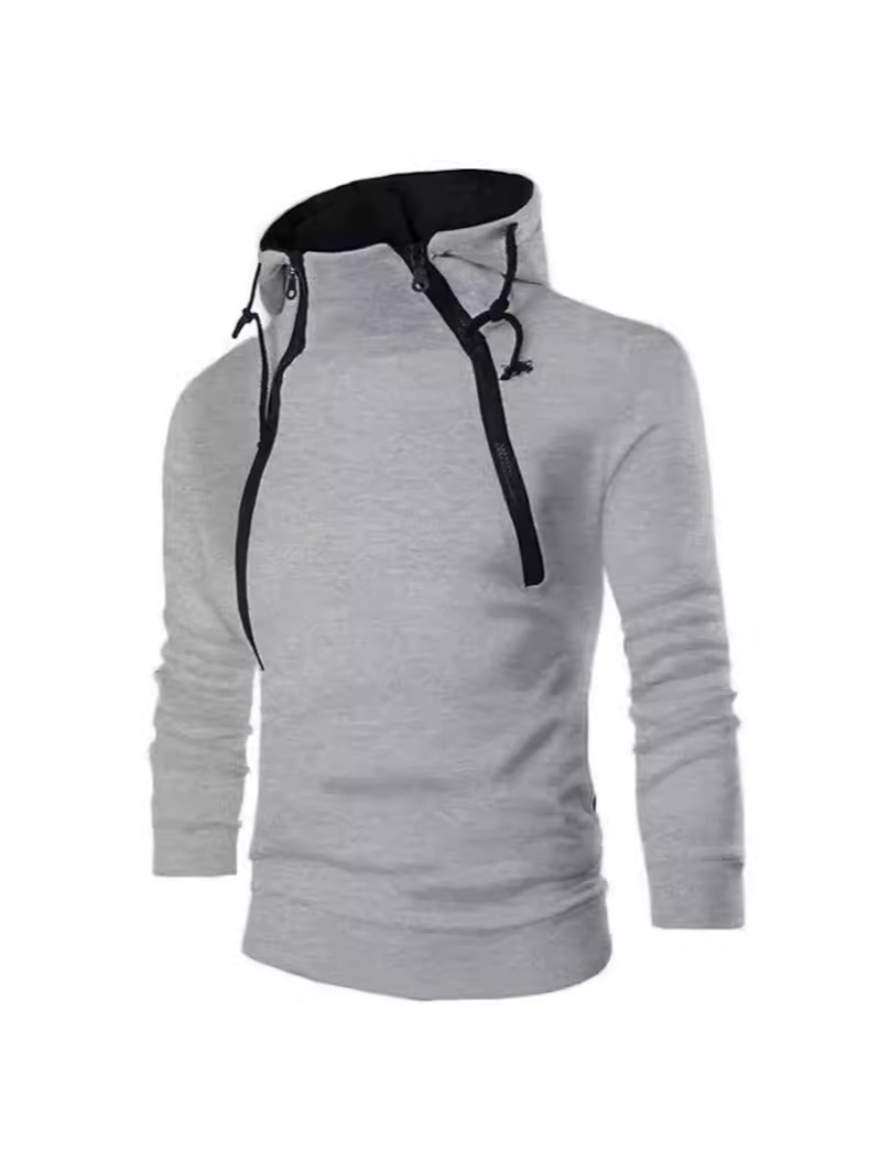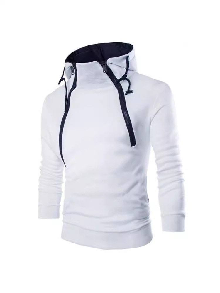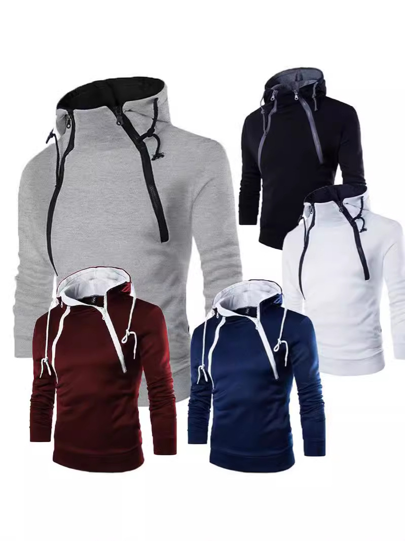 유럽과 미국 국경 가을과 겨울 새로운 패션 플래켓 더블 지퍼 카디건 대비 컬러 후드 코트 남성 스웨터 패션 브랜드스토어 가기