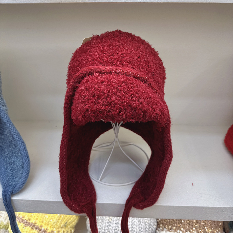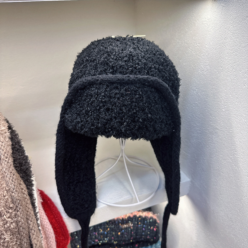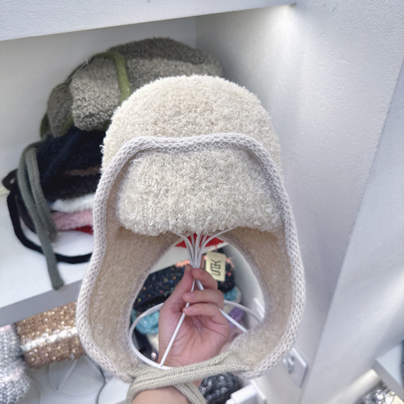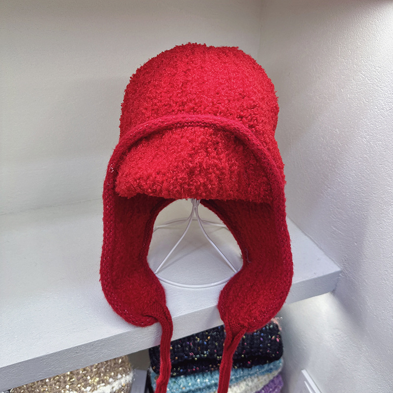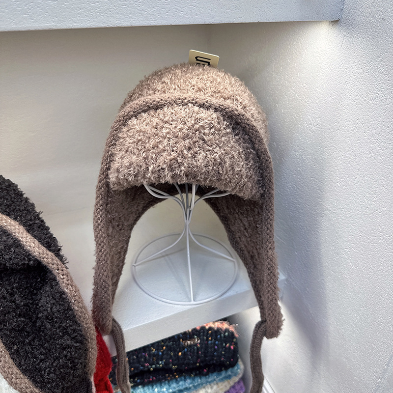 도매 한국 2024 새로운 한국어 버전의 니트 울 캡 여성의 가을과 겨울 귀 보호 플라잉 스트랩 레이 펑 캡스토어 가기