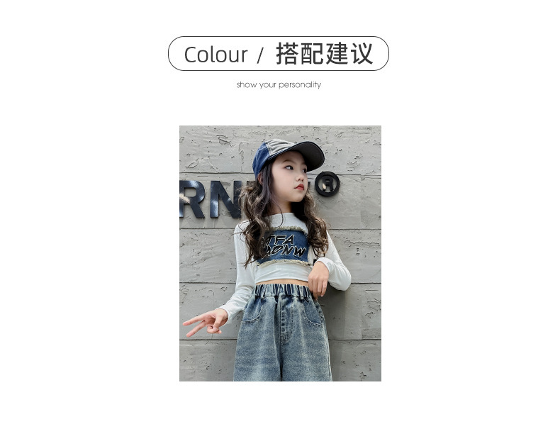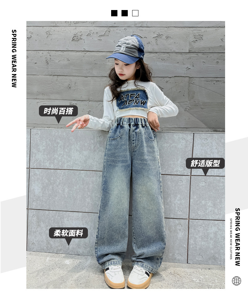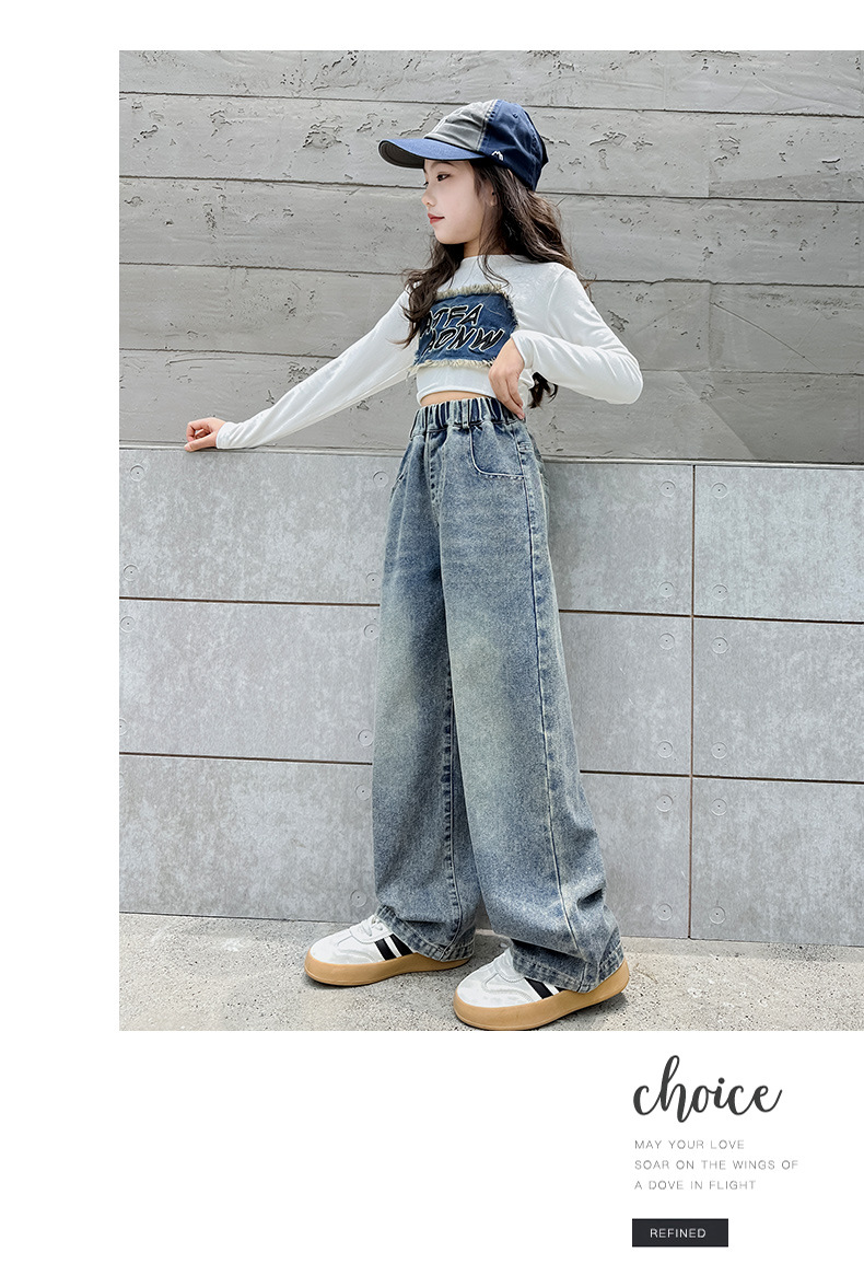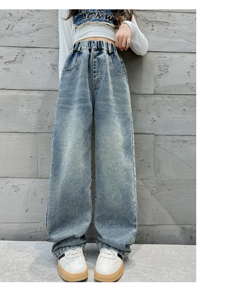 소녀 데님 넓은 다리 바지 간단한 바지 봄과 가을 2024 새로운 큰 어린이 느슨한 높은 허리 캐주얼 올 매치 바지스토어 가기