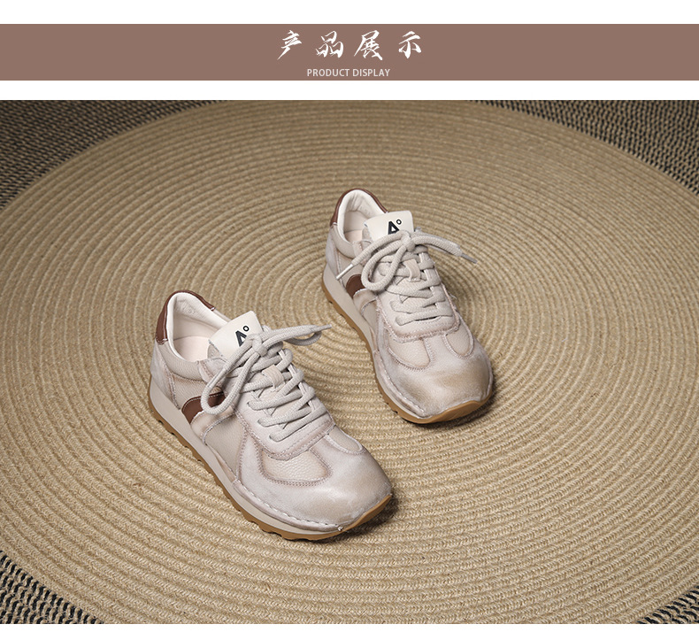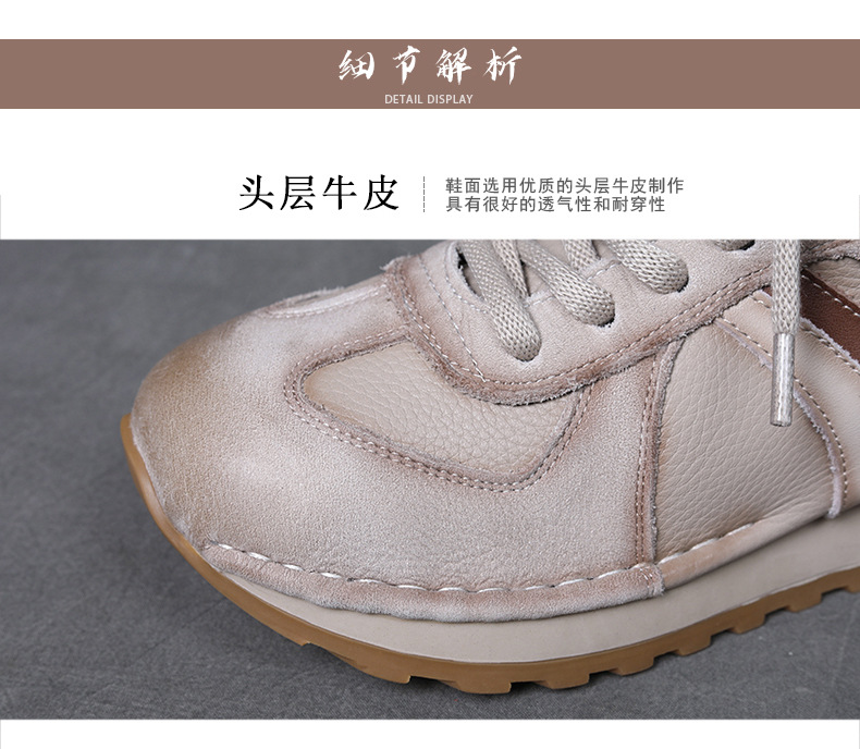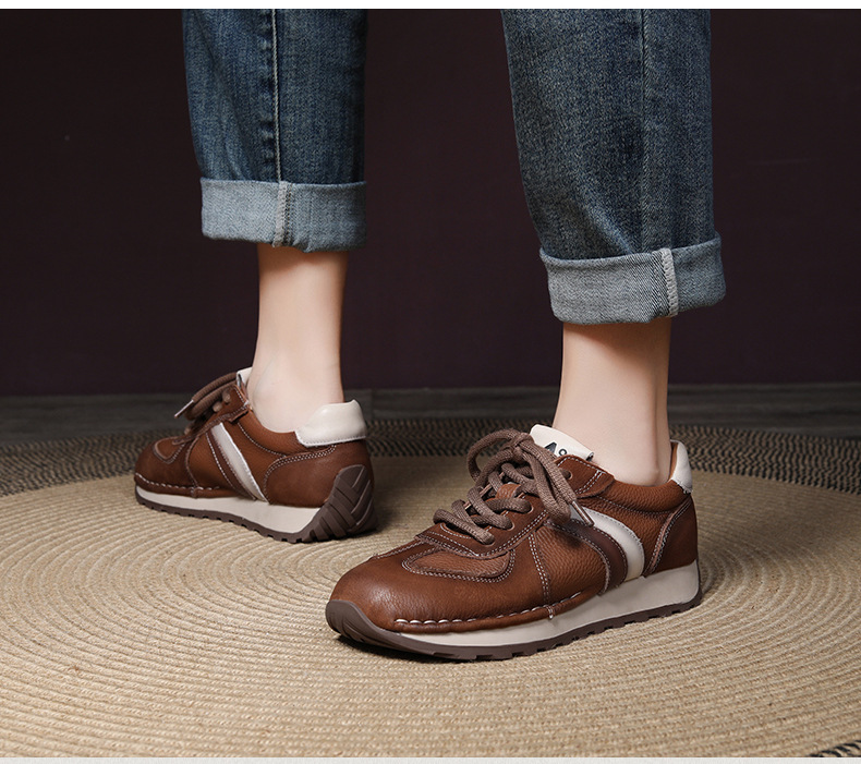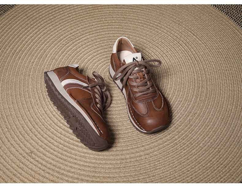 Delphinium 2024 가을 새로운 첫 번째 레이어 Cowhide 빈티지 캐주얼 독일 훈련 신발 웨지 레이스 업 컬러 매칭 여성용 신발스토어 가기