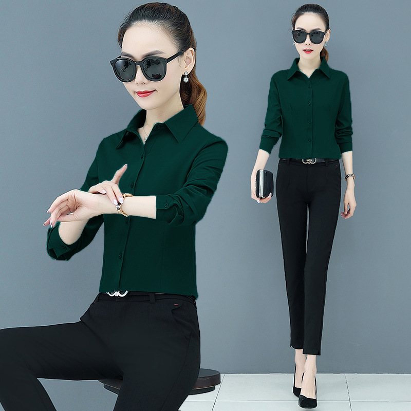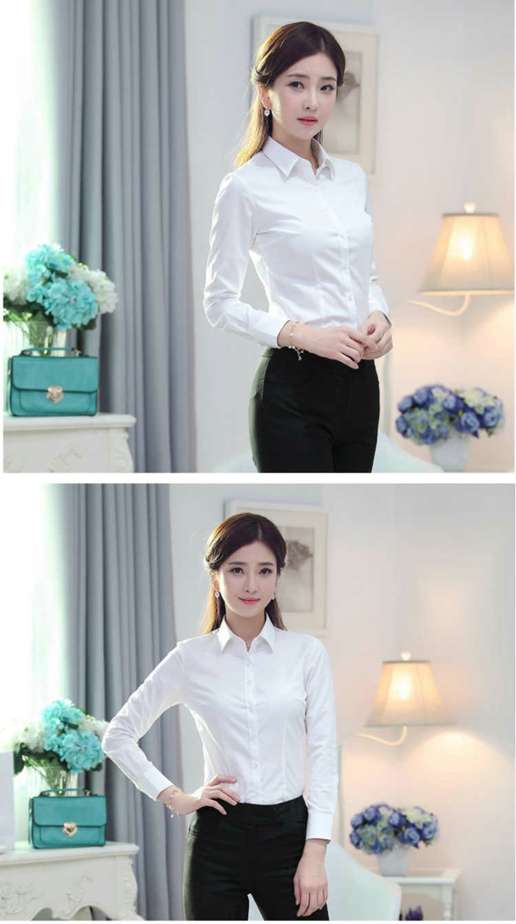 봄과 가을 옷 흰색 외부 착용 내부 비즈니스 탑 화이트 셔츠 여성 요새 긴 소매 셔츠 전문 작업복 작업복스토어 가기