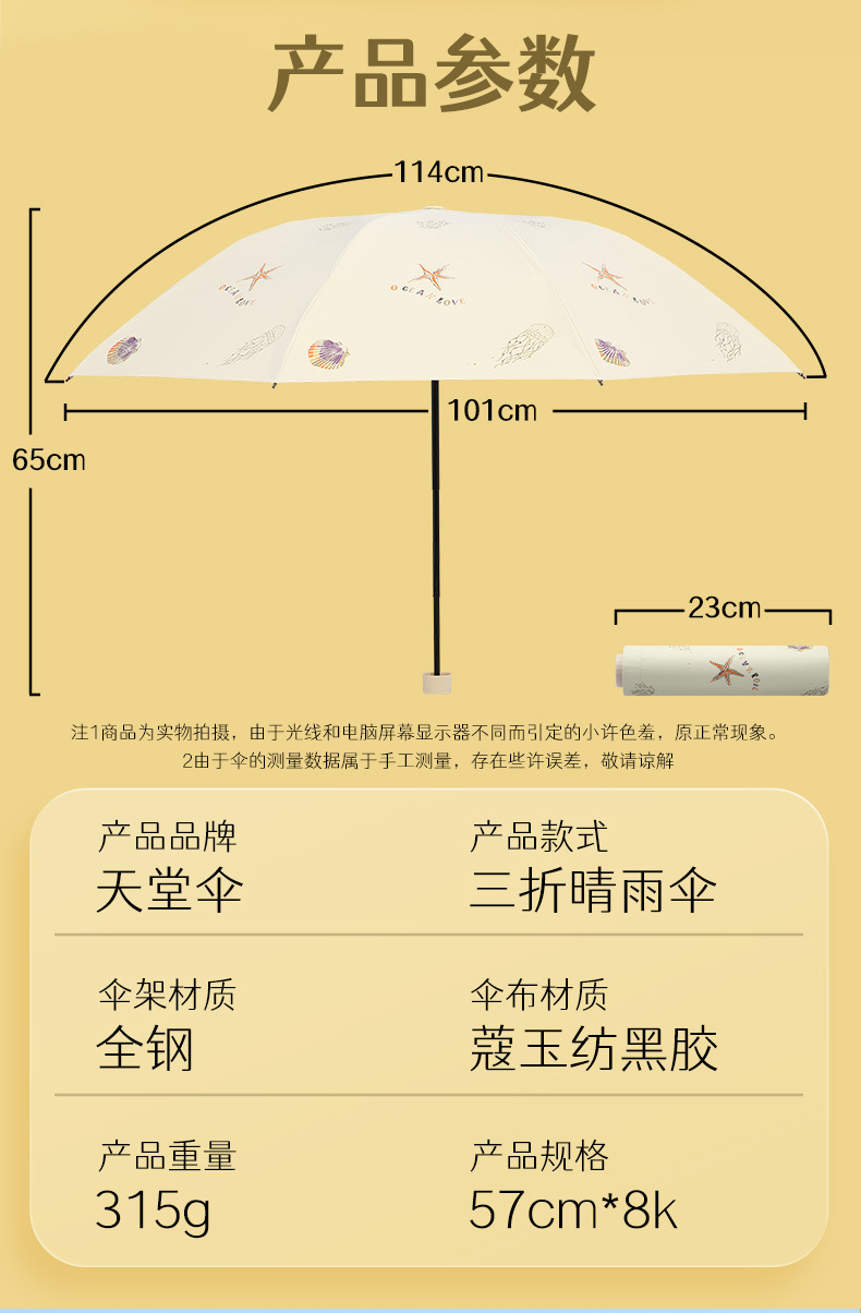 파라다이스 우산 33921E 모래 검은 고무 3 배 우산 수동 안티 자외선 태양 우산 차양