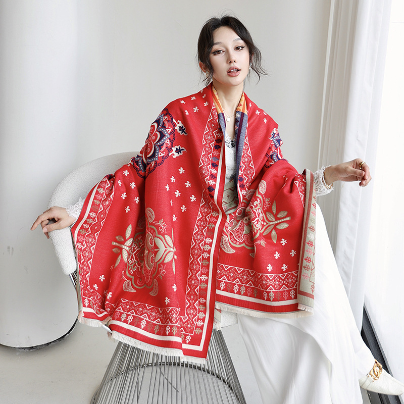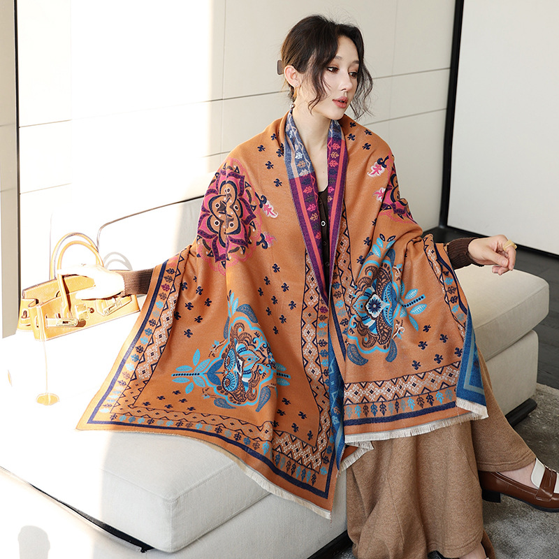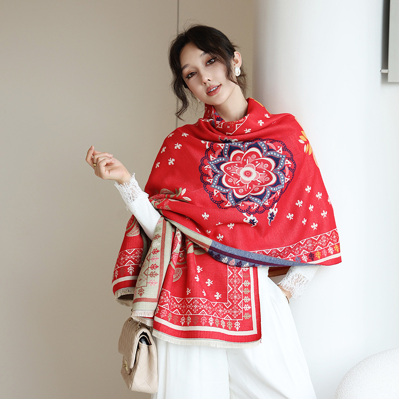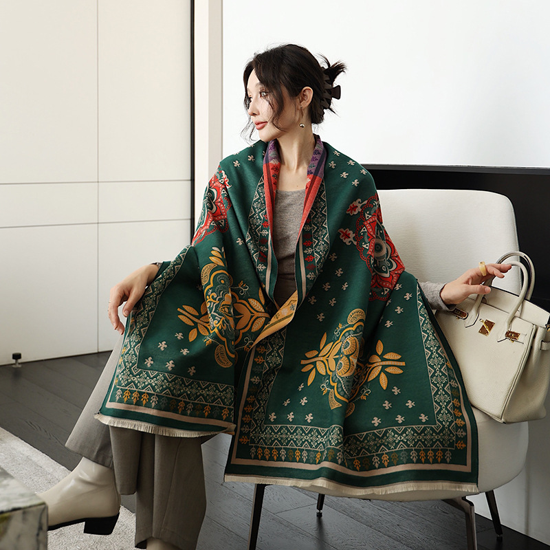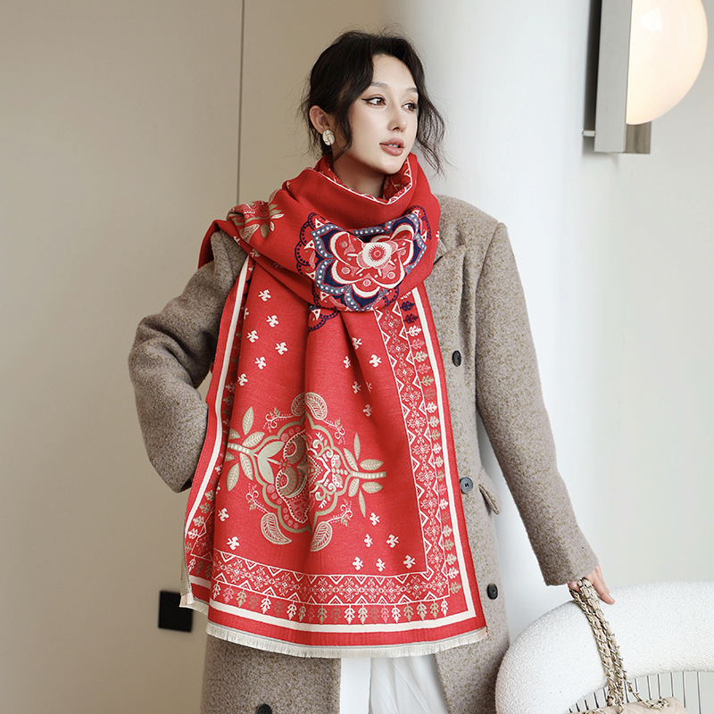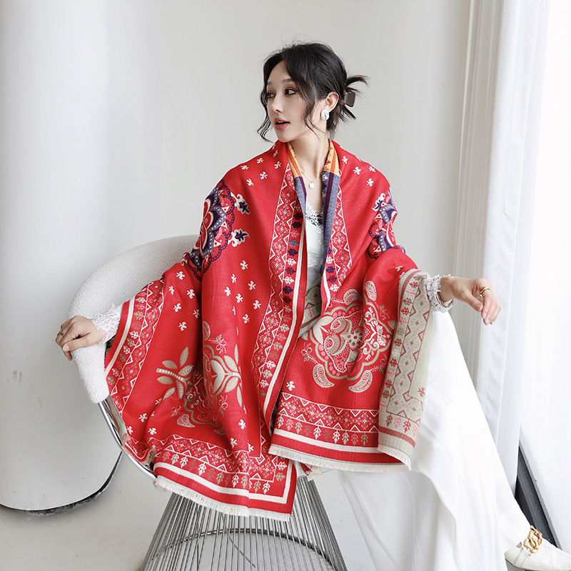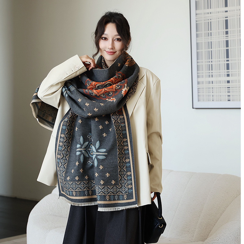 스카프 여자 겨울 한국식 양면 자카드 목도리 따뜻한 두껍게 인쇄 된 아우터웨어 스카프