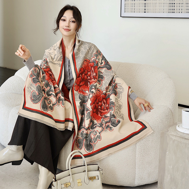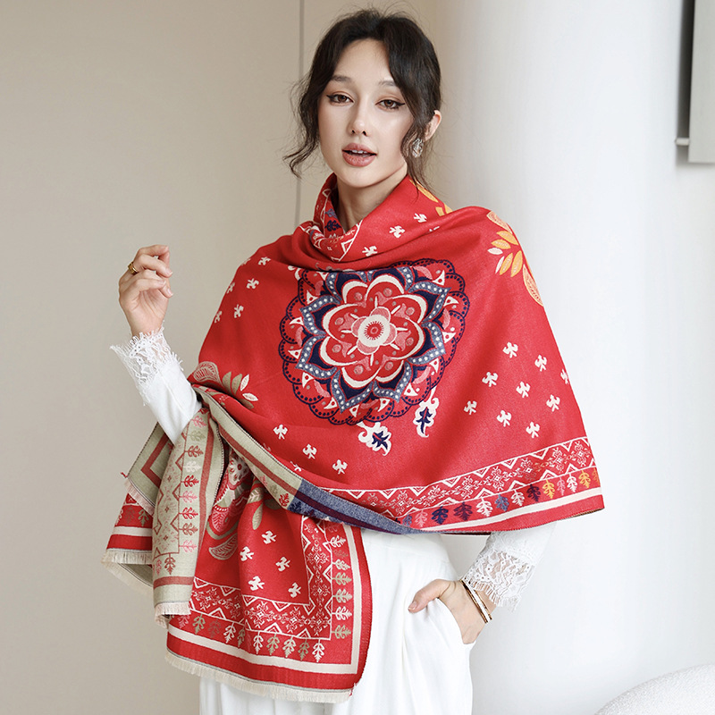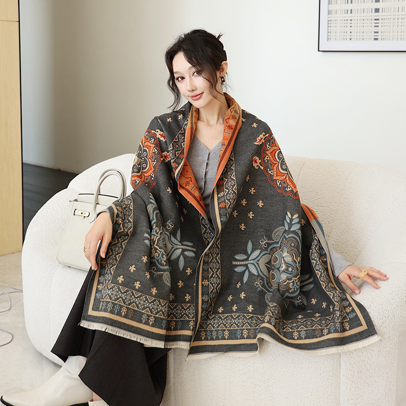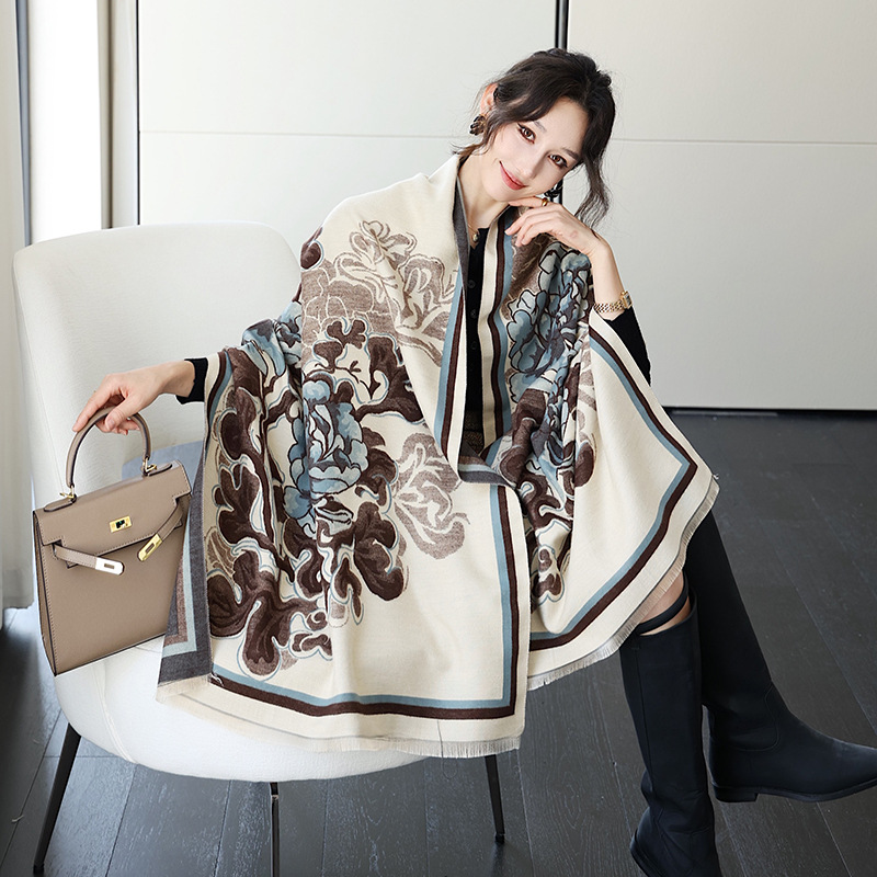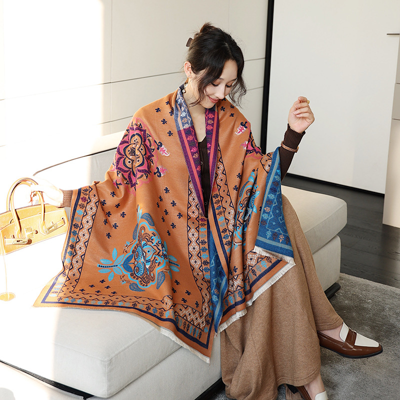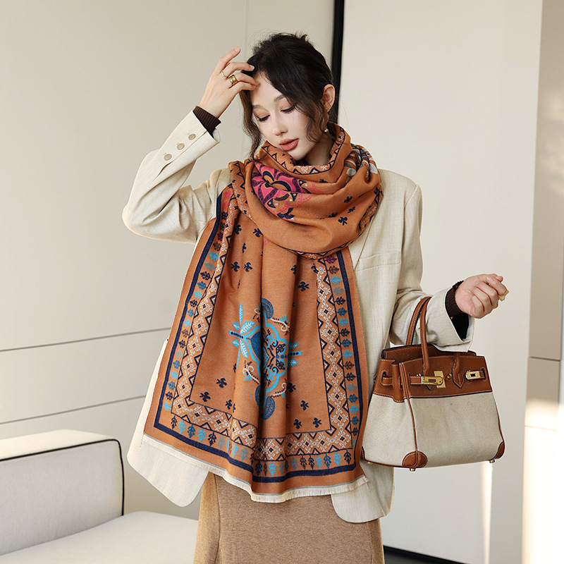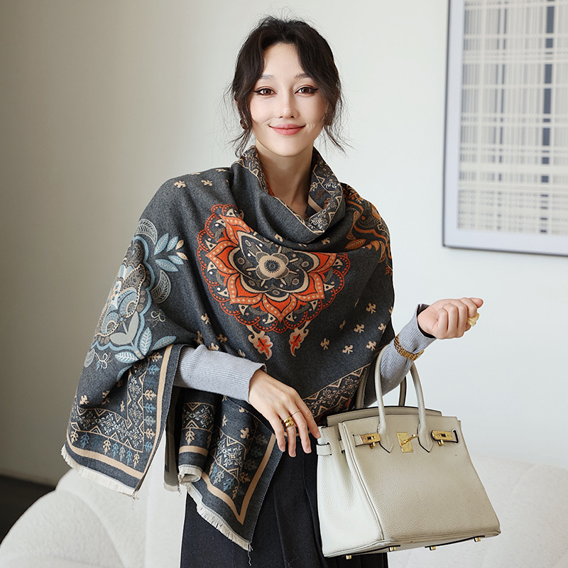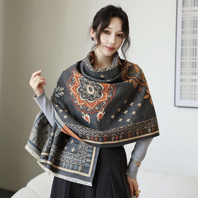 스카프 여자 겨울 한국식 양면 자카드 목도리 따뜻한 두껍게 인쇄 된 아우터웨어 스카프