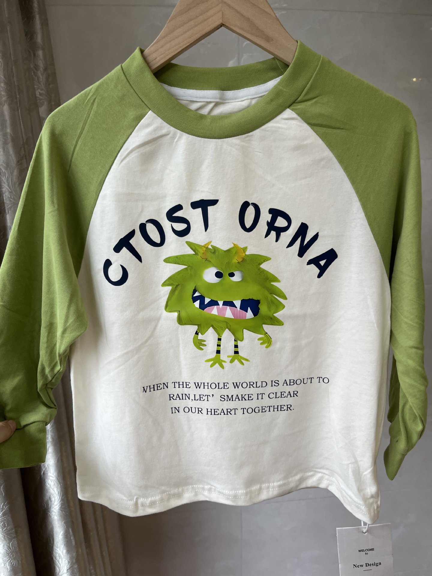 어린이 의류 도매 소년과 소녀 가을 새로운 만화 인쇄 긴 소매 티셔츠 컬러 일치하는 라글란 소매 큰 어린이 100 면 탑스토어 가기