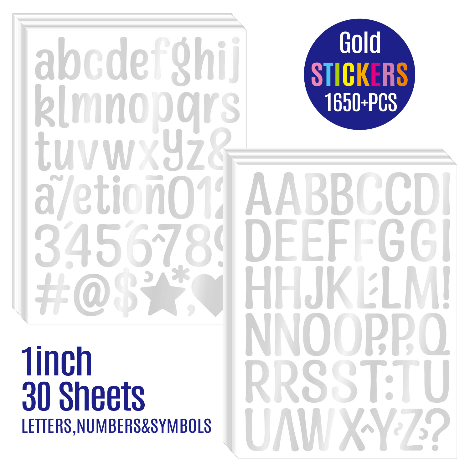 1英寸【艺术体金】30张/套(OPP袋包装)(大小写字母加数字符号共1650枚+)