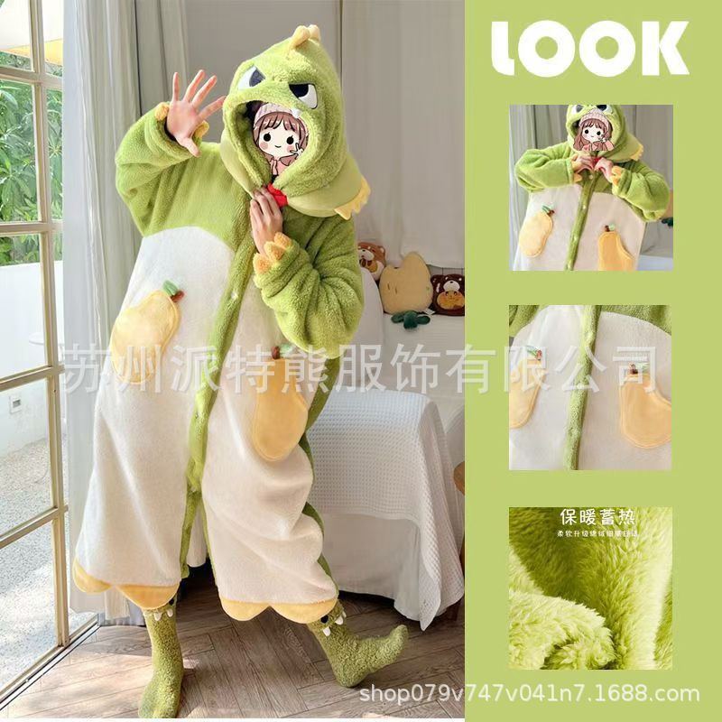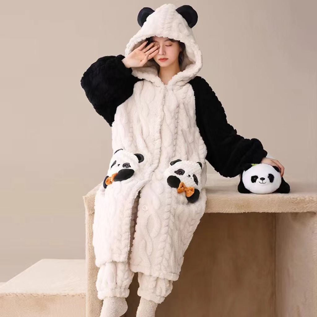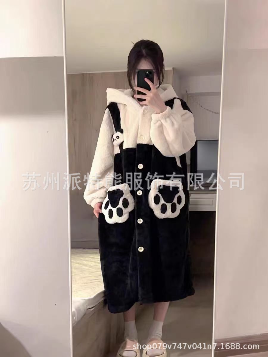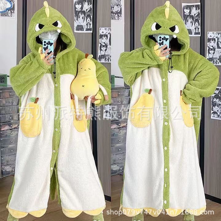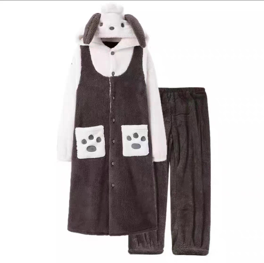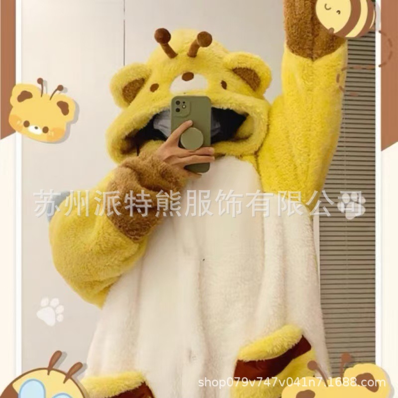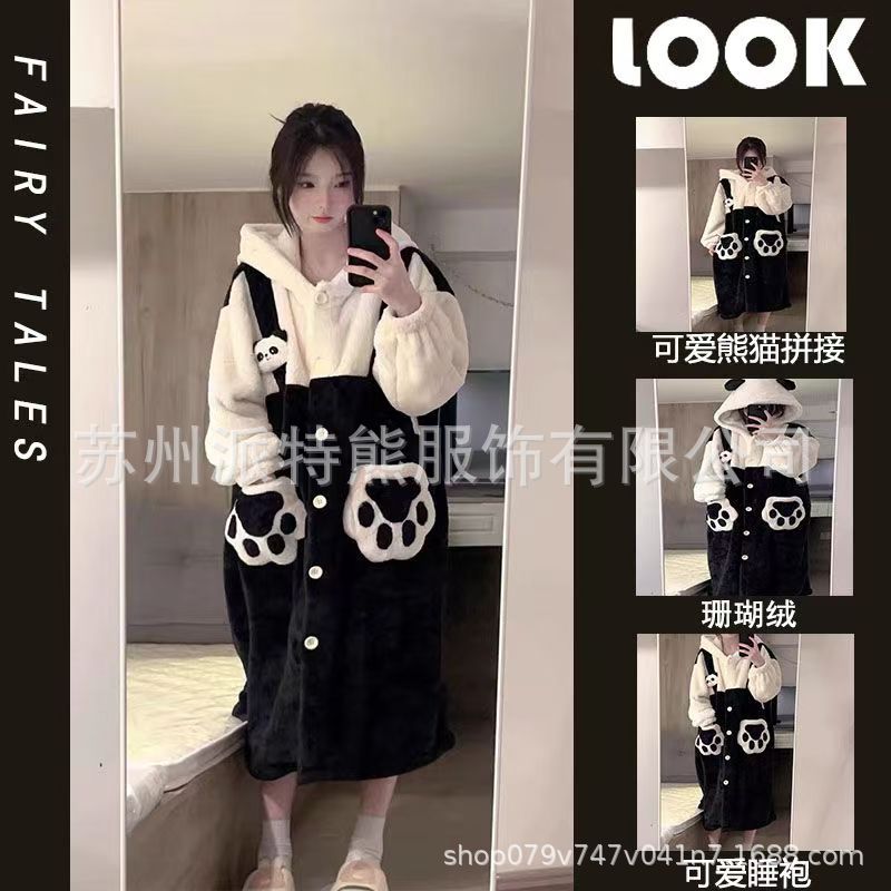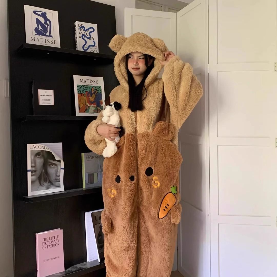 산호 양털 파자마 여성의 기모 가을 겨울 귀여운 만화 후드 커플 잠옷 스위트 홈 의류 대외 무역