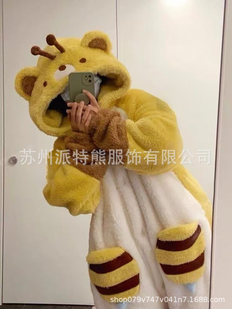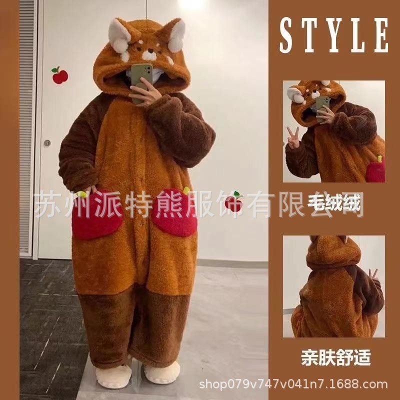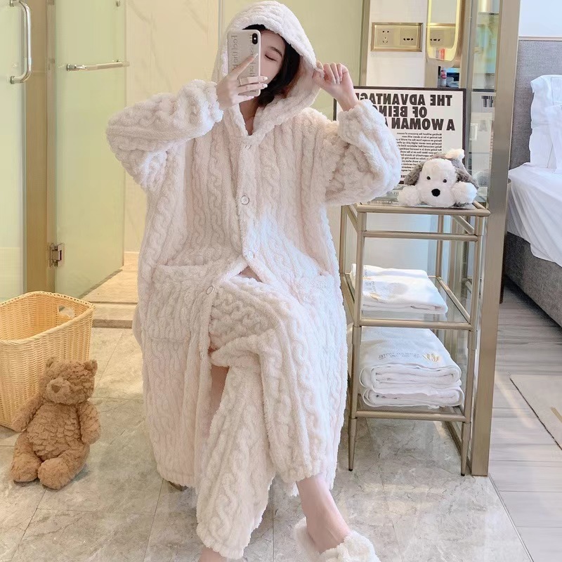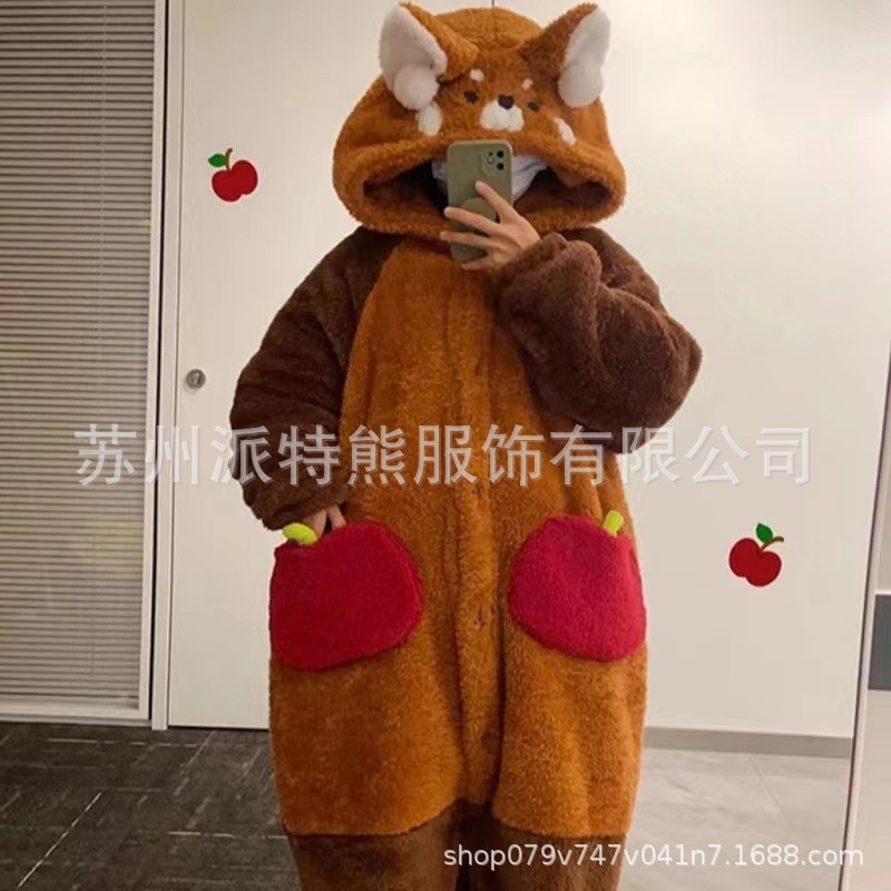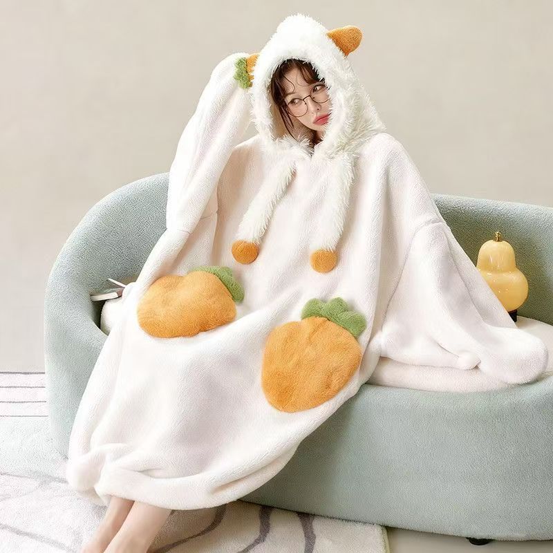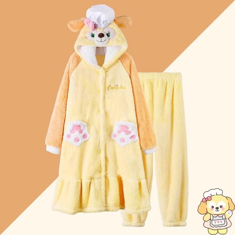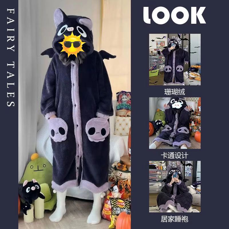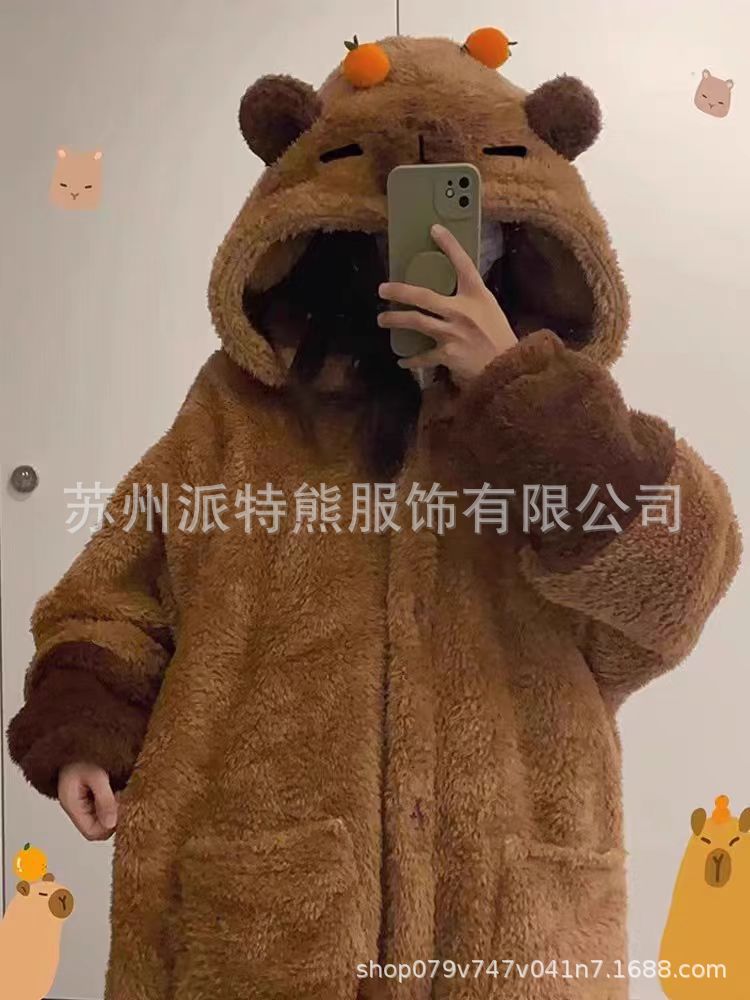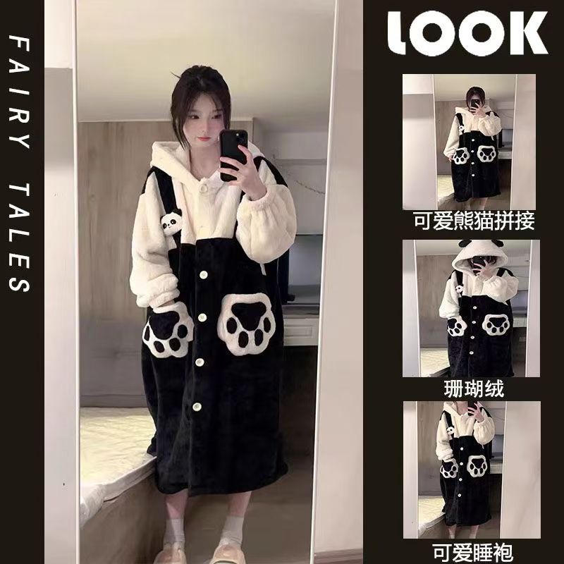 산호 양털 파자마 여성의 기모 가을 겨울 귀여운 만화 후드 커플 잠옷 스위트 홈 의류 대외 무역