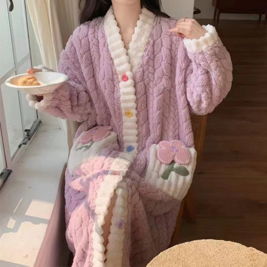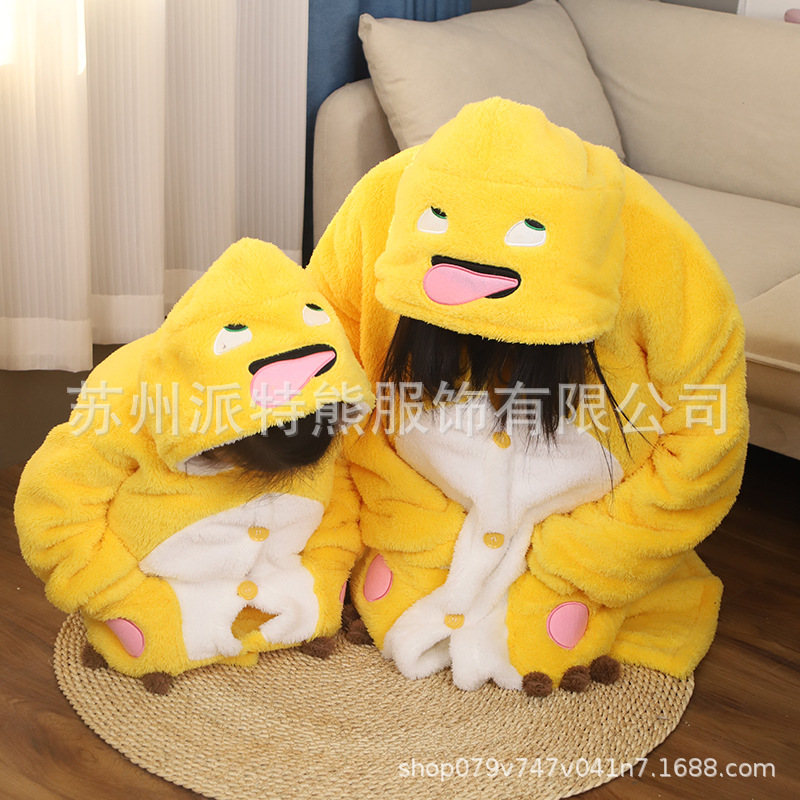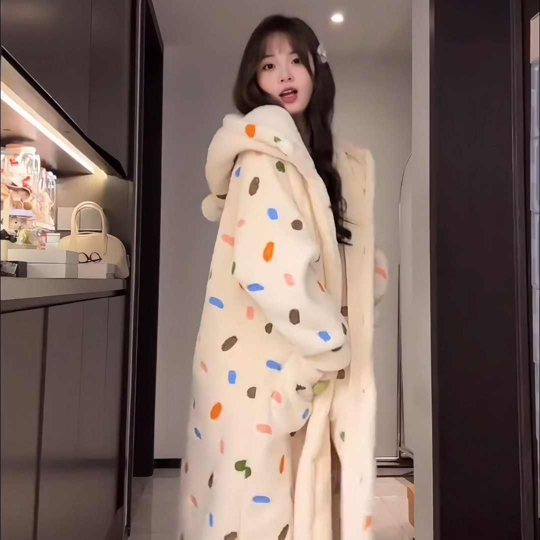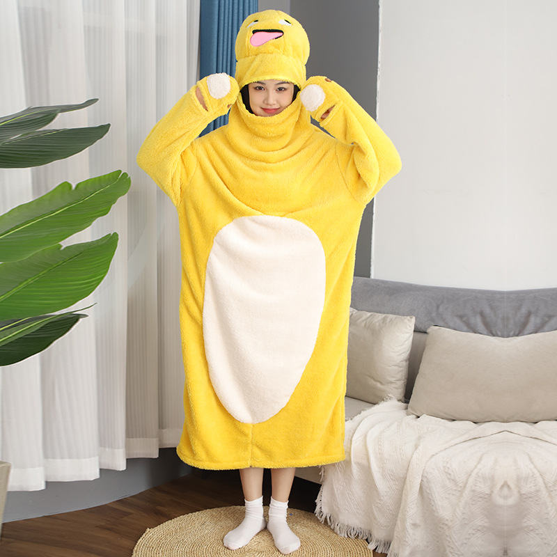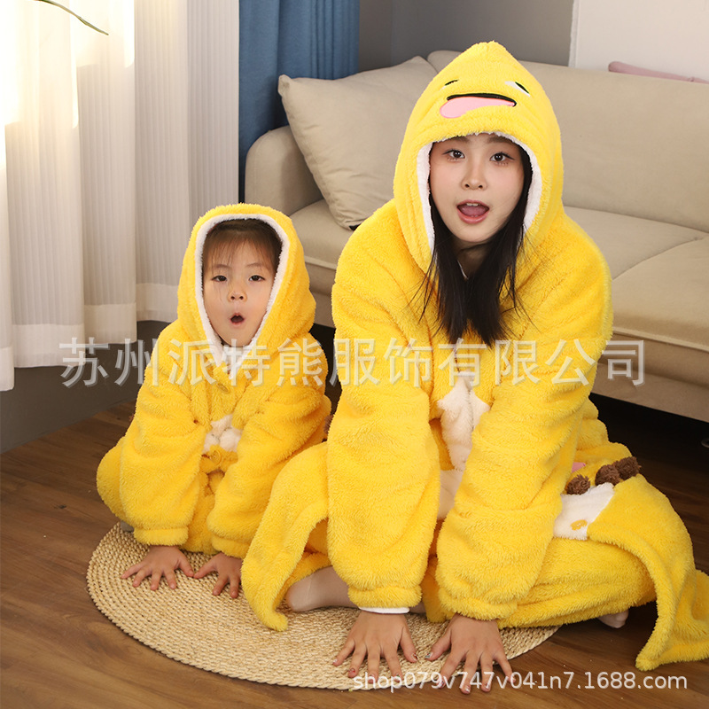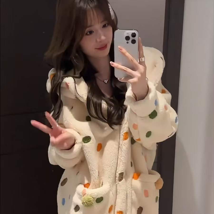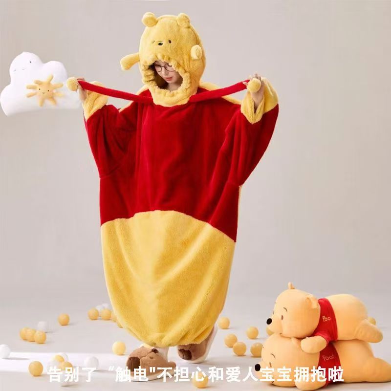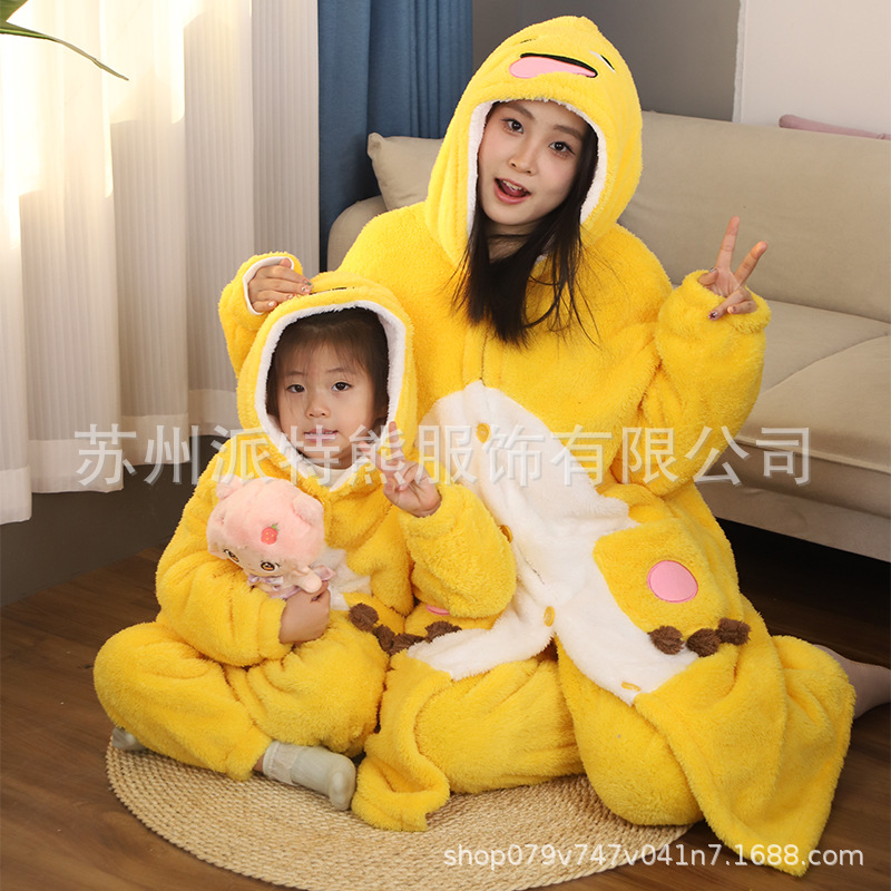 산호 양털 파자마 여성의 기모 가을 겨울 귀여운 만화 후드 커플 잠옷 스위트 홈 의류 대외 무역