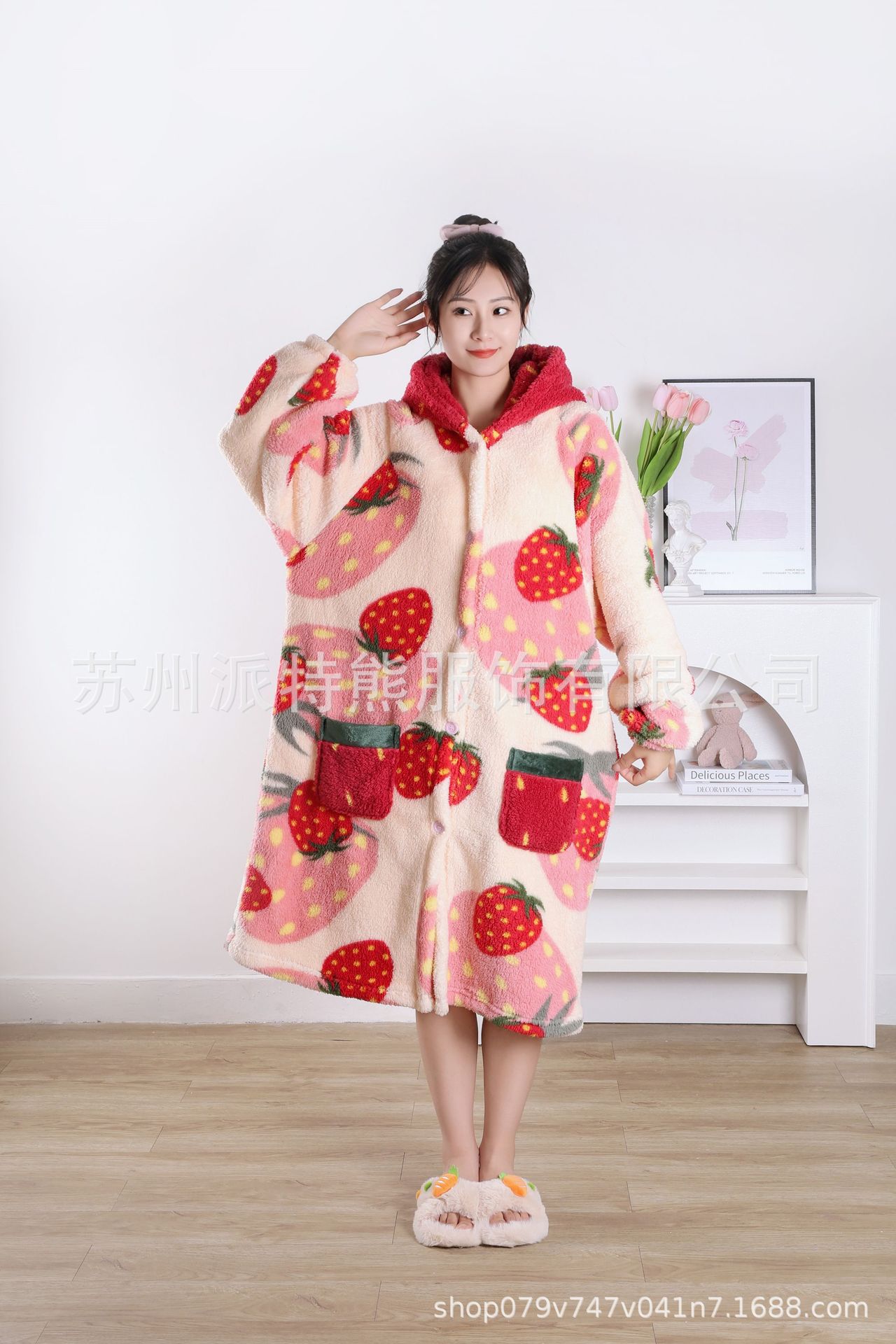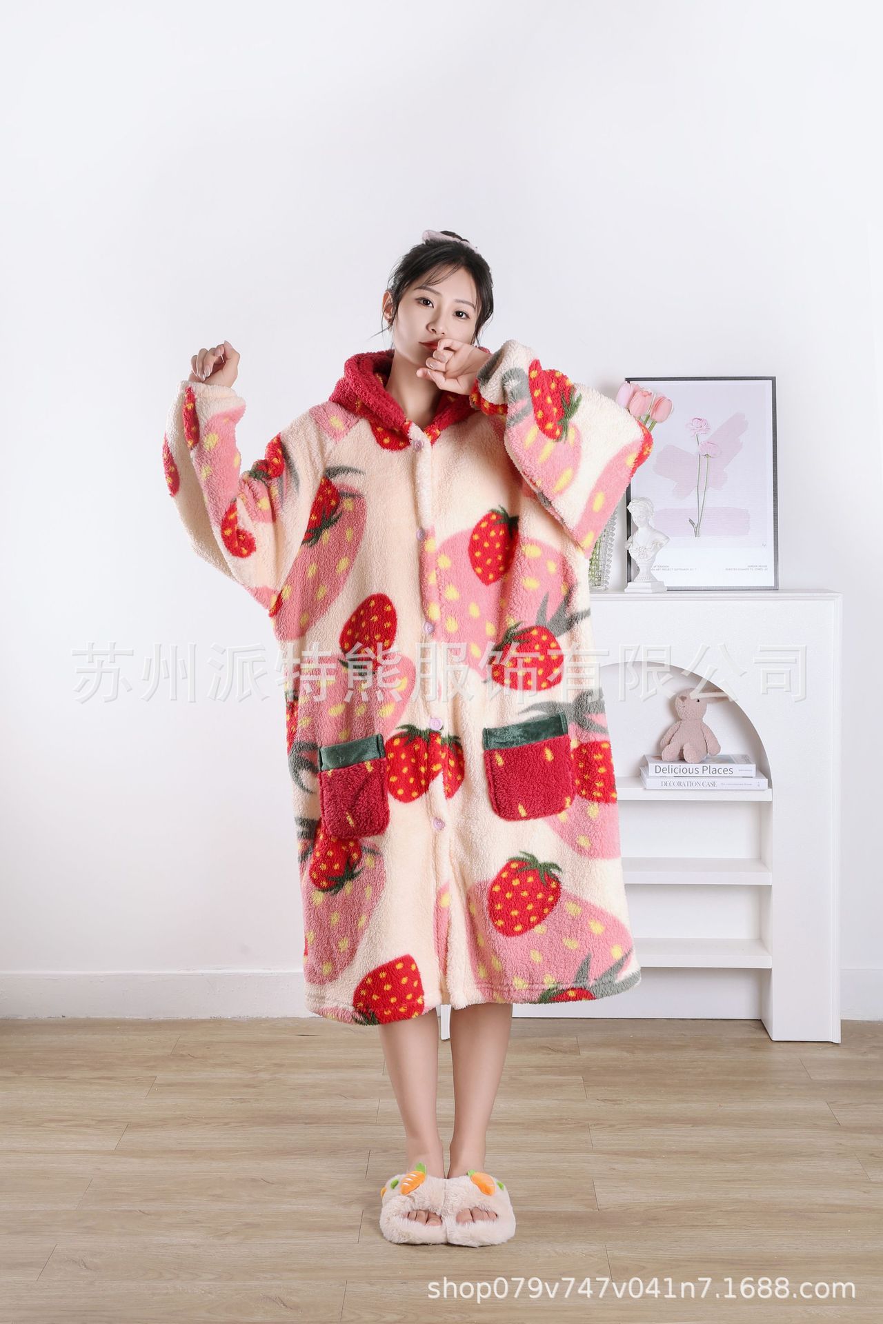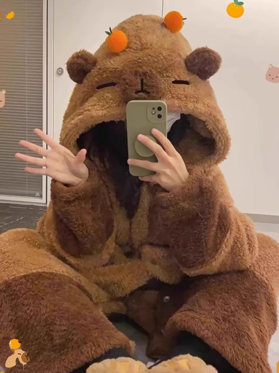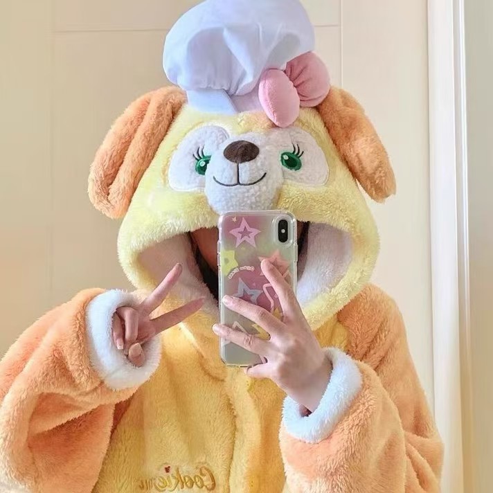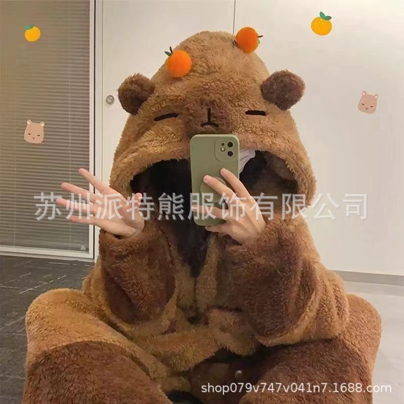 산호 양털 파자마 여성의 기모 가을 겨울 귀여운 만화 후드 커플 잠옷 스위트 홈 의류 대외 무역스토어 가기