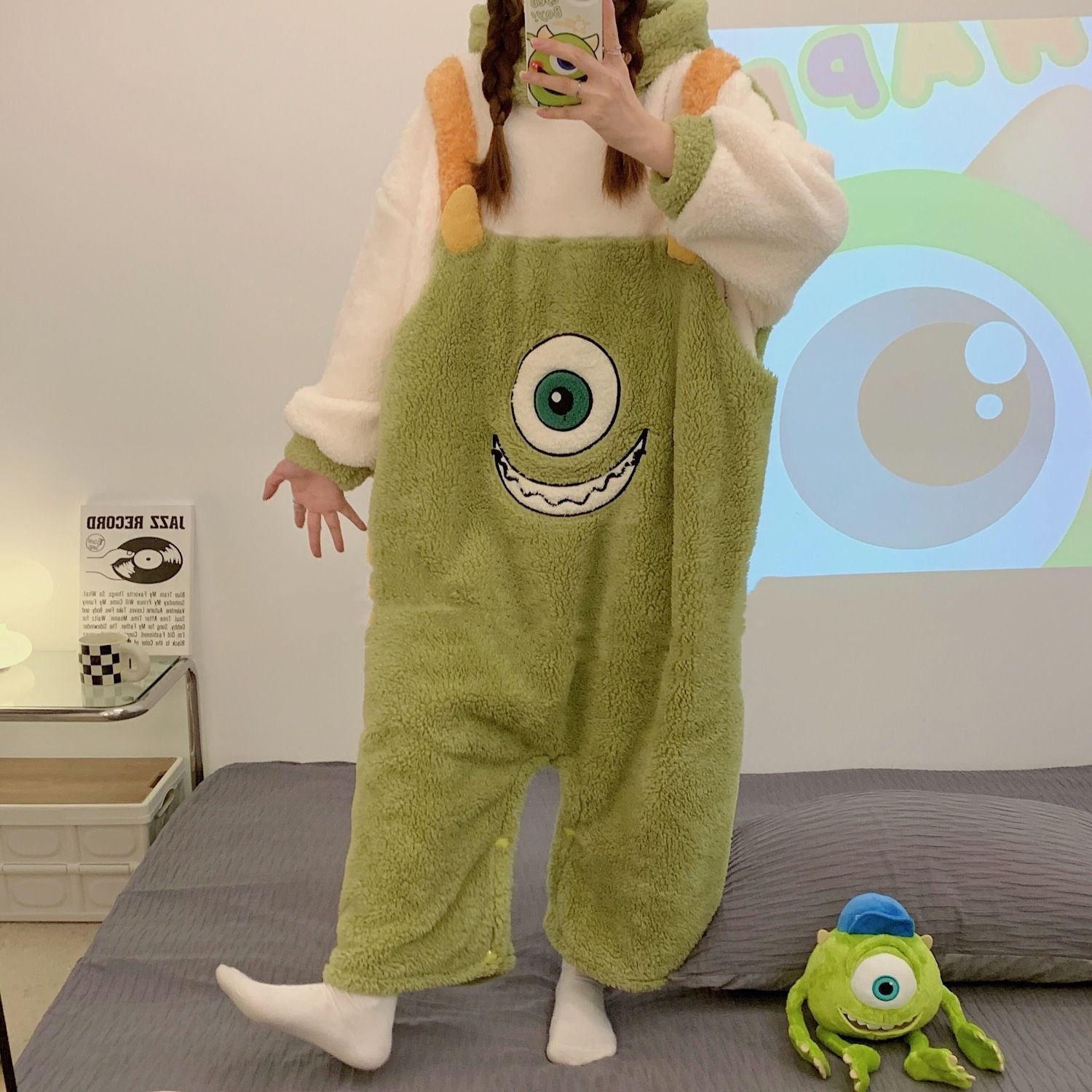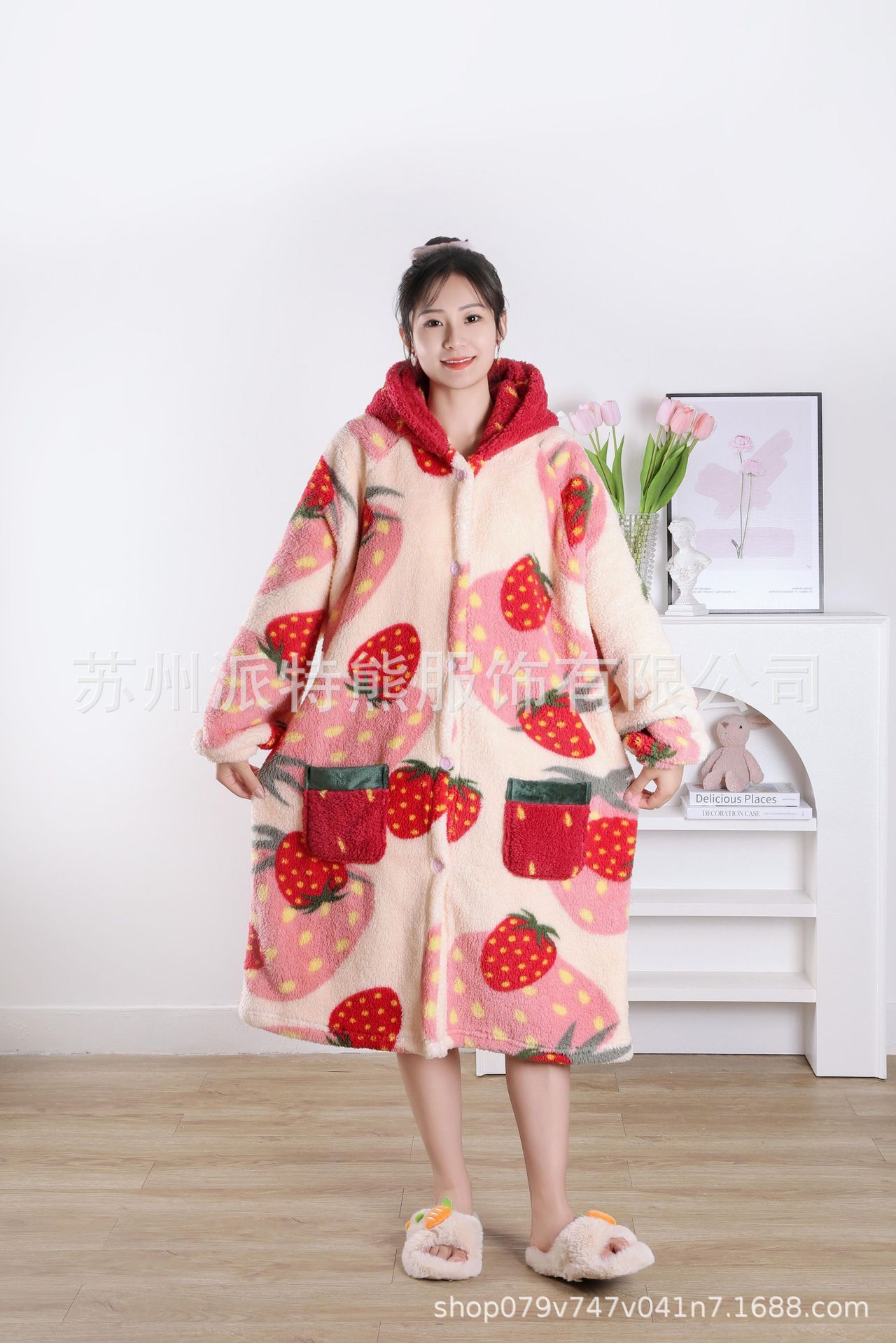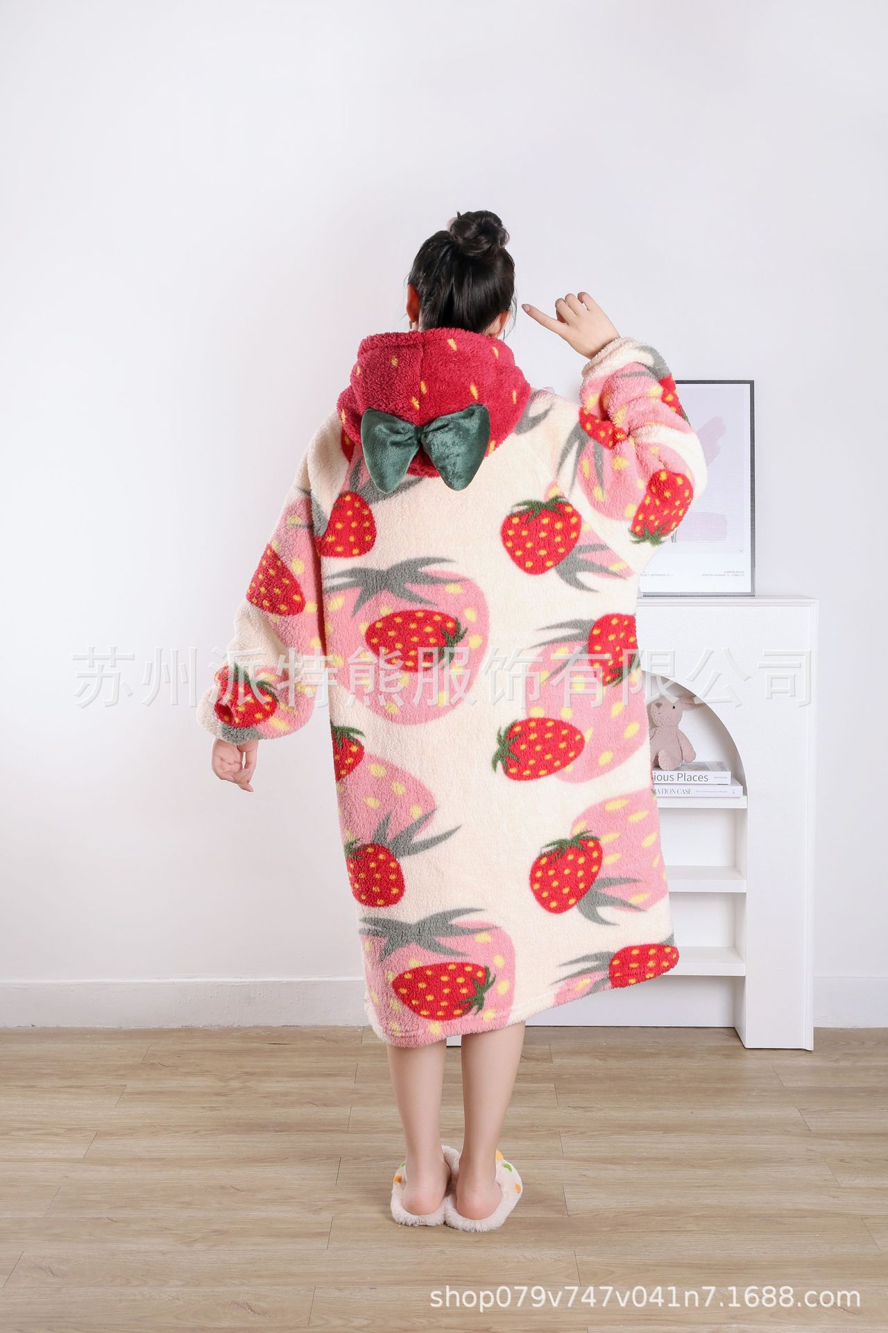 산호 양털 파자마 여성의 기모 가을 겨울 귀여운 만화 후드 커플 잠옷 스위트 홈 의류 대외 무역스토어 가기