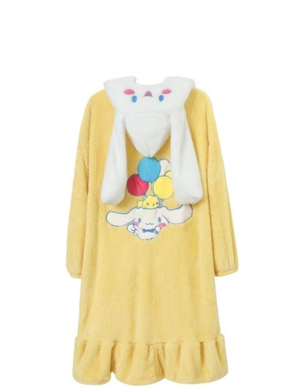 • 뒷면에 노란색 계피 개 자수 잠옷