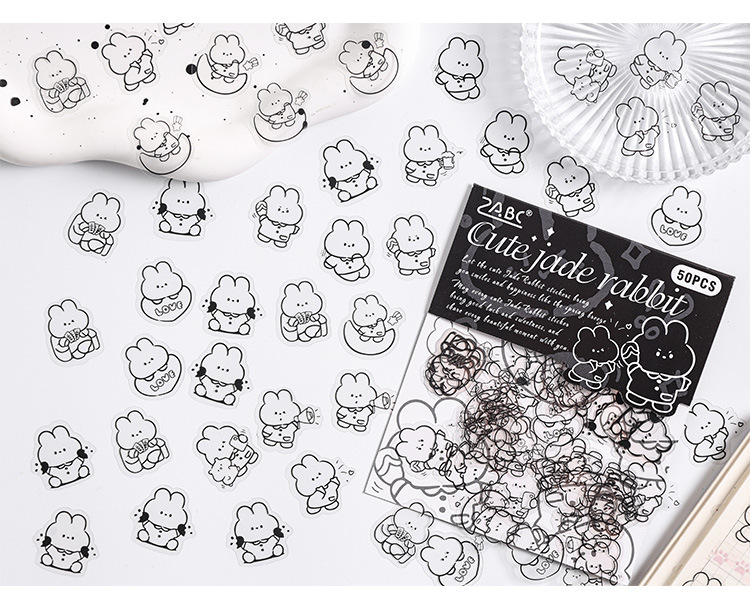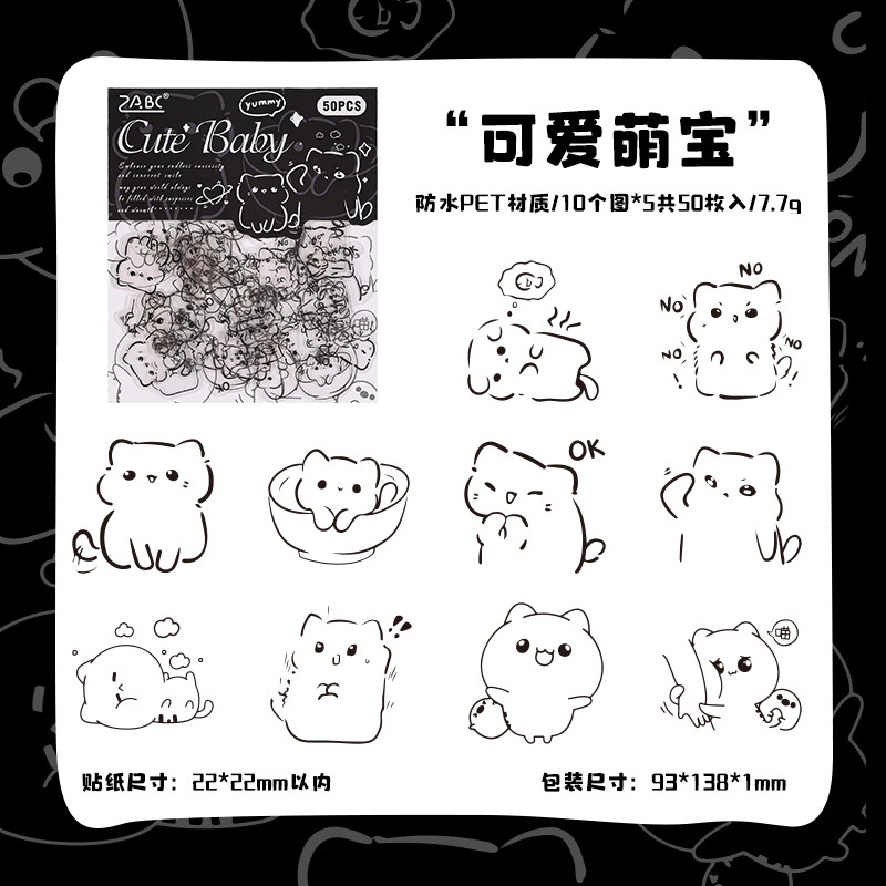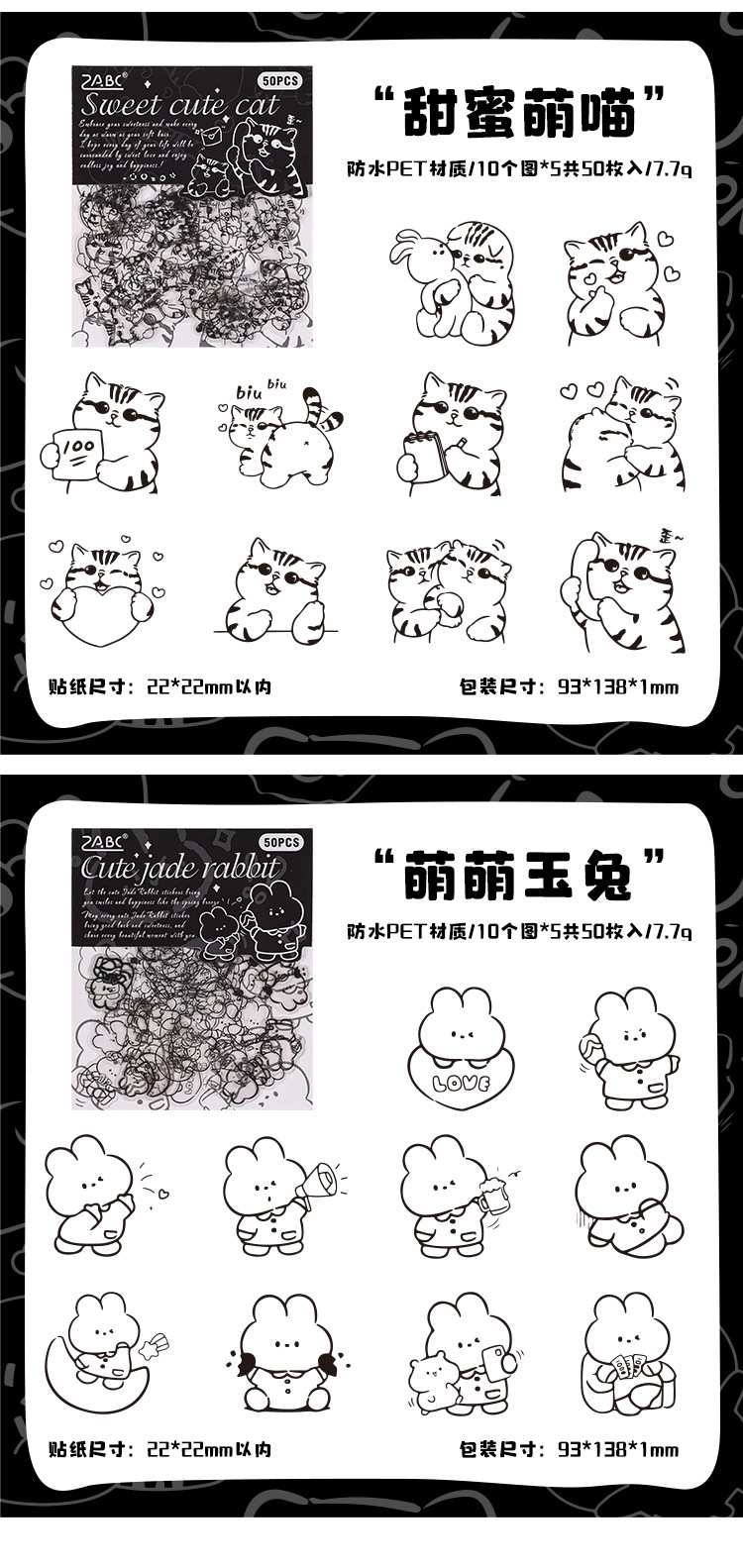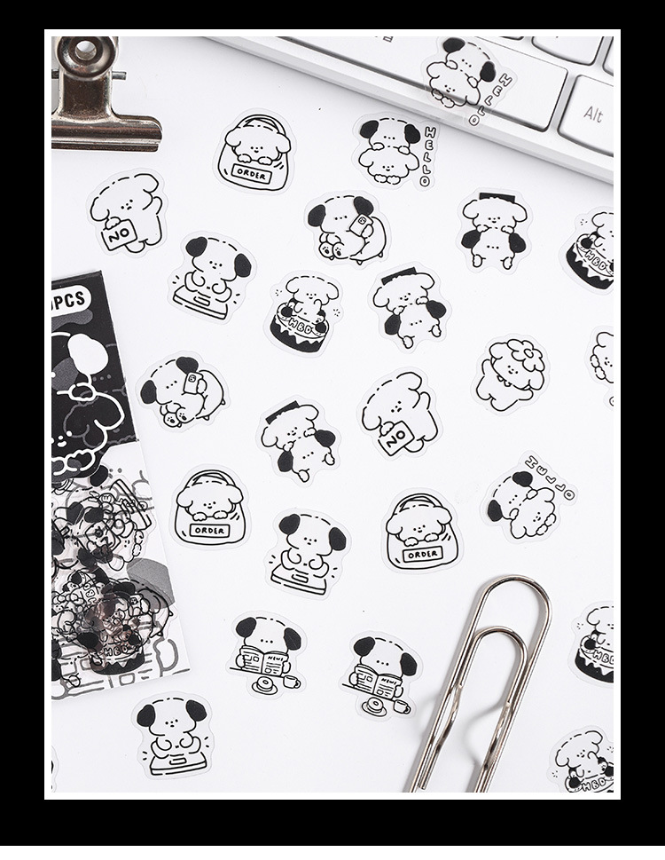 원래 제나라 동물 투명한 방수 애완 동물 스티커 가방 DIY 손 계정 일기 스티커 흑백 요소 만화 동물 스티커스토어 가기
