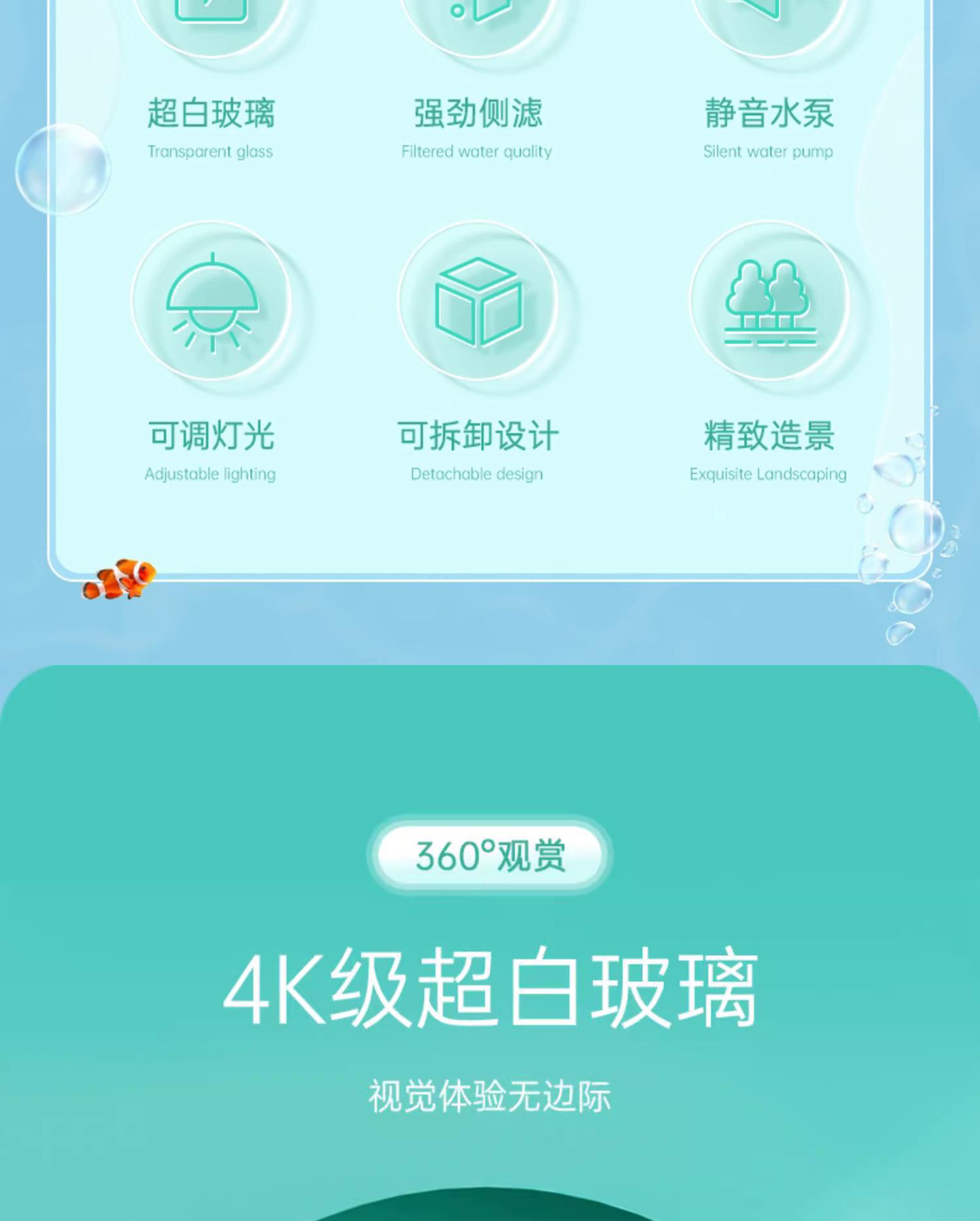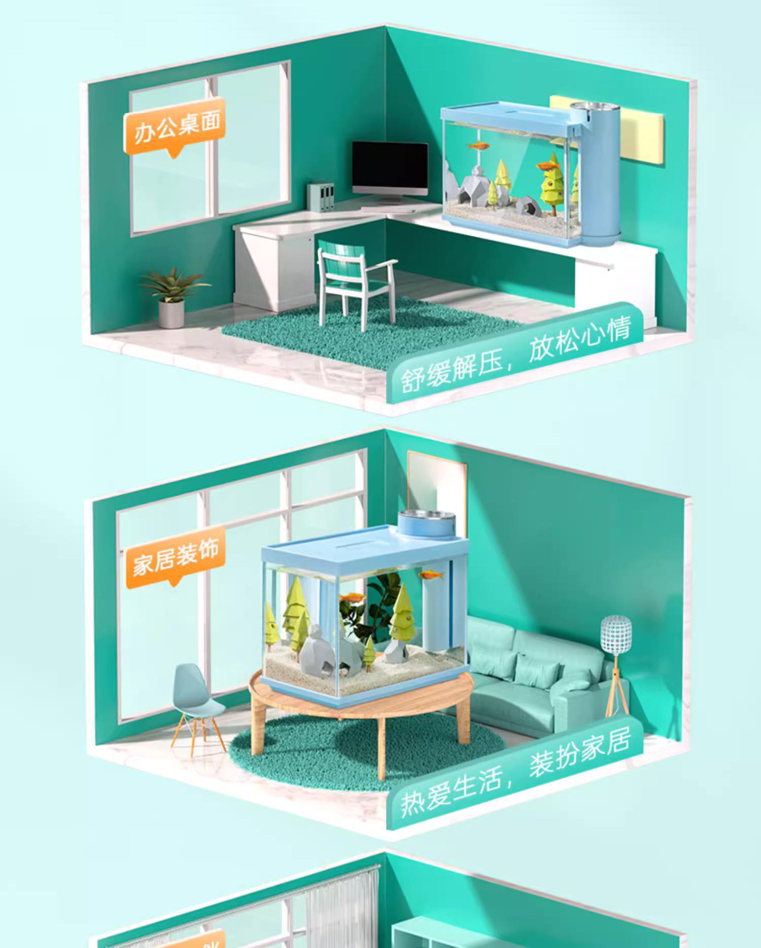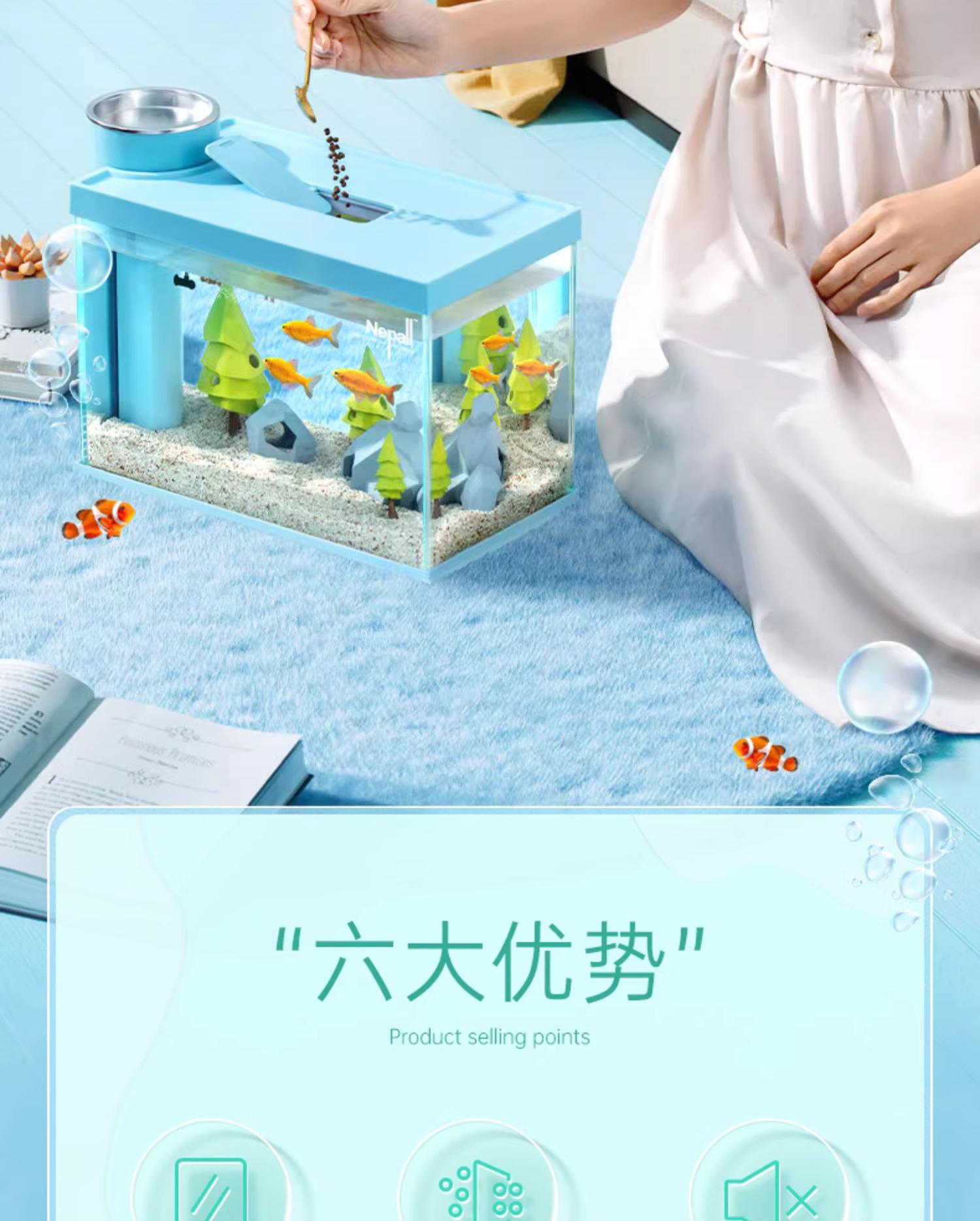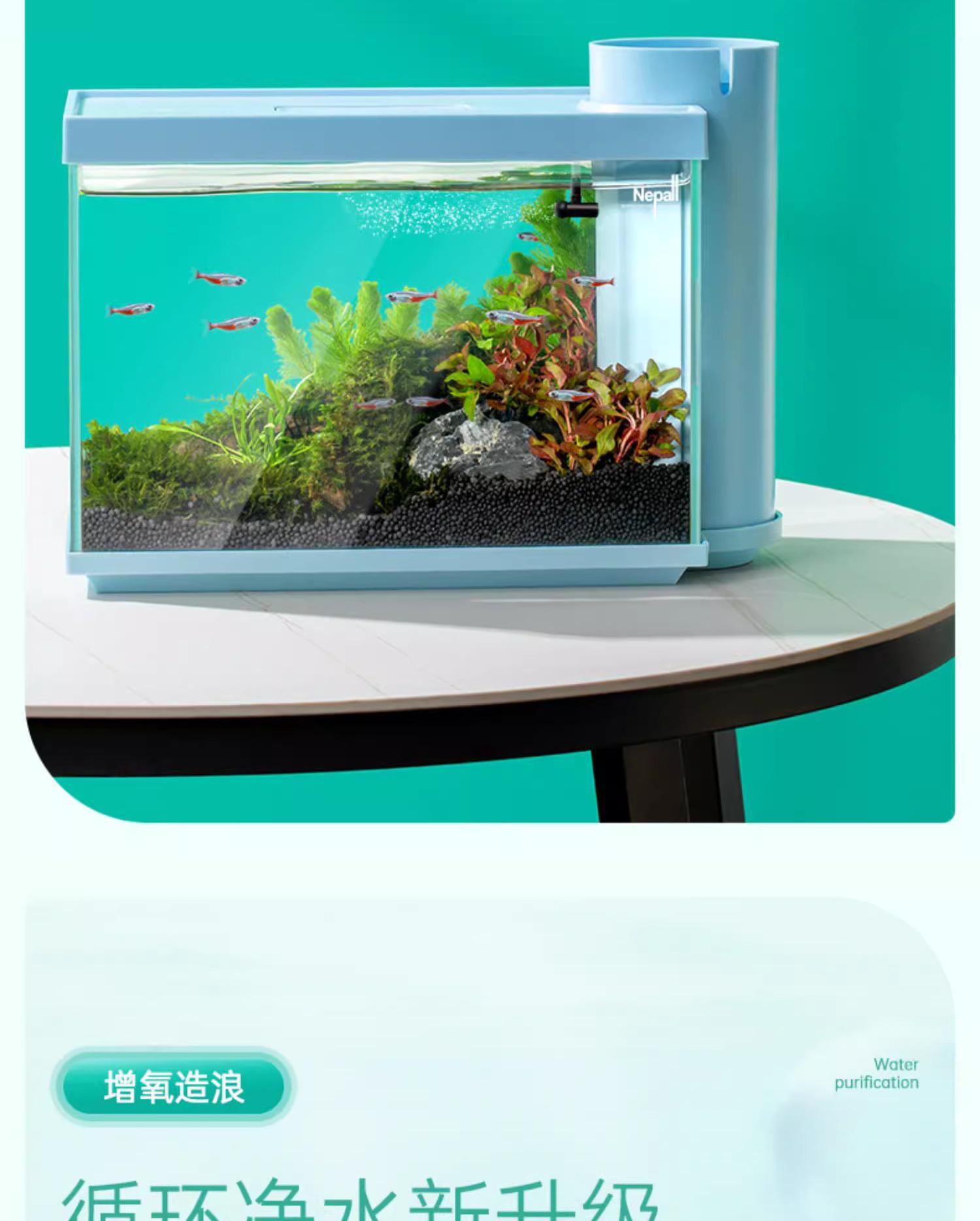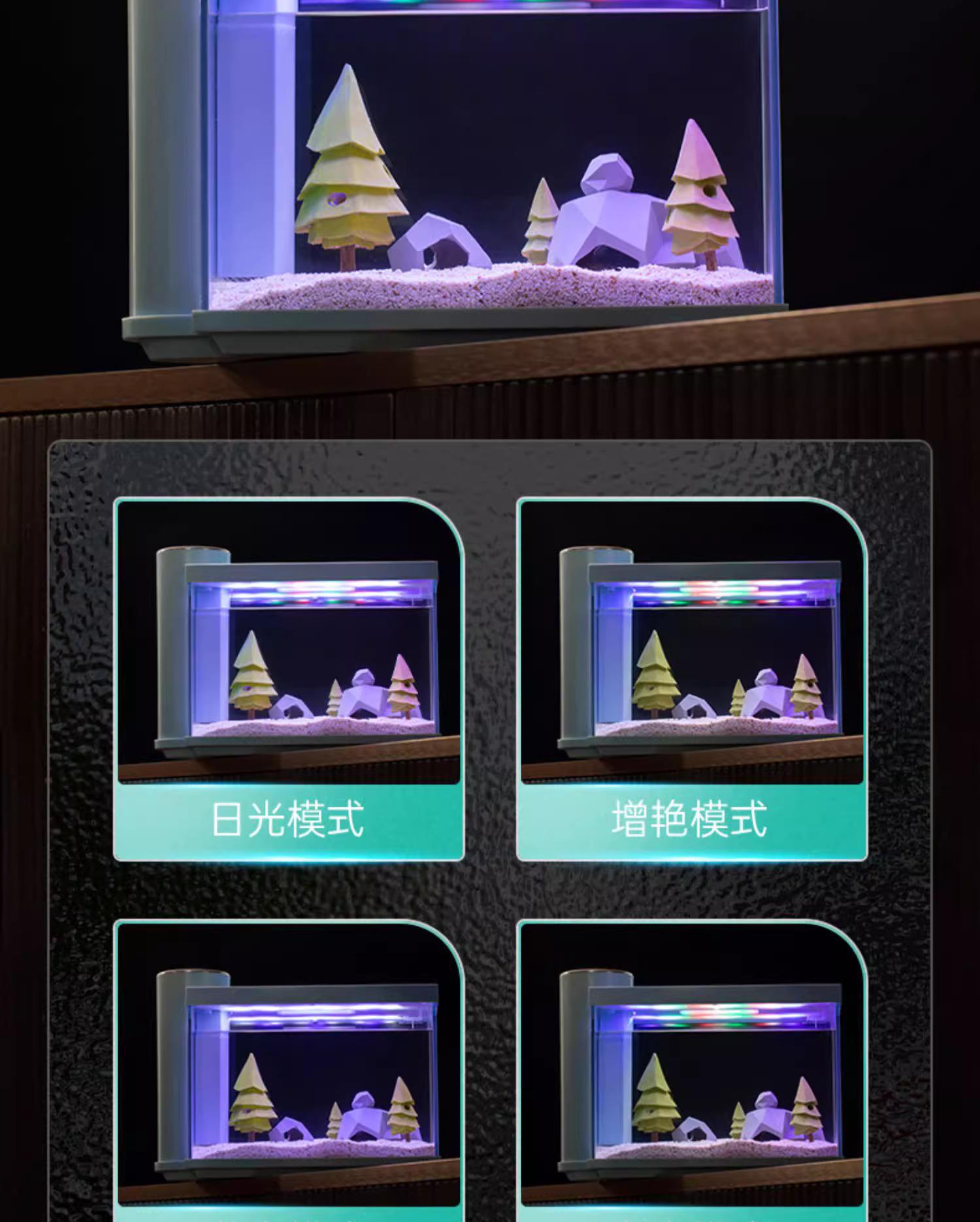니버 물고기 탱크 작은 울트라 화이트 유리 수족관 생태 데스크탑 거실 자체 순환 사이드 필터 금붕어 탱크 풍경스토어 가기