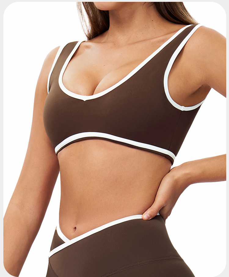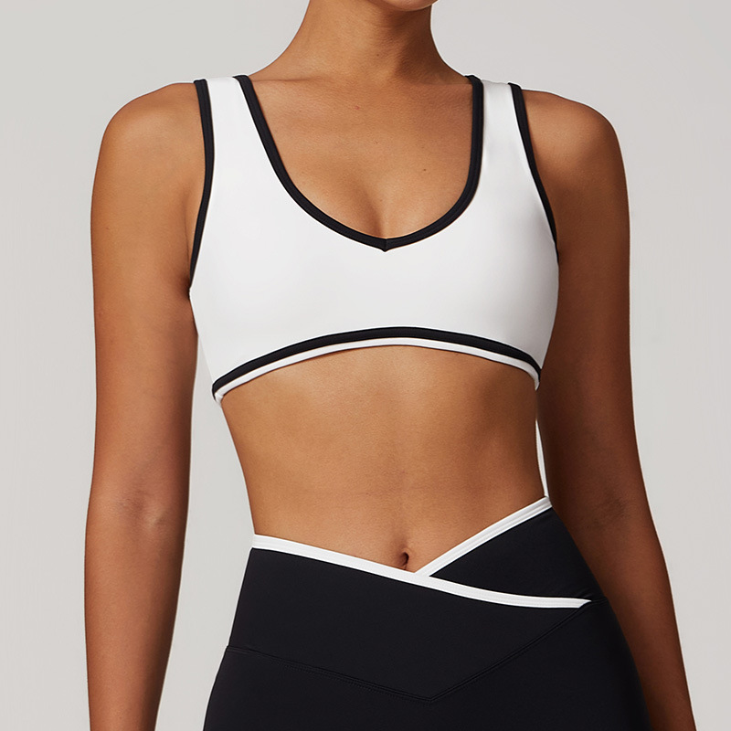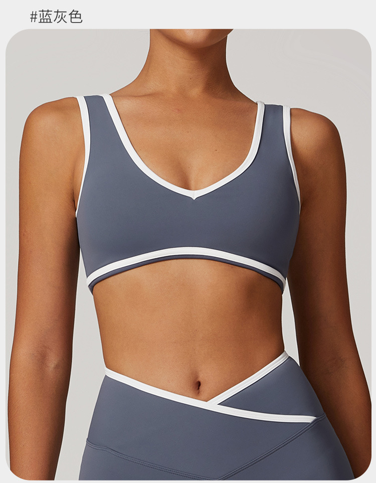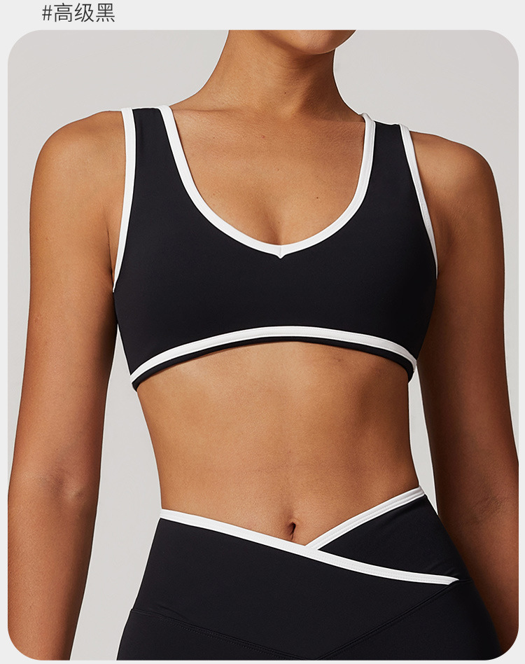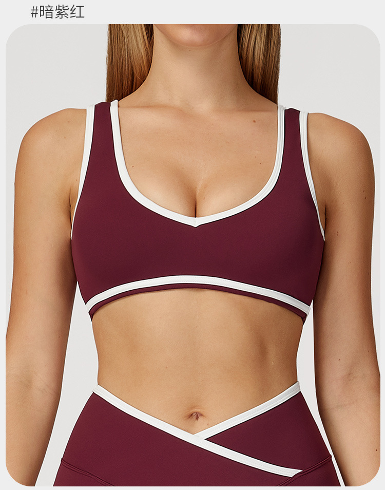유럽과 미국의 새로운 컬러 와이드 숄더 스트랩 스포츠 속옷 충격 방지 여성 원피스 요가 브래지어 야외 피트니스 8843