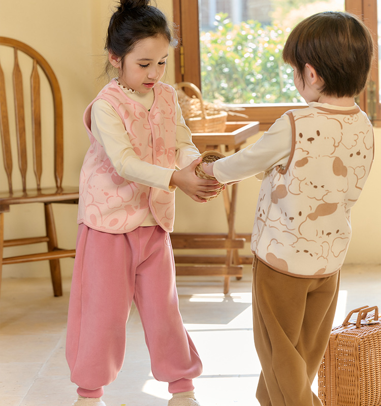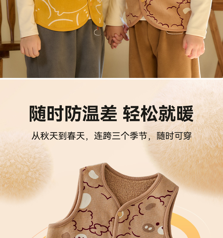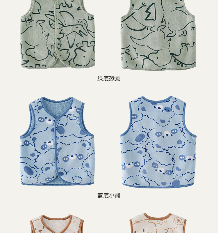 코튼홀 아동복 조끼 2025 아동용 양면 조끼 플러스 플리스 털조끼 도매 캐주얼 만화스토어 가기