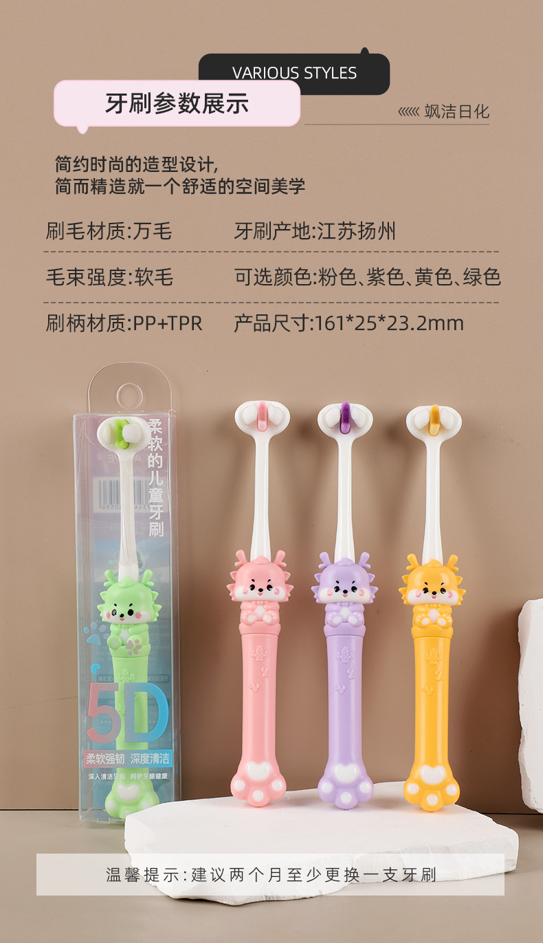 새로운 3-12 세 귀여운 만화 용 만 천 부드러운 머리 어린이 어린이 세 치아 5D 칫솔 재고