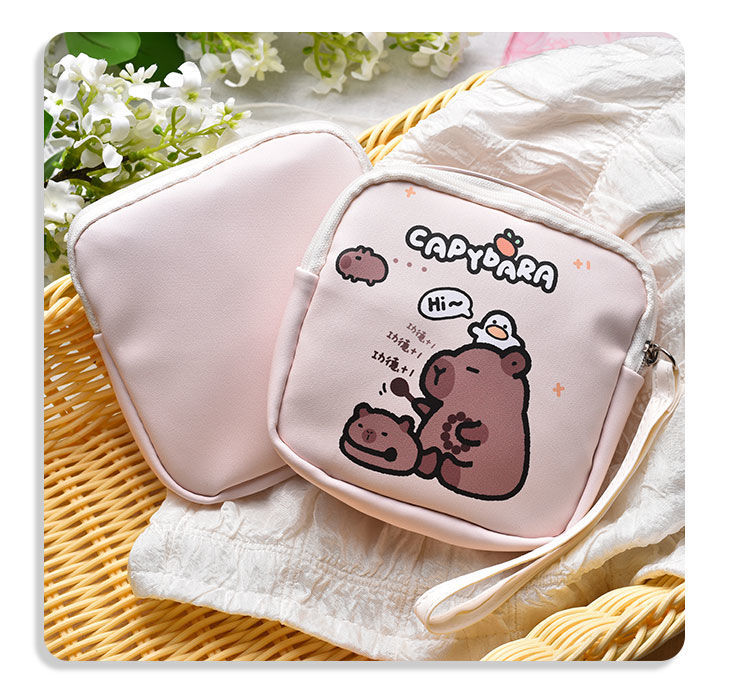 만화 위생 냅킨 이모 가방 대용량 학생 저장 소형 가방 휴대용 귀여운 소녀의 가죽 화장품 가방