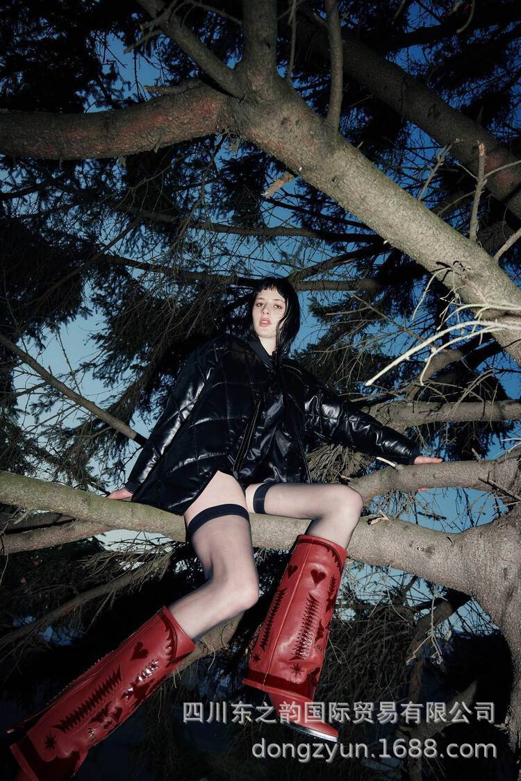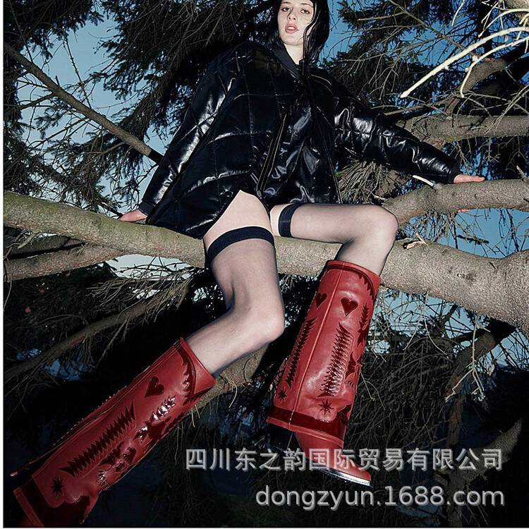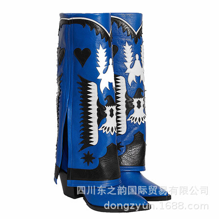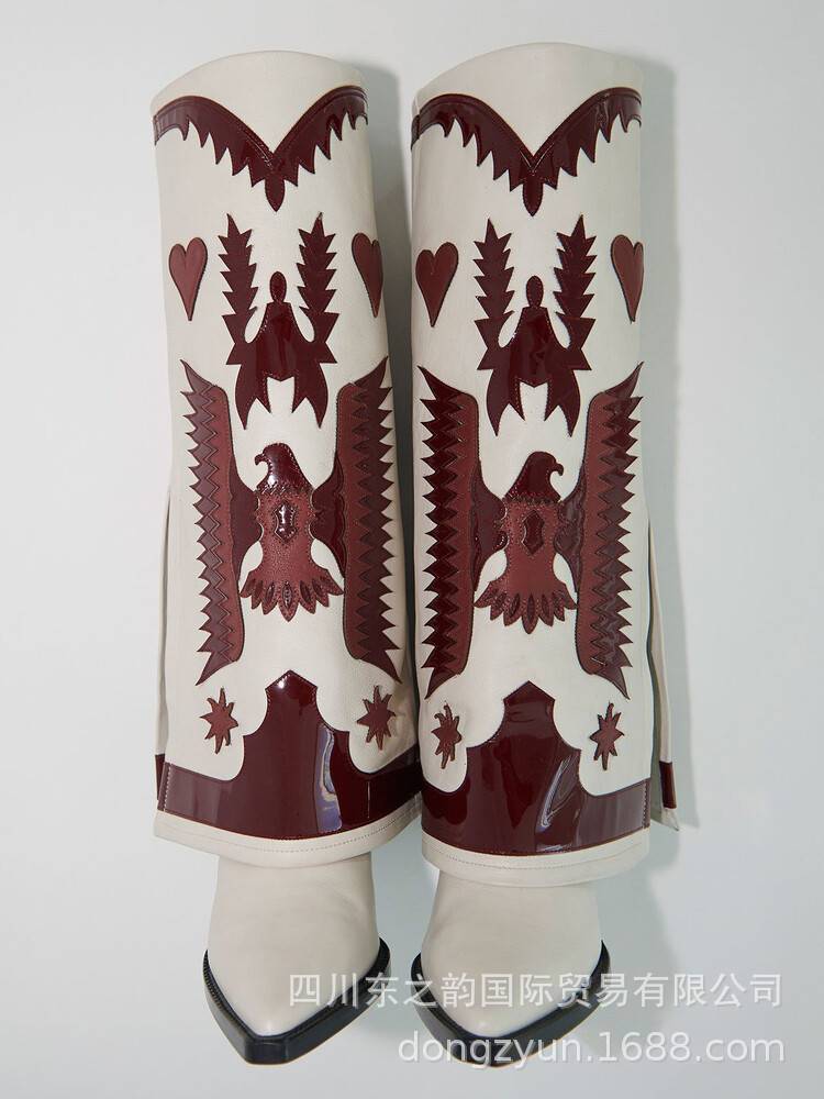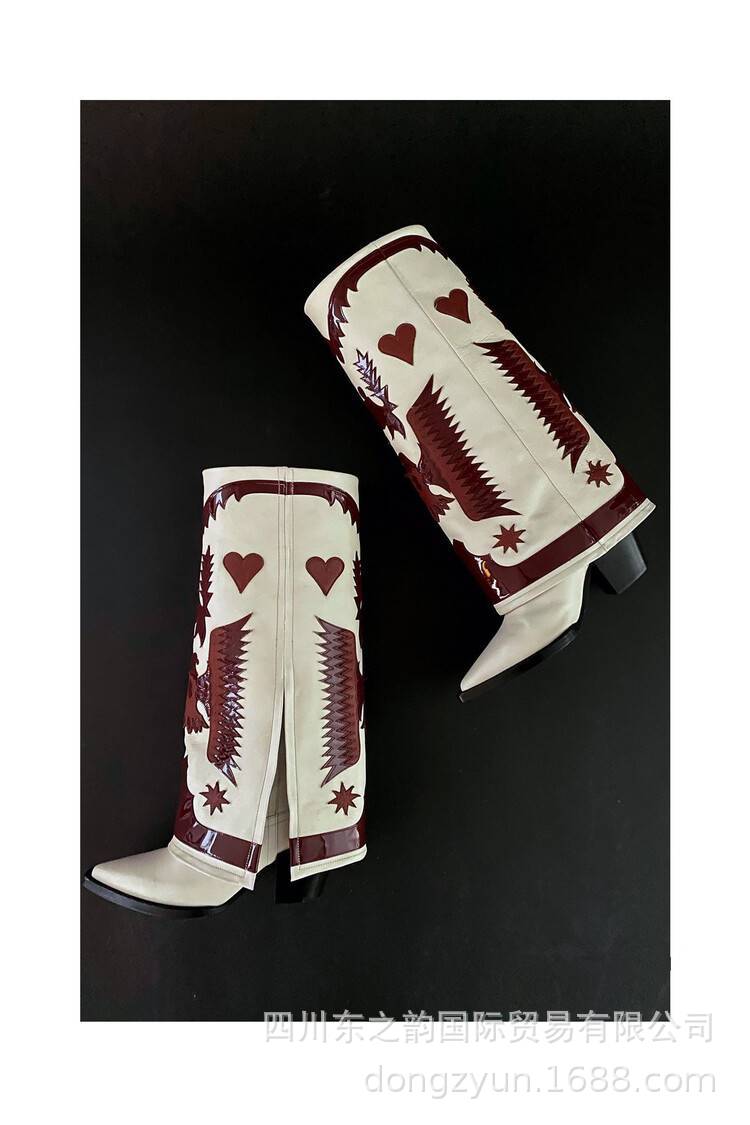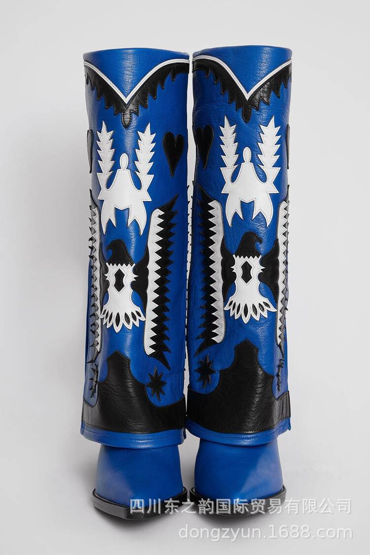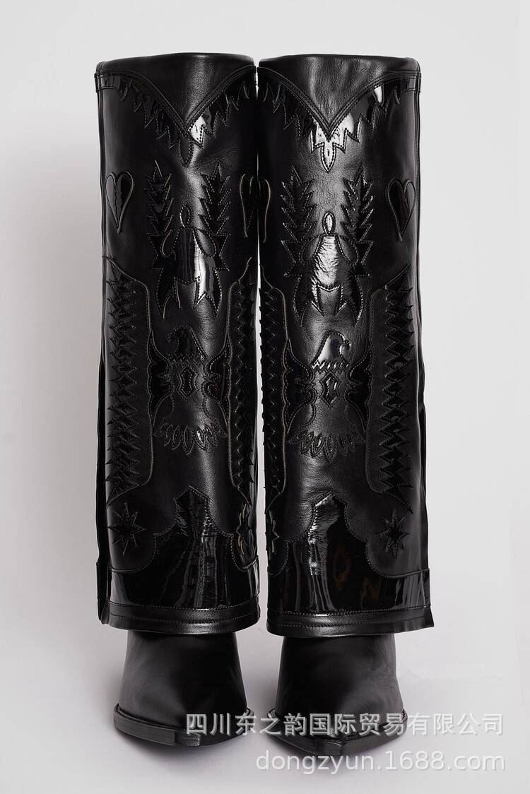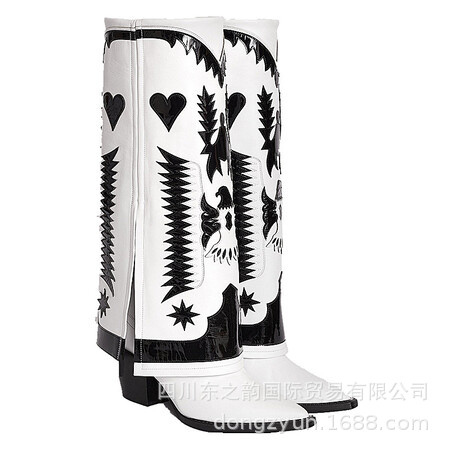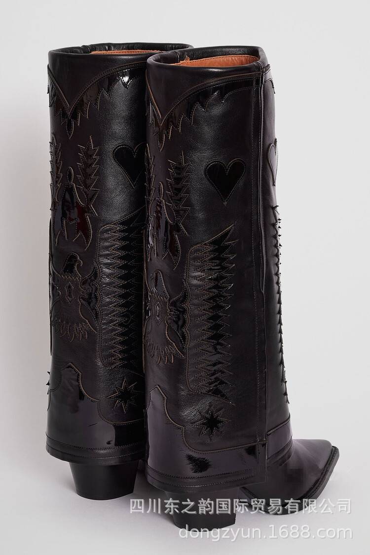 2024 가을과 겨울 새로운 두꺼운 뒤꿈치 부츠 컬러 매칭 쇼 대외 무역 서부 부츠 여성 전체 소가죽 플러스 사이즈 마틴 부츠