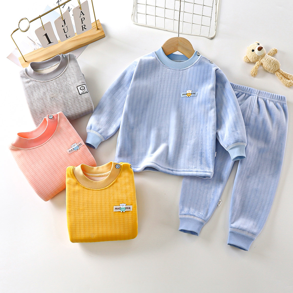 2023 새로운 가을, 겨울 미니 벨벳 양면 벨벳 정장 소년과 소녀 플러스 벨벳 두꺼운 따뜻한 잠옷 및 잠옷 Dropshipping스토어 가기