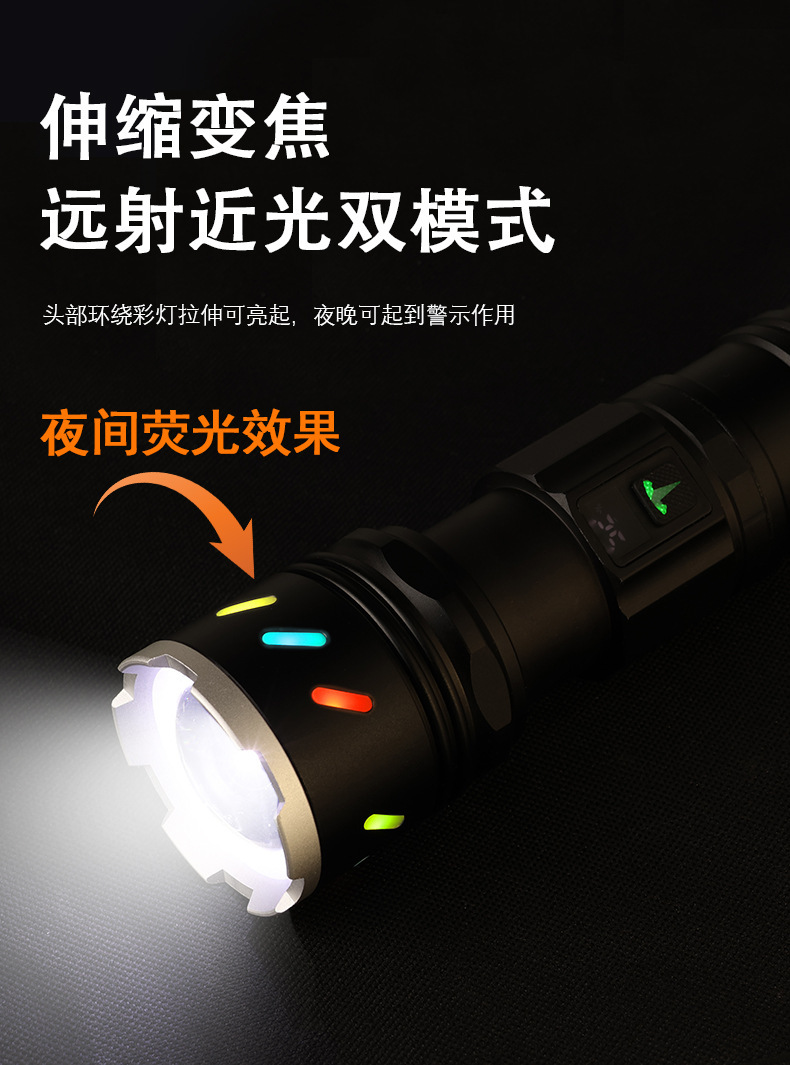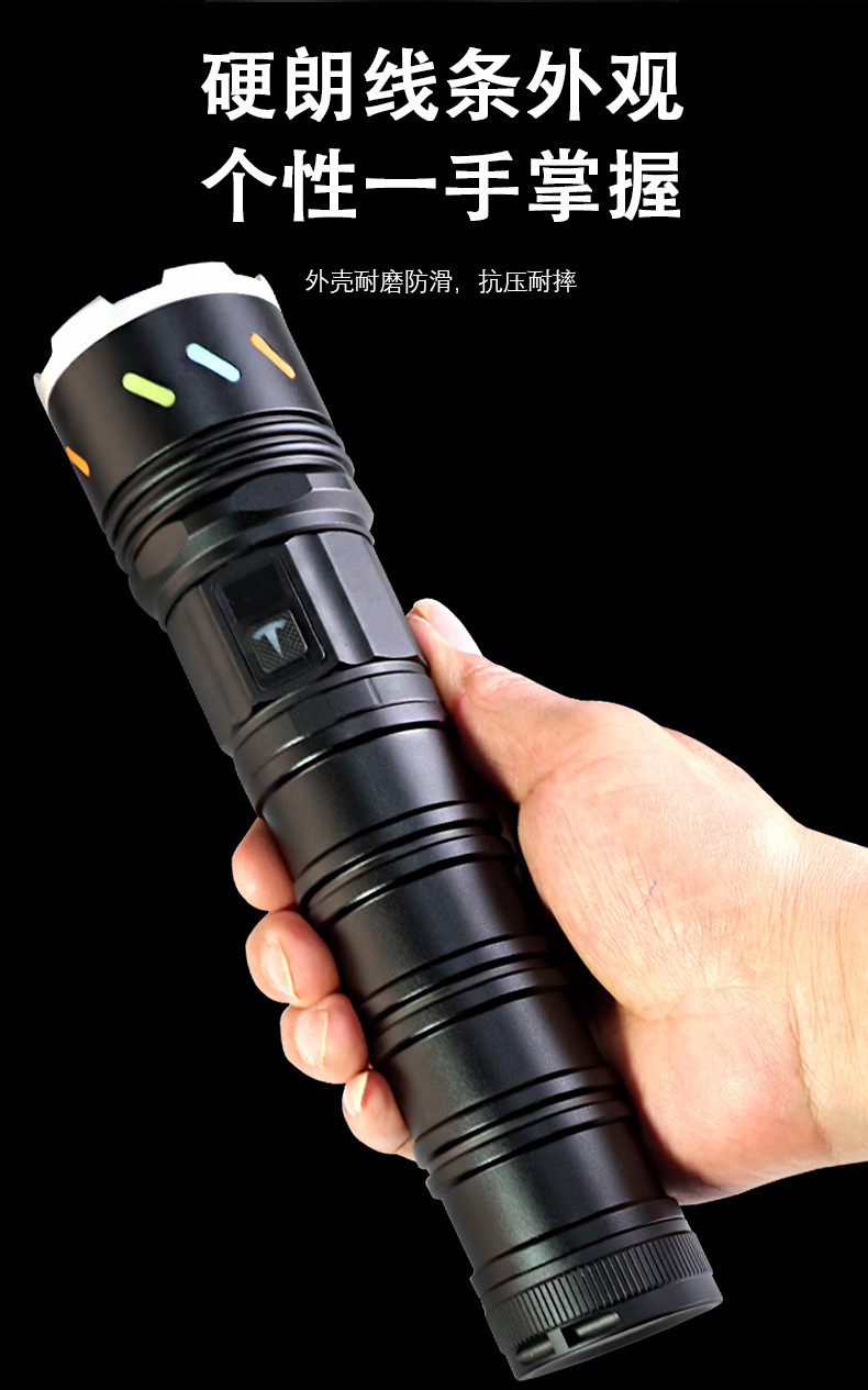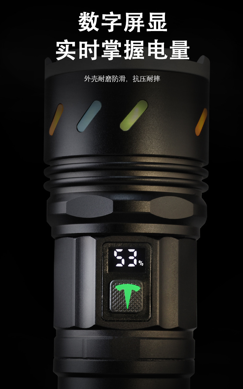 X5 화이트 레이저 손전등 망원경 줌 다채로운 전기 디스플레이 야외 조명 지속 및 슈퍼 밝은 내구성