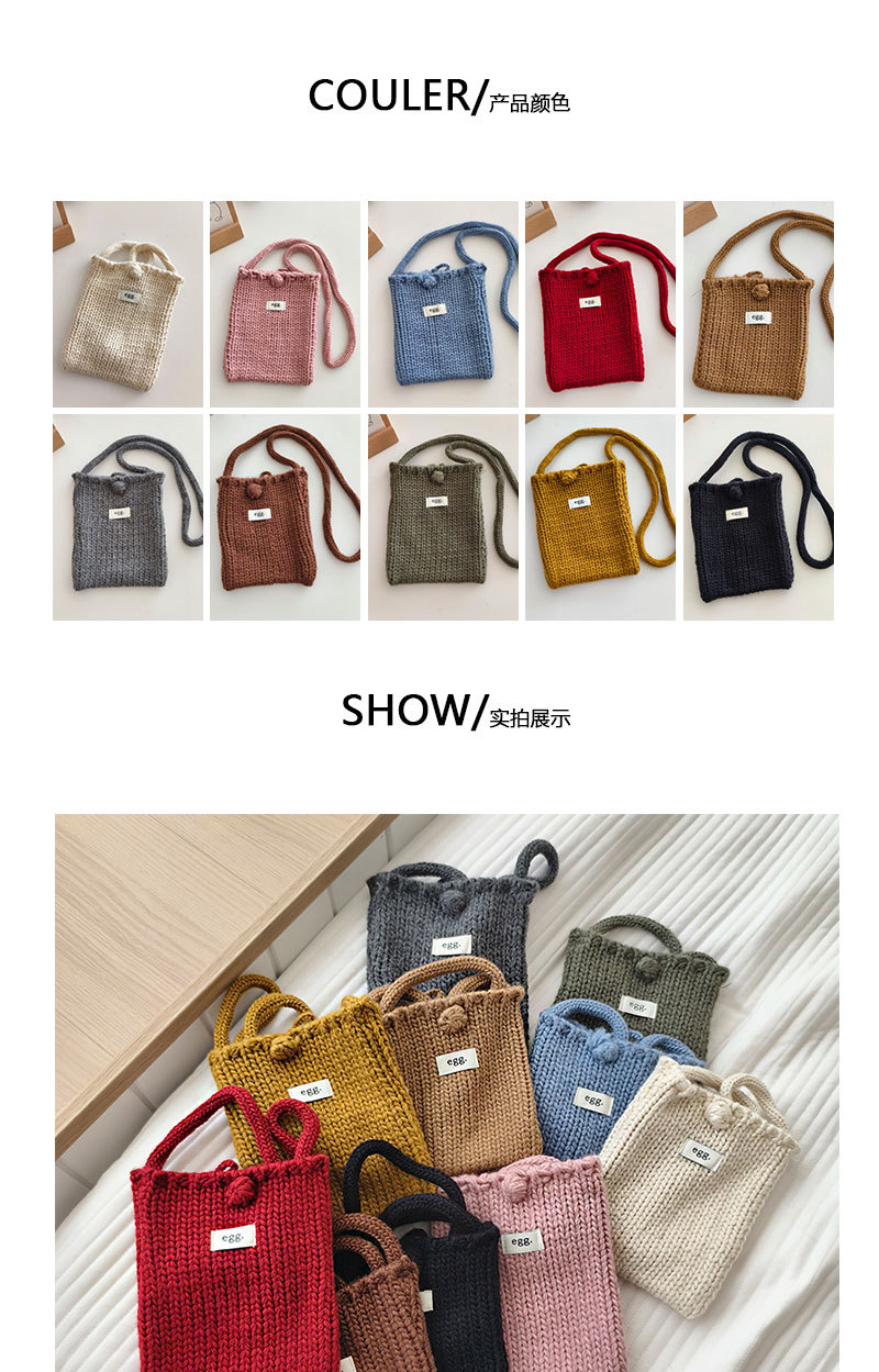미니 귀여운 양모 니트 어깨 크로스 바디 가방 가을과 겨울 손으로 짠 휴대 전화 가방 캔디 컬러 올 매치 작은 가방