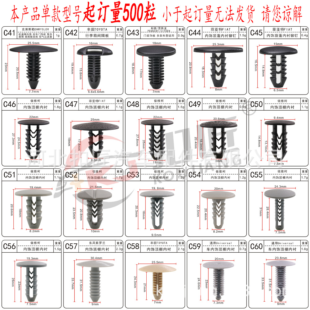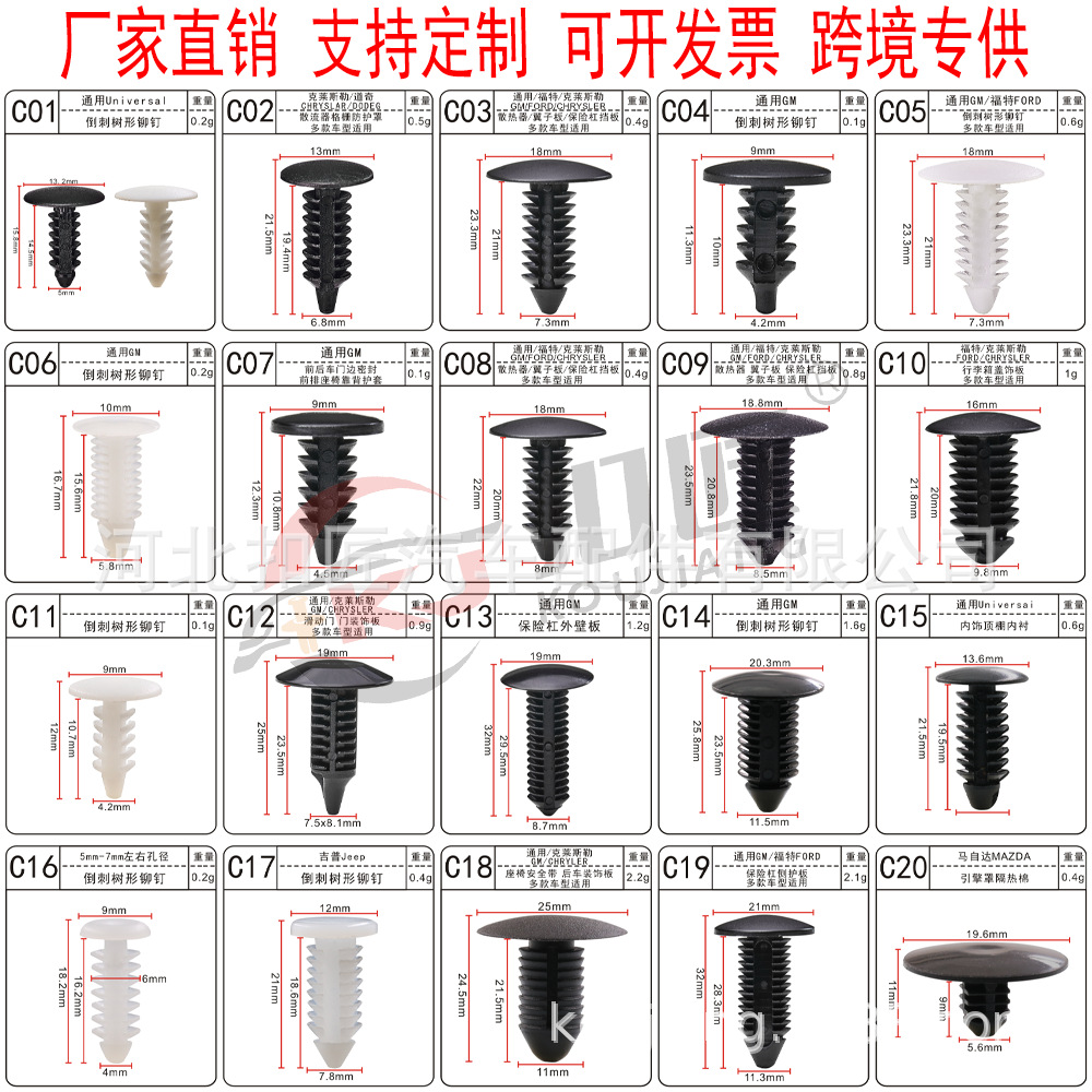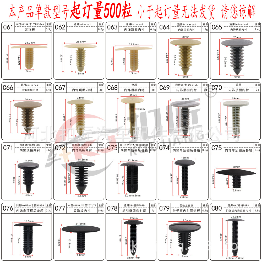 자동차 인테리어 지붕 트렁크 가시 나무 리벳 장식 패널 지붕 라이닝 버클