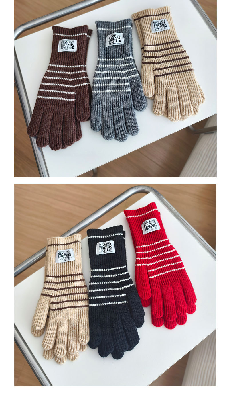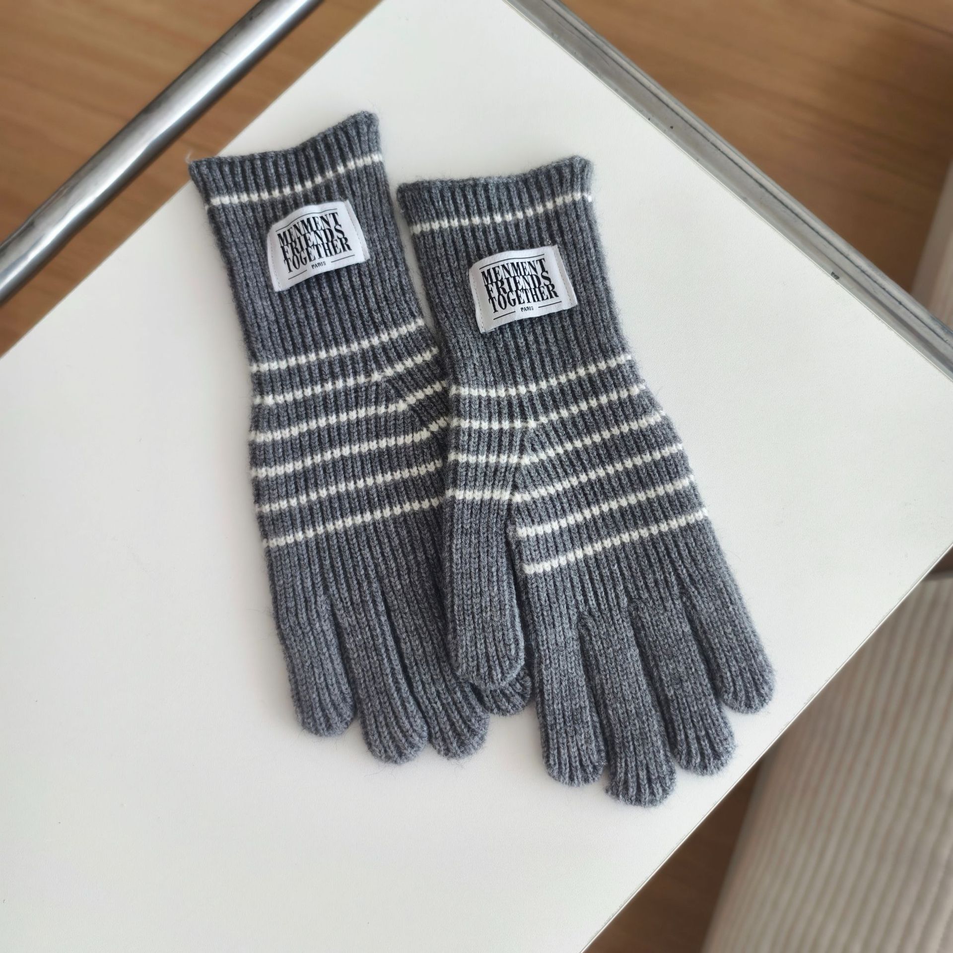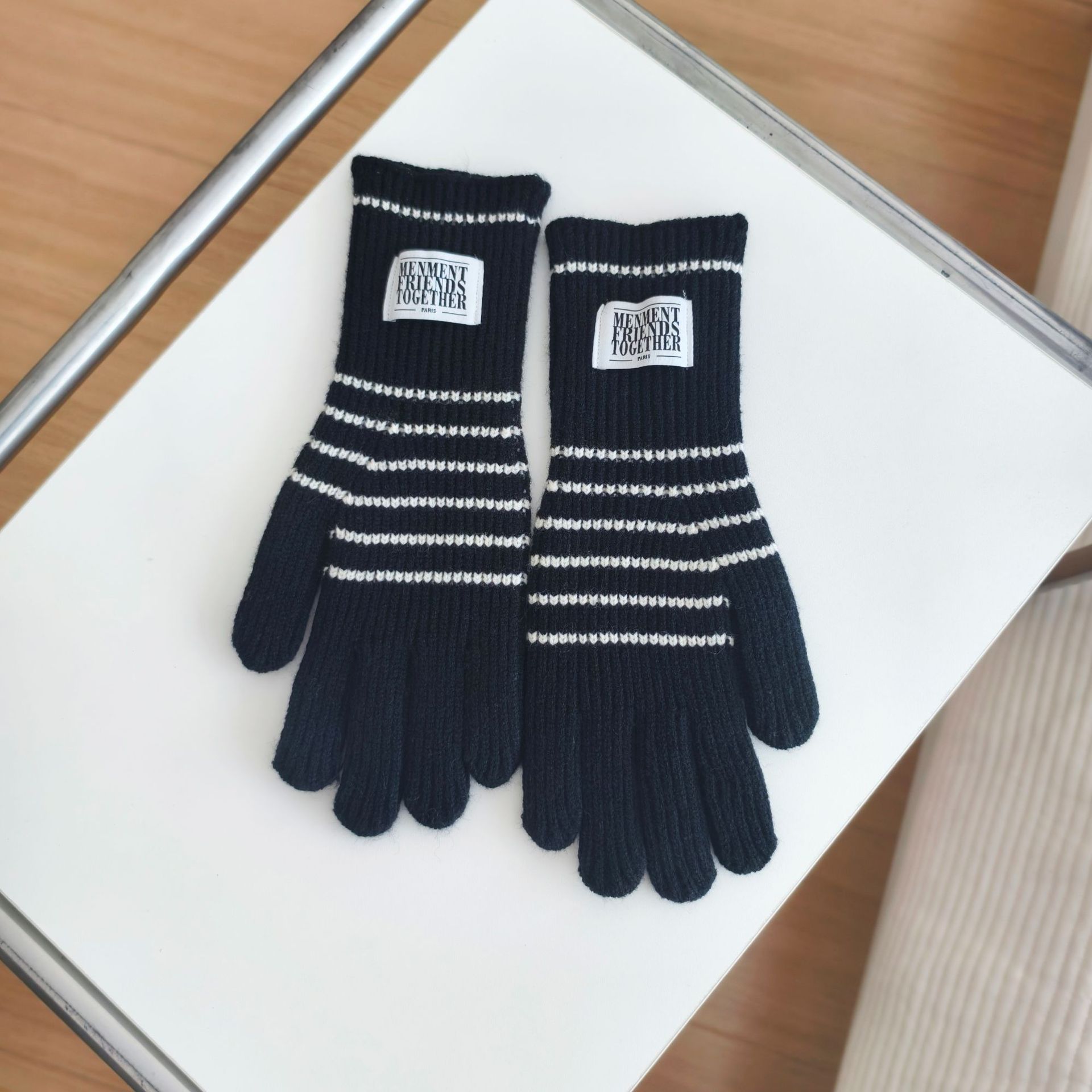 겨울 줄무늬 니트 장갑 여성 유니섹스 따뜻한 올매치 기모 터치스크린 핑거 장갑 한국 패션스토어 가기