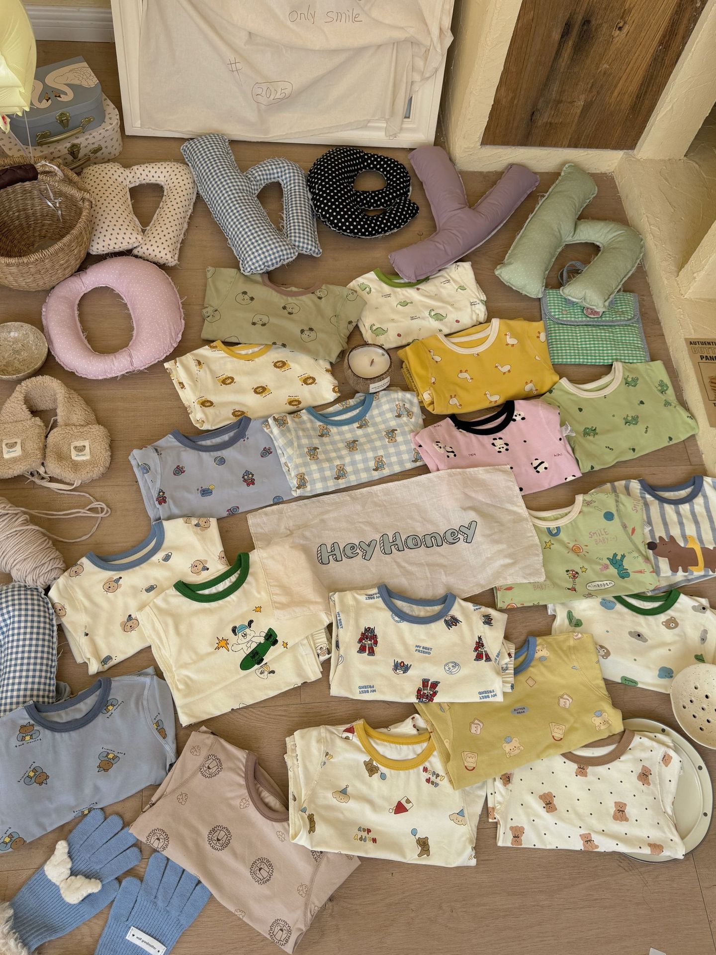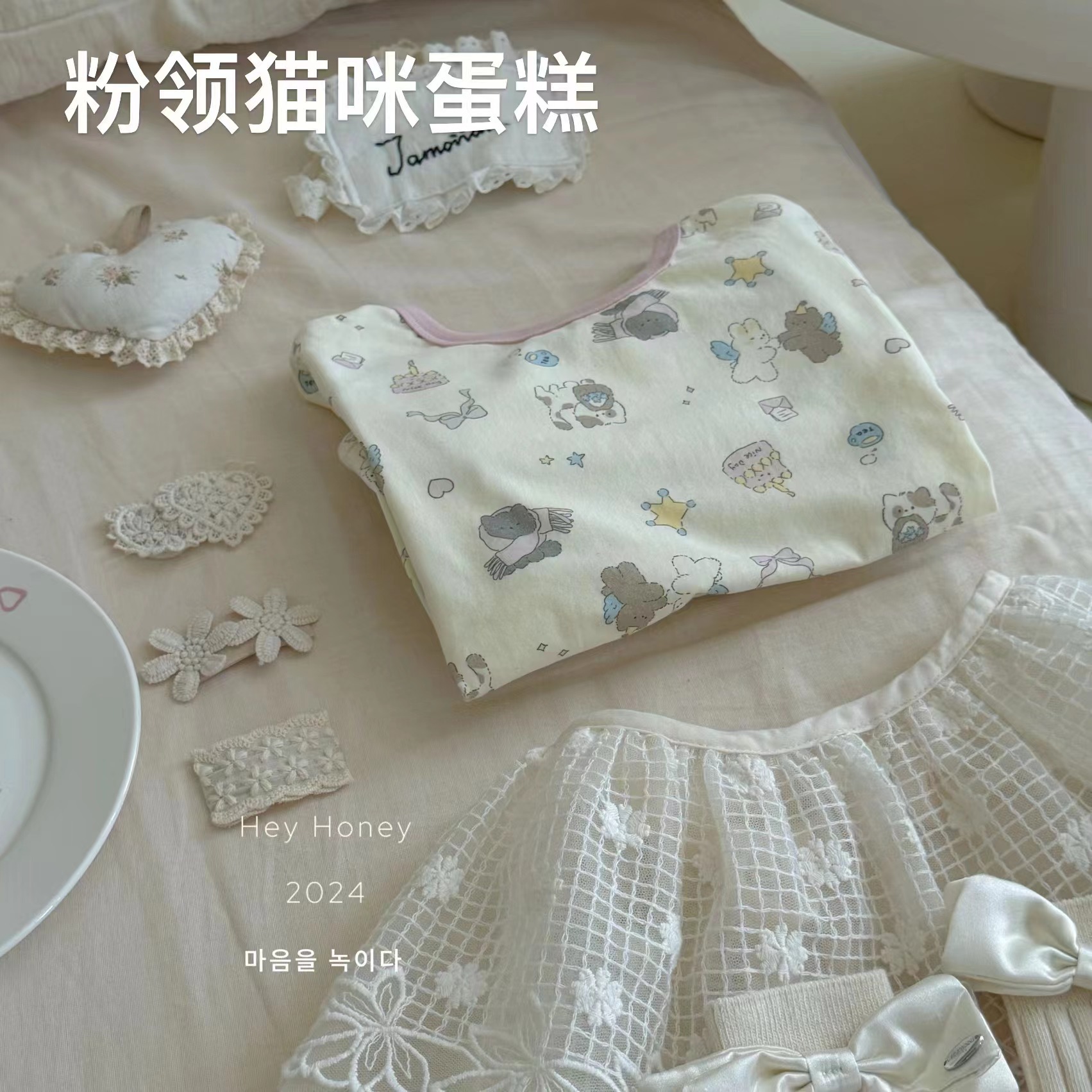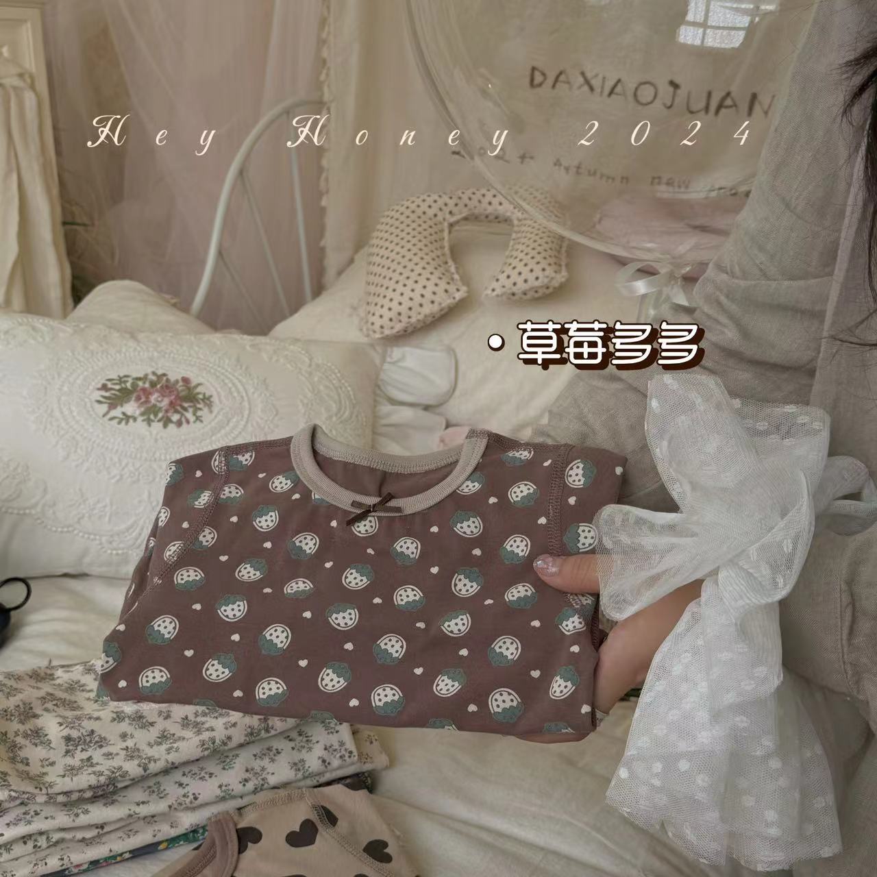 스팟 사이즈 롤 Heyhoney24 라이크라 코튼 소년 소녀 가을 속옷 프린트 홈웨어 잠옷 투피스 세트