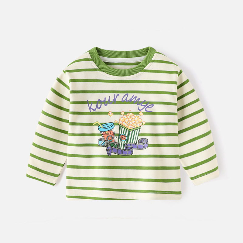가을 새 어린이 줄무늬 탑 한국 인쇄 콜라 긴팔 티셔츠 따뜻한 가을 옷 소년베이스 셔츠