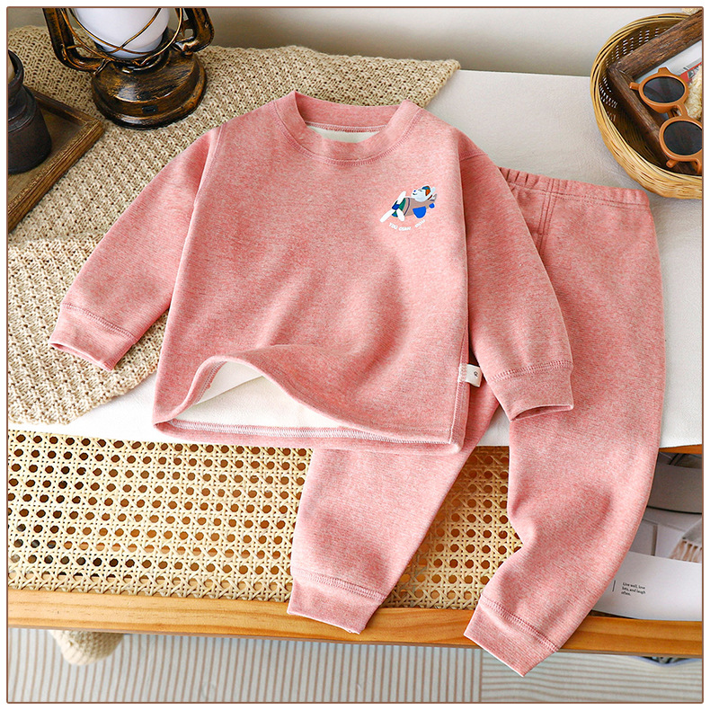 2024 가을과 겨울 새로운 어린이 뼈없는 기모 세트 홈 의류 잠옷 소년 소녀 머리카락 한 세대