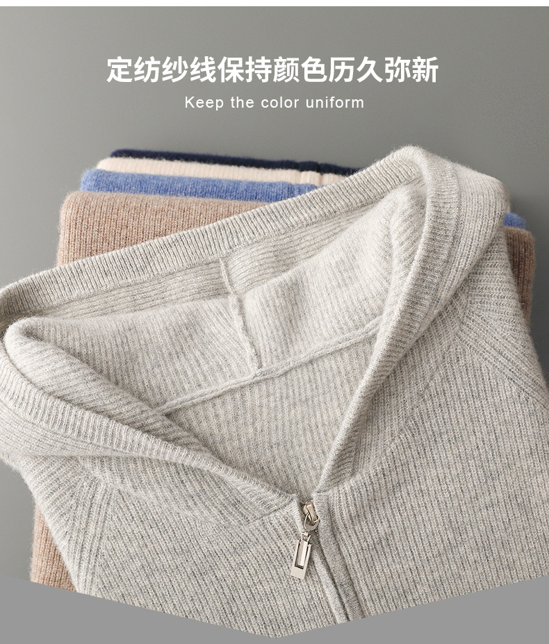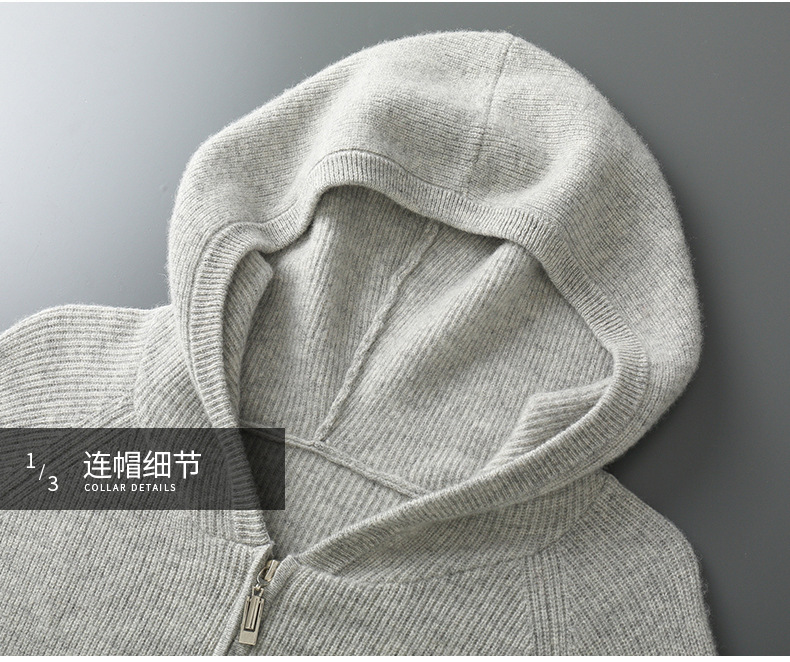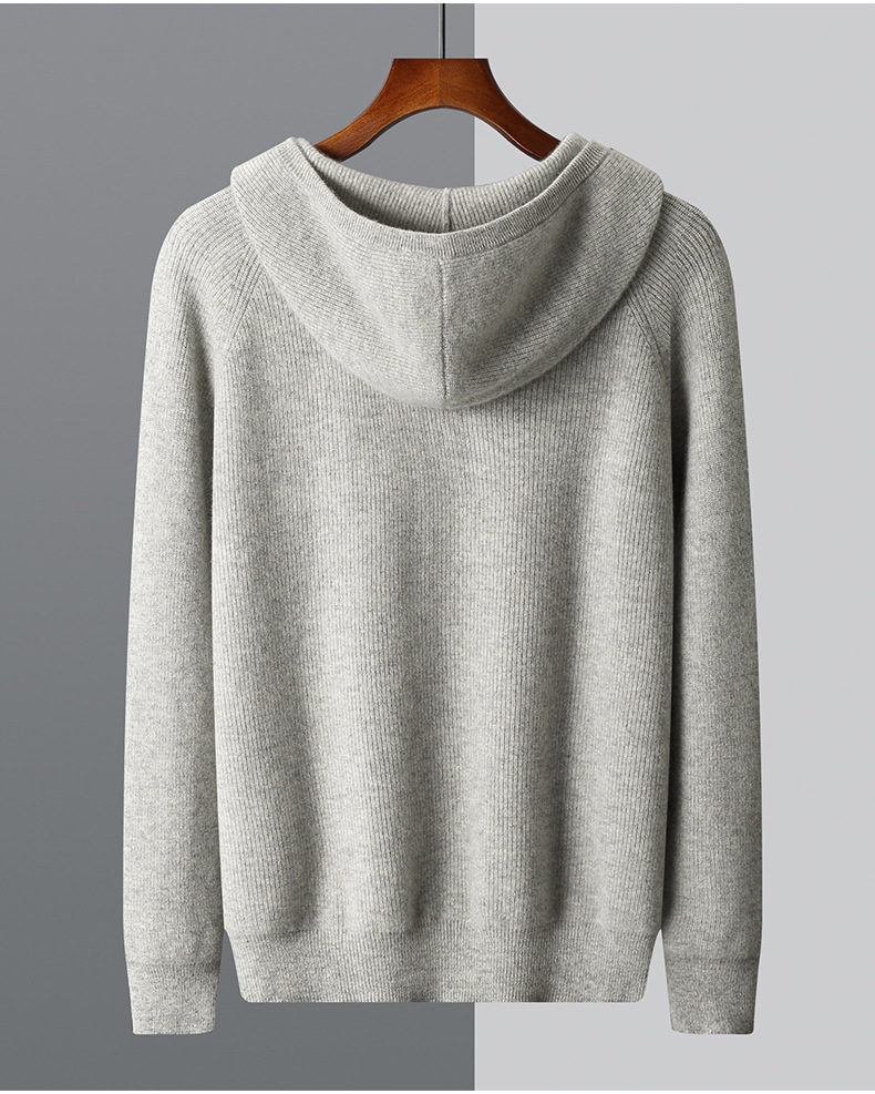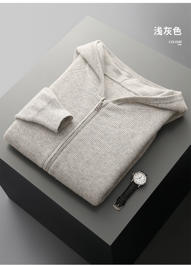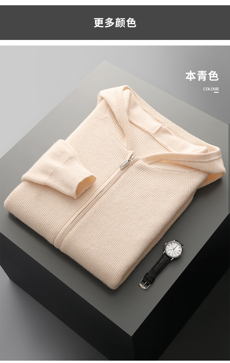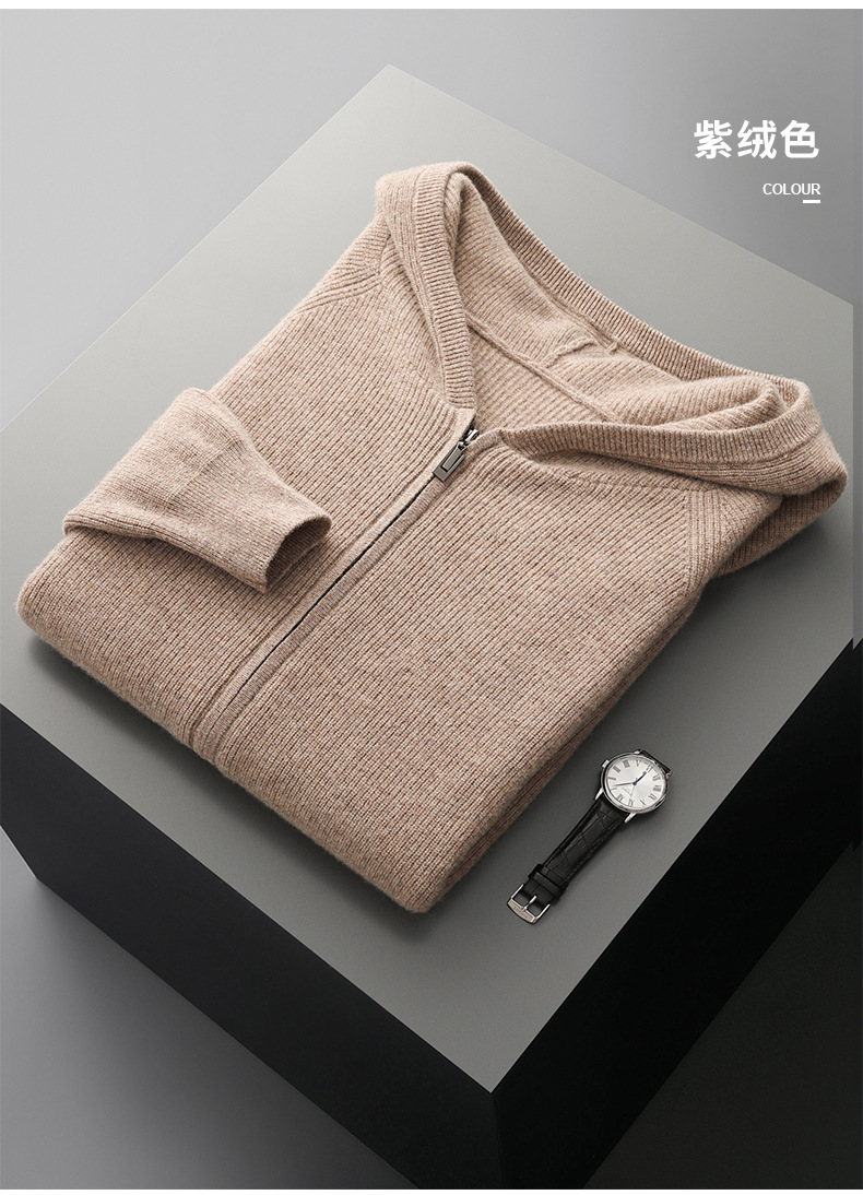 2024 년 봄과 가을 새로운 후드 염소 캐시미어 남자 위안 핀 두꺼운 따뜻한 캐시미어 니트 카디건스토어 가기