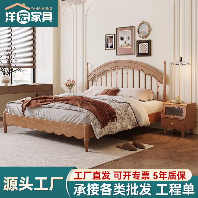 단단한 나무 침대 마스터 침실 1.8 m 더블 퀸 침대 현대 간단한 노르딕 작은 아파트 1.5 m 침실 단단한 나무 윈저 침대스토어 가기