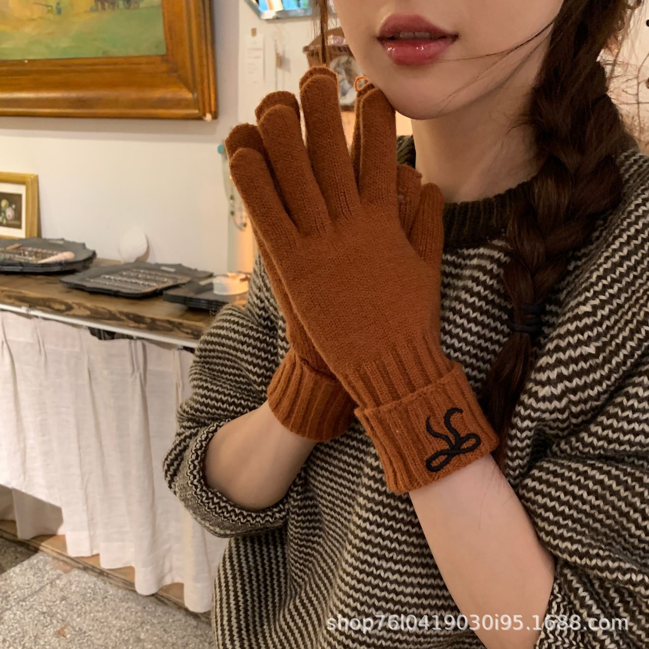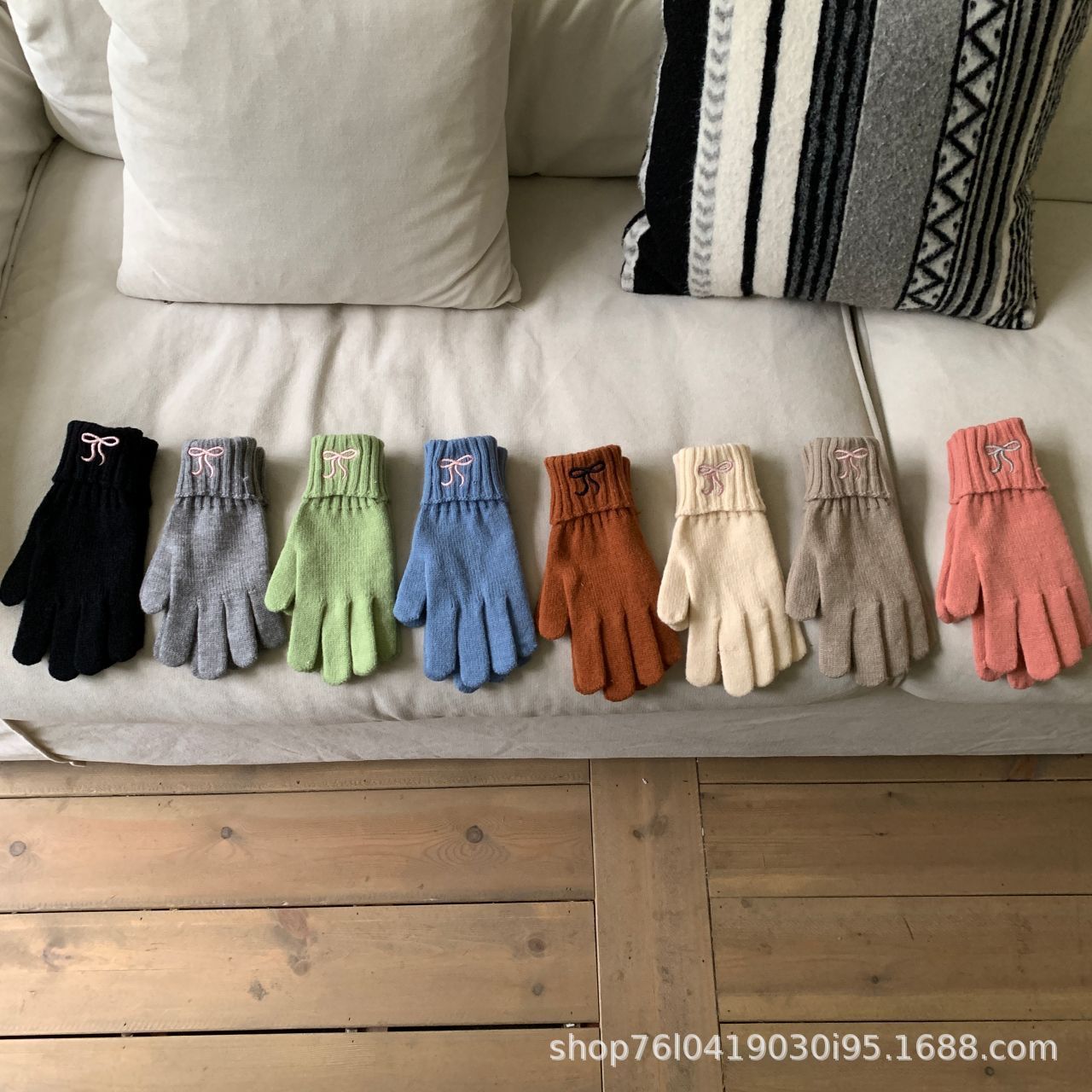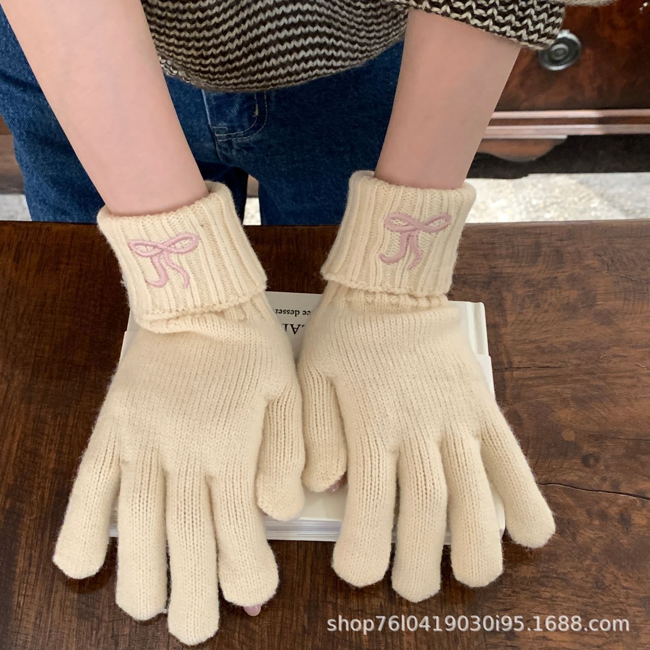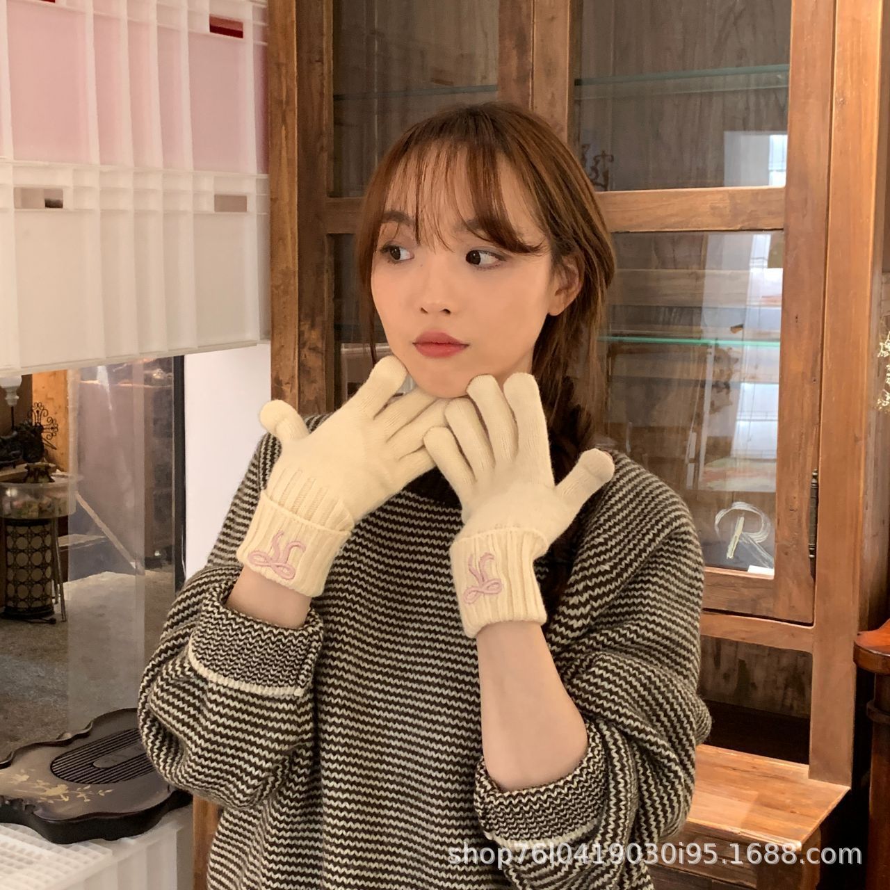가을과 겨울 긴 접이식 장갑 활 자수 달콤한 올 매치 단색 겨울 따뜻한 니트 울 장갑스토어 가기
