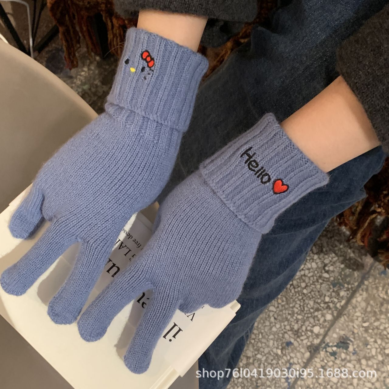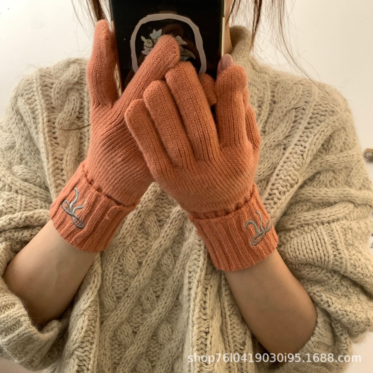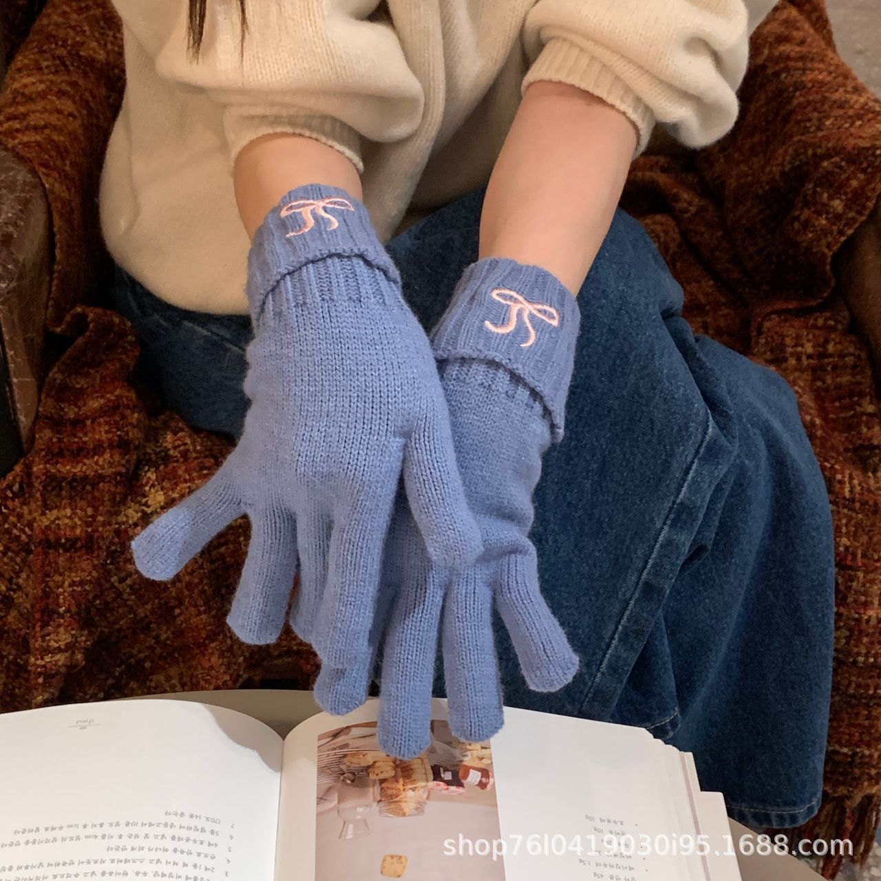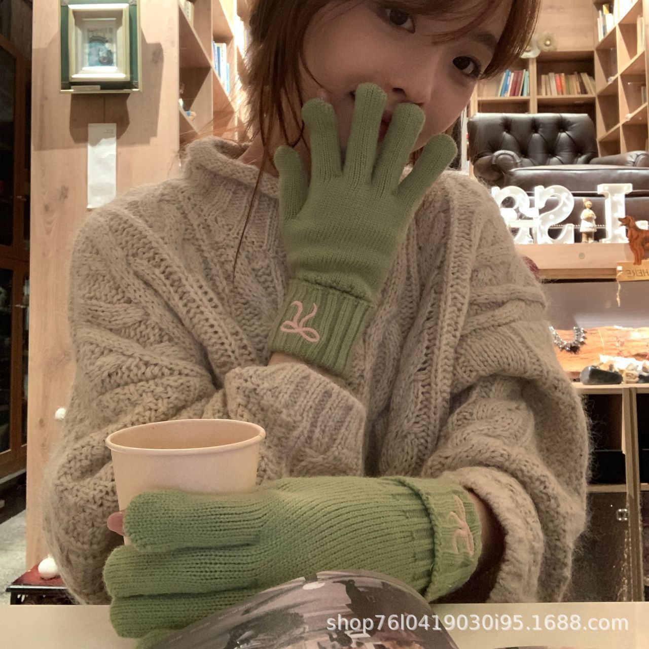 가을과 겨울 긴 접이식 장갑 활 자수 달콤한 올 매치 단색 겨울 따뜻한 니트 울 장갑스토어 가기