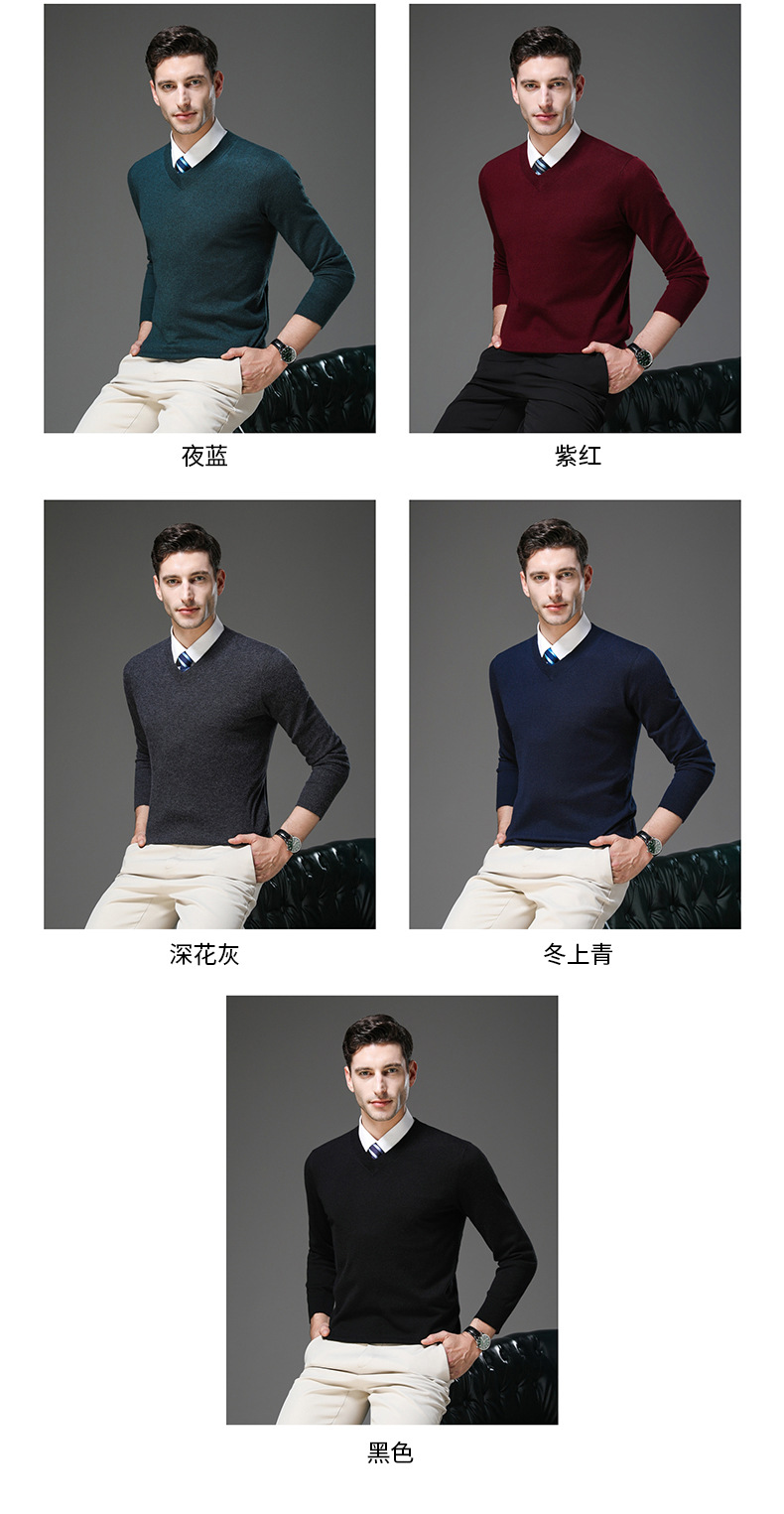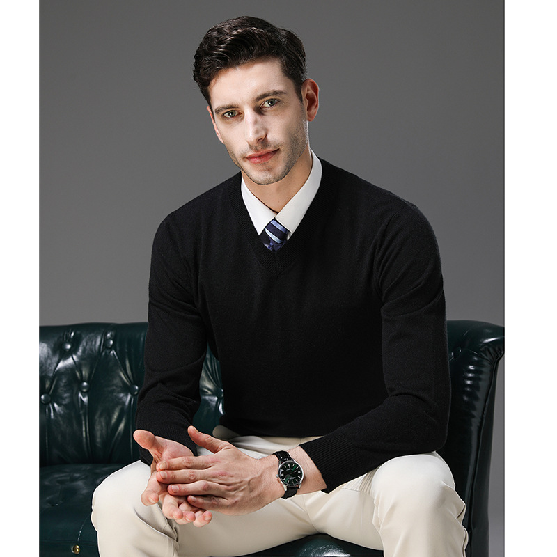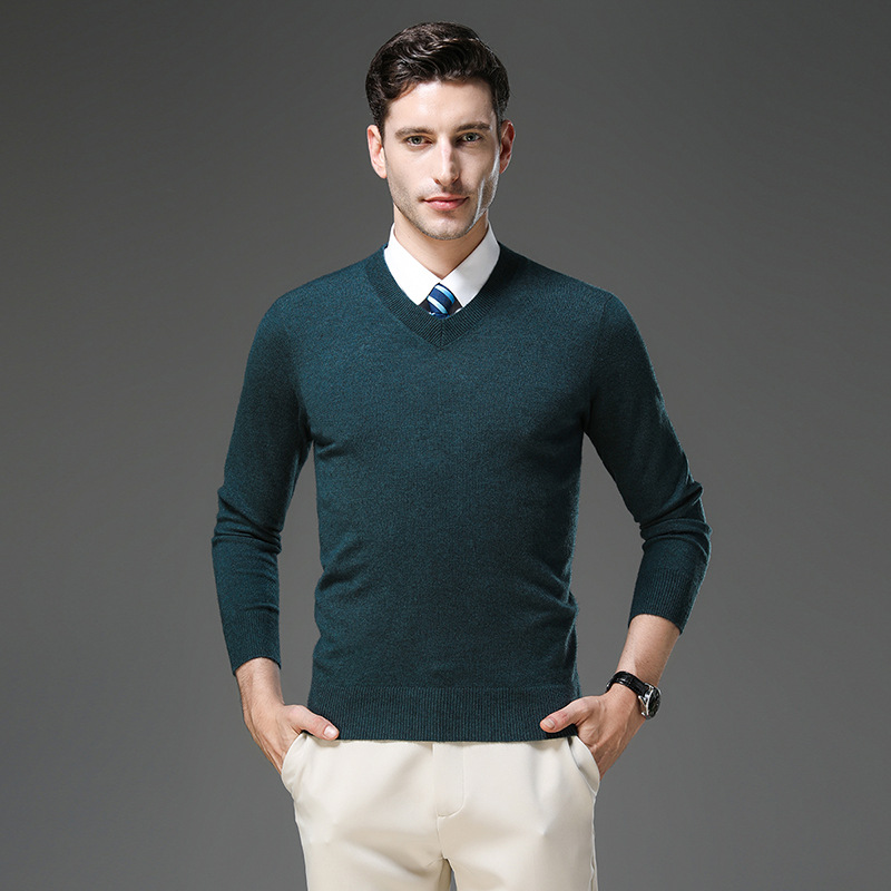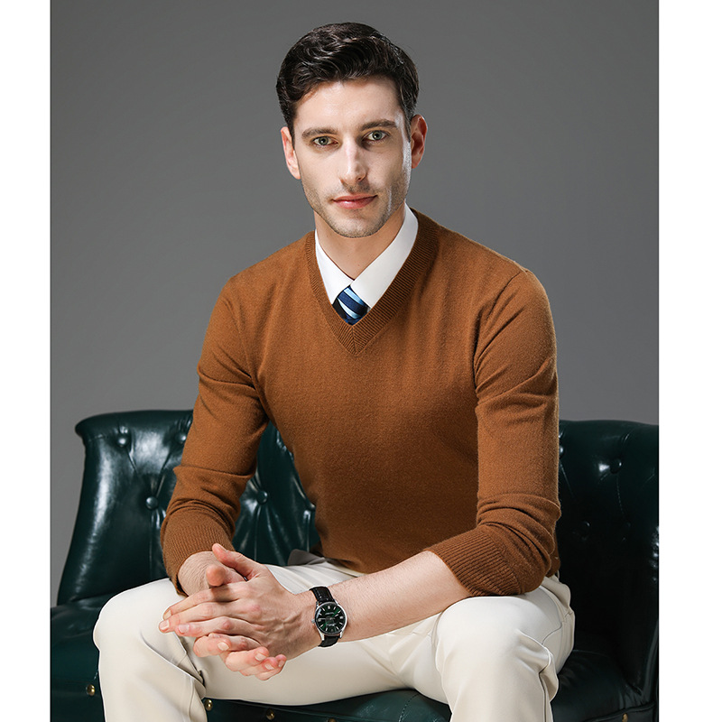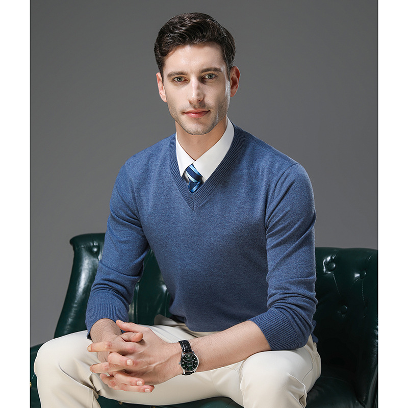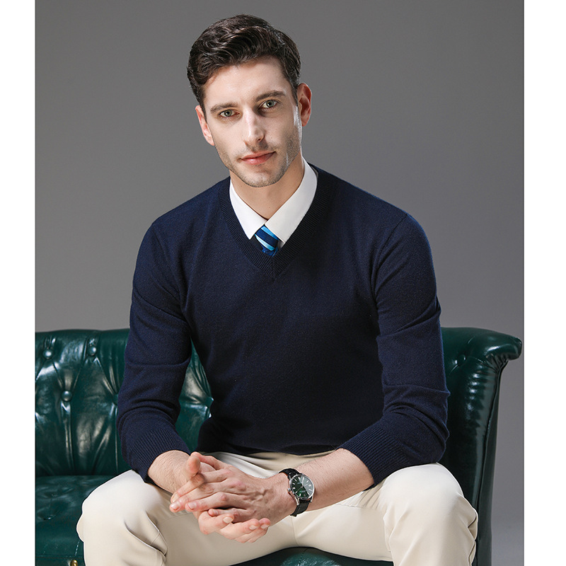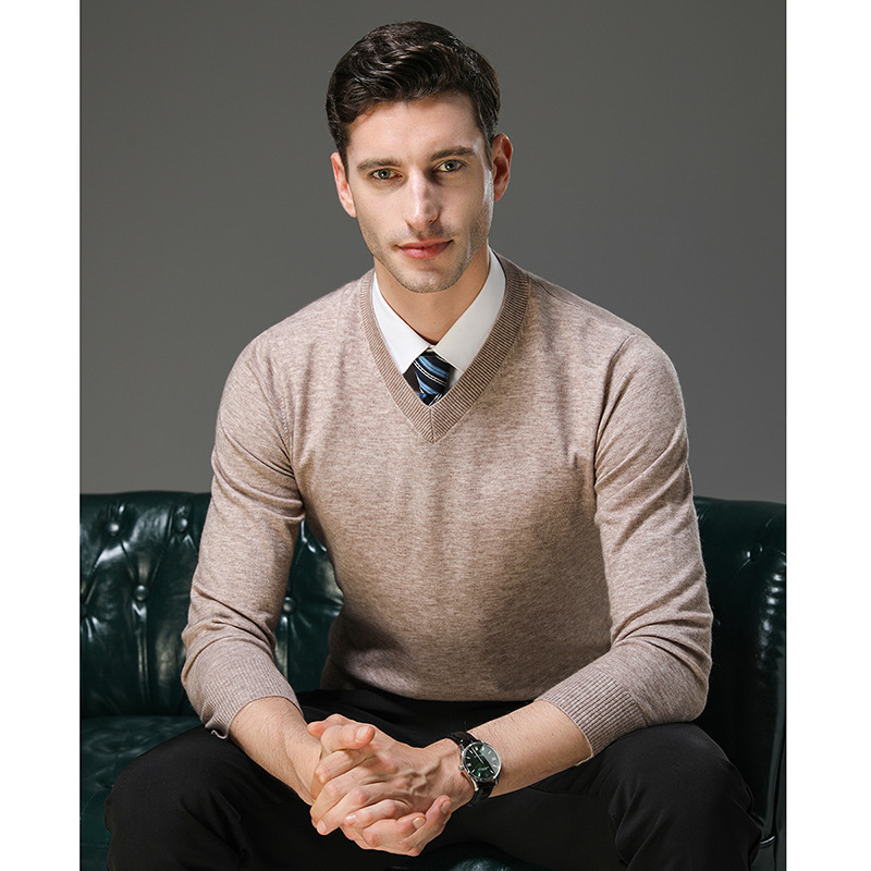 국경 간 남자 가을 및 겨울 새로운 V 넥 니트 스웨터 긴팔 스웨터 중년 및 노인 캐주얼 올 매치 느슨한 얇은 베이스스토어 가기