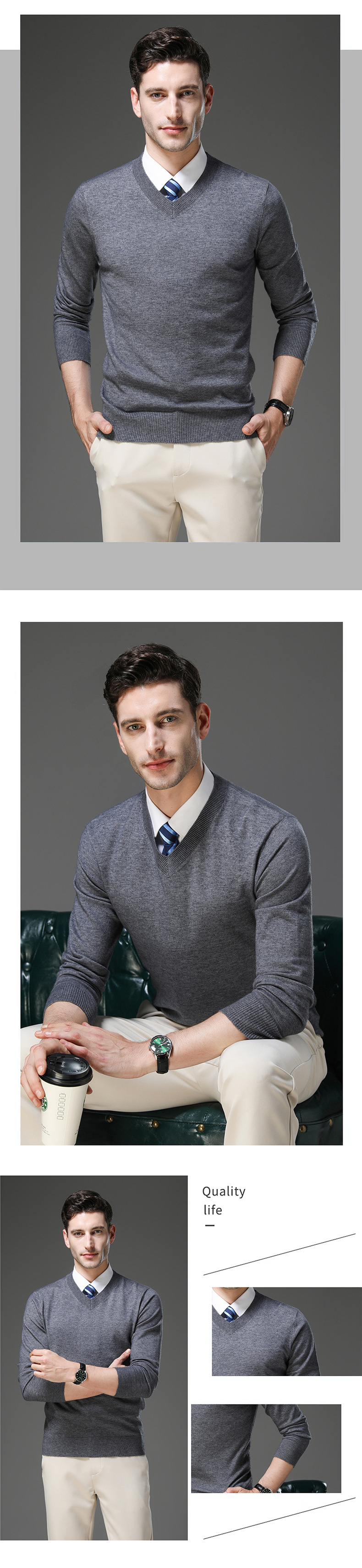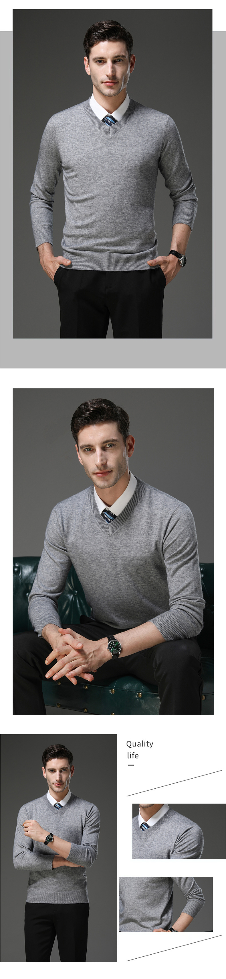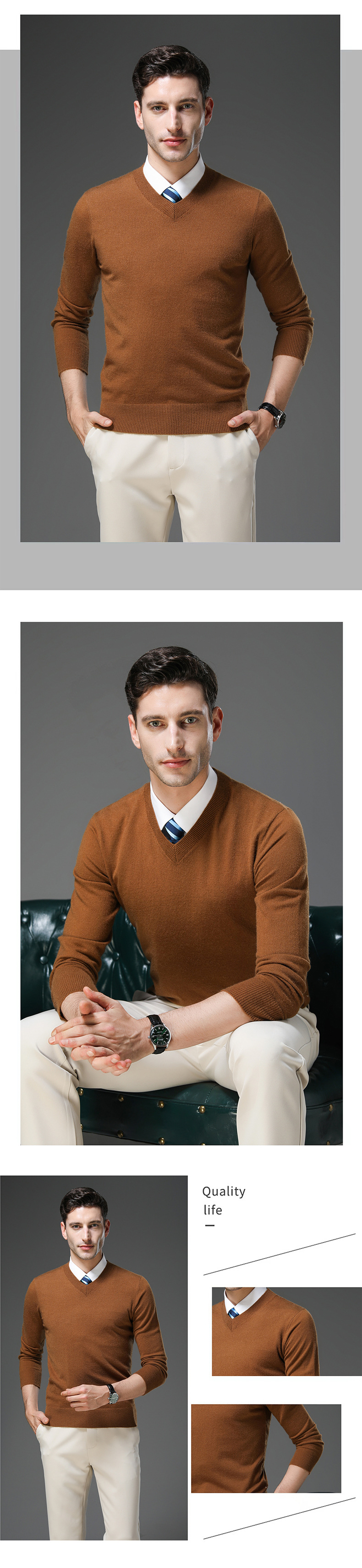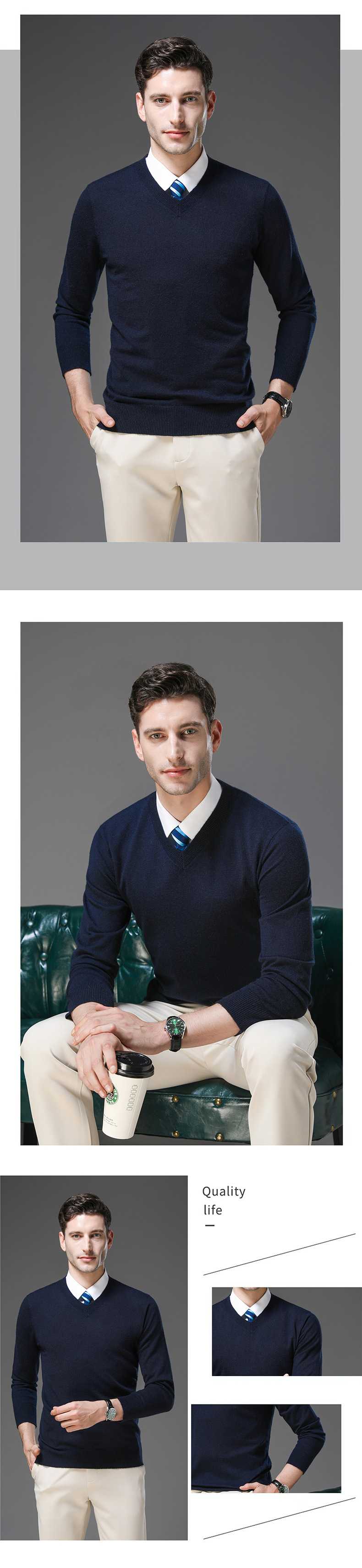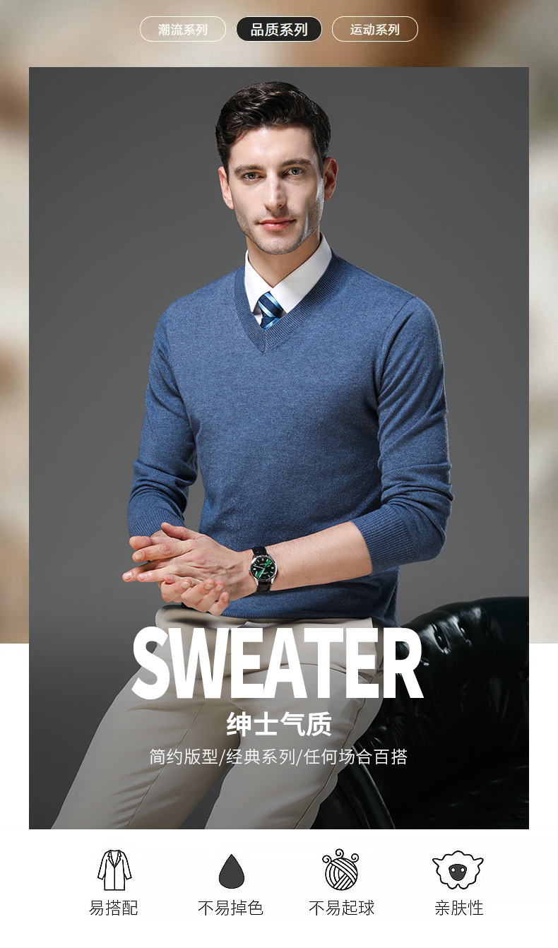 국경 간 남자 가을 및 겨울 새로운 V 넥 니트 스웨터 긴팔 스웨터 중년 및 노인 캐주얼 올 매치 느슨한 얇은 베이스스토어 가기